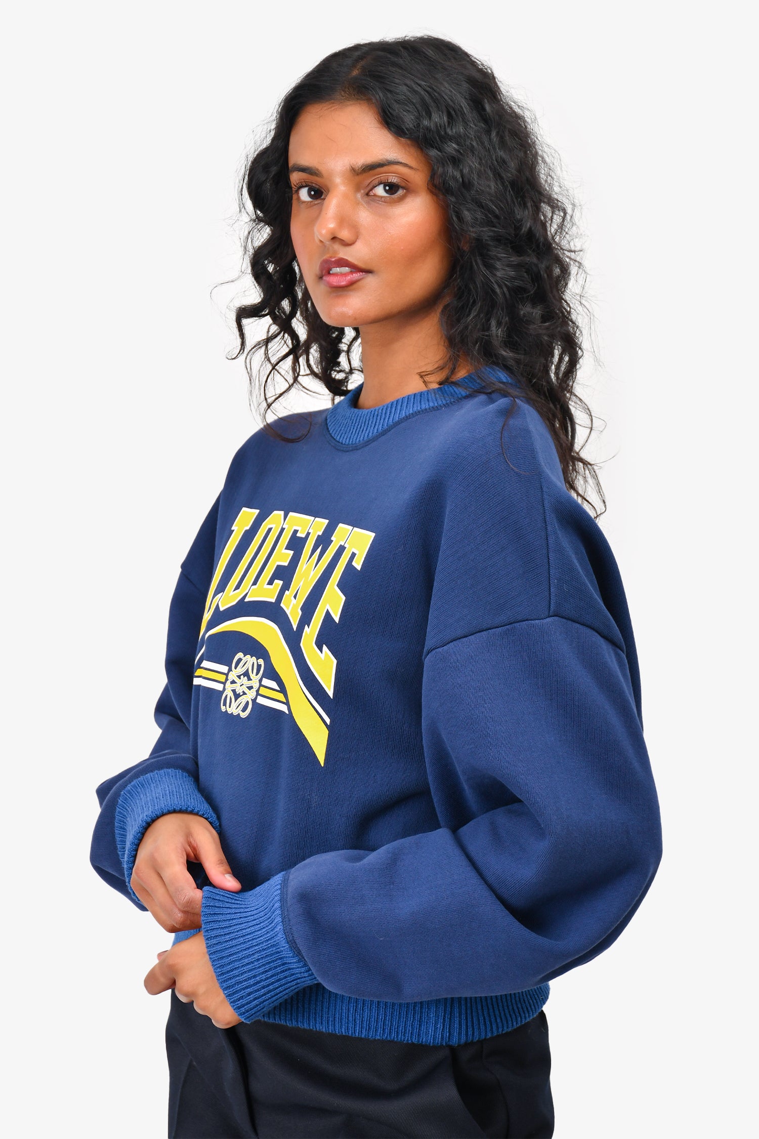 Refresh availabilityLoewe Blue/Yellow Logo Sweater. Ribbed collar, sleeves, and waistband. Tonal stitching. Logo at the face.