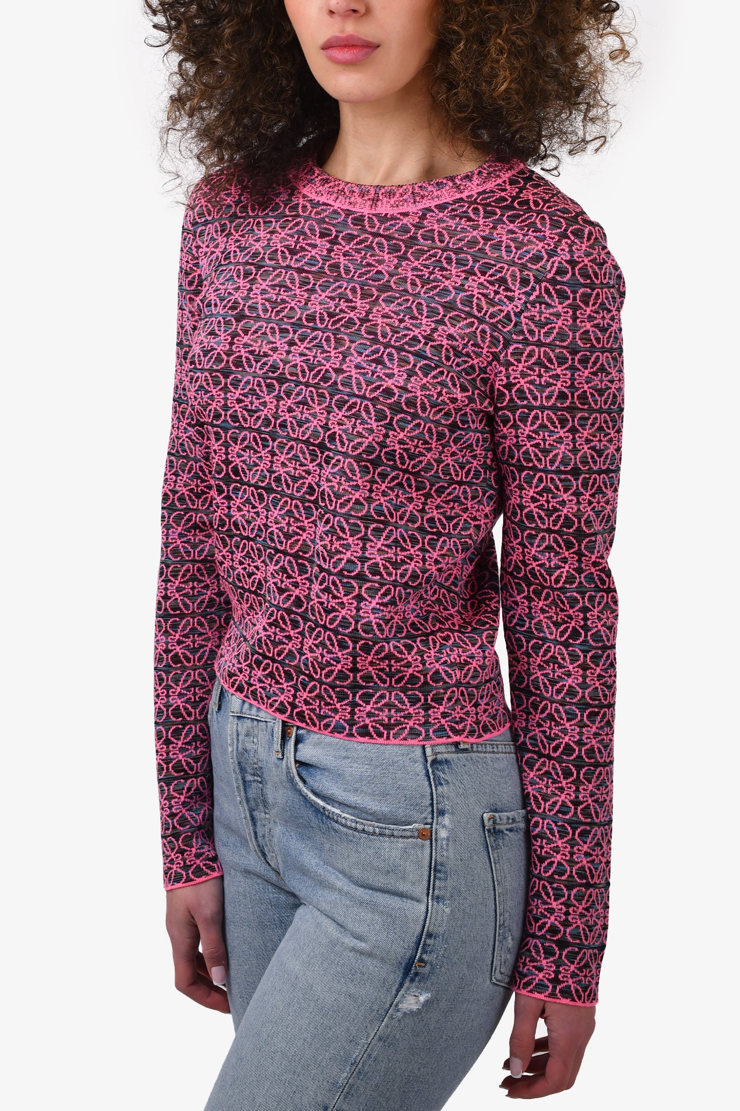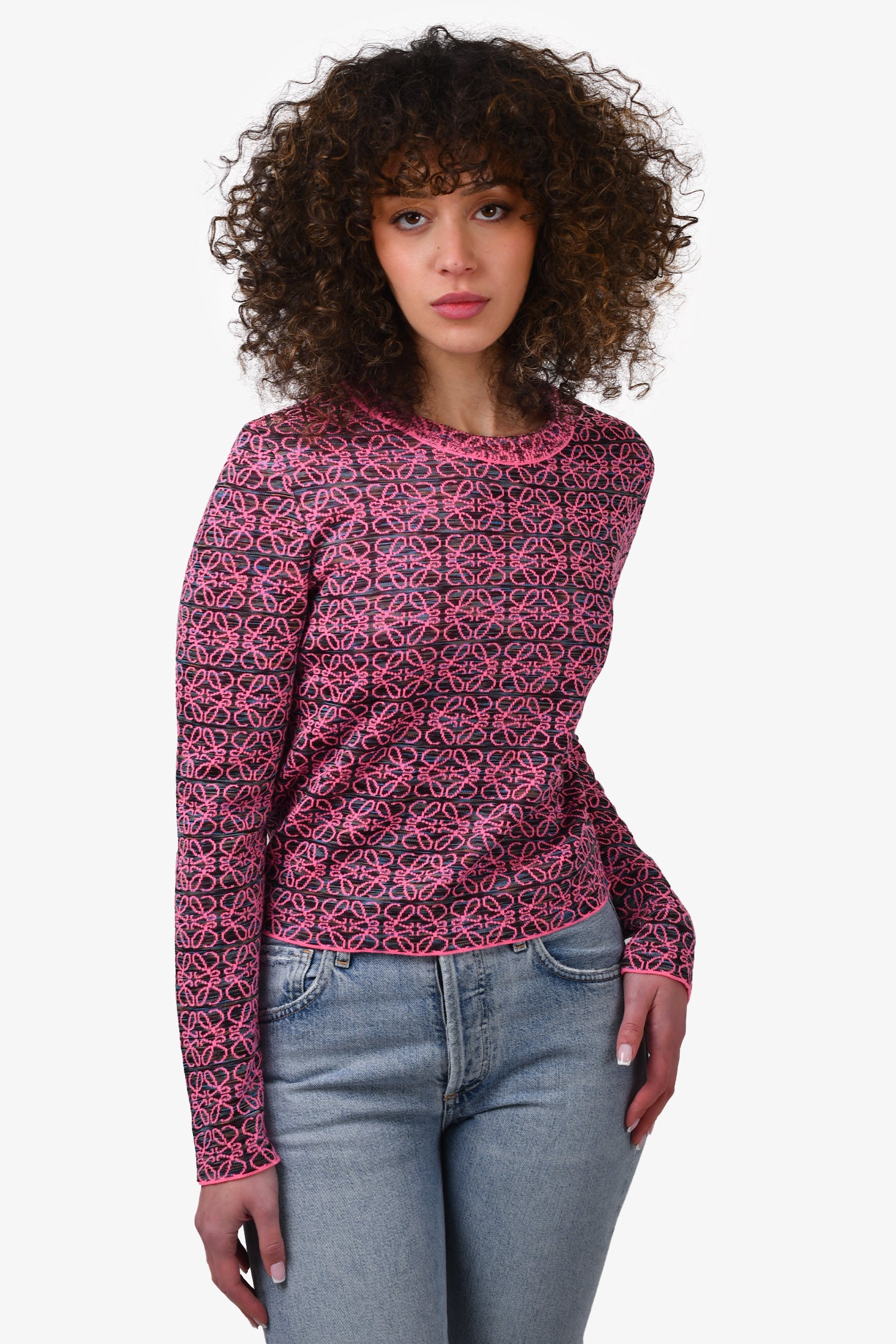 Loewe Pink Wool Blend Anagram Crewneck Sweater Size M