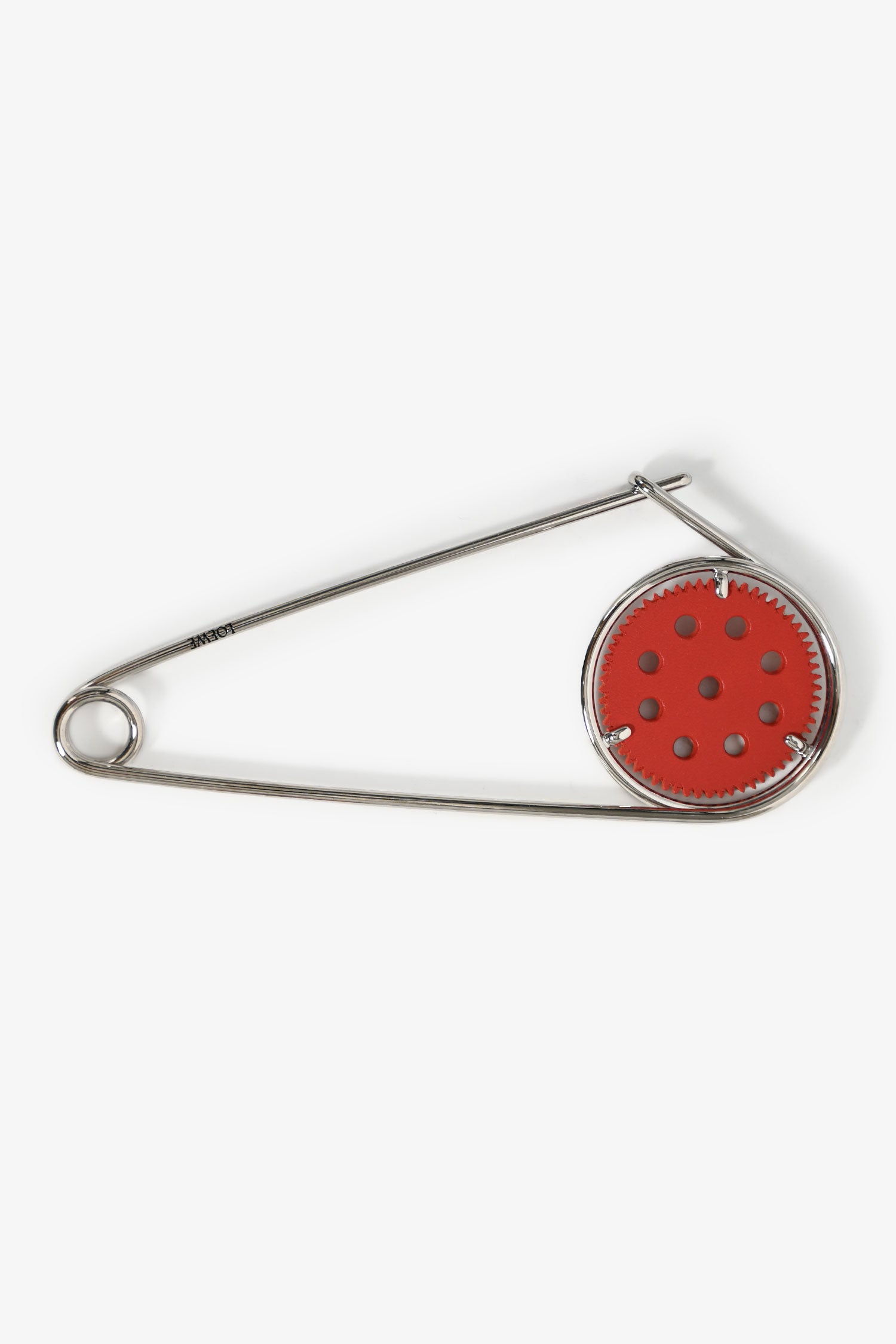 Refresh availabilityLoewe Silver/Red Leather Pin Bag Charm/Brooch. Red leather perforated pad. Silver-tone hardware.