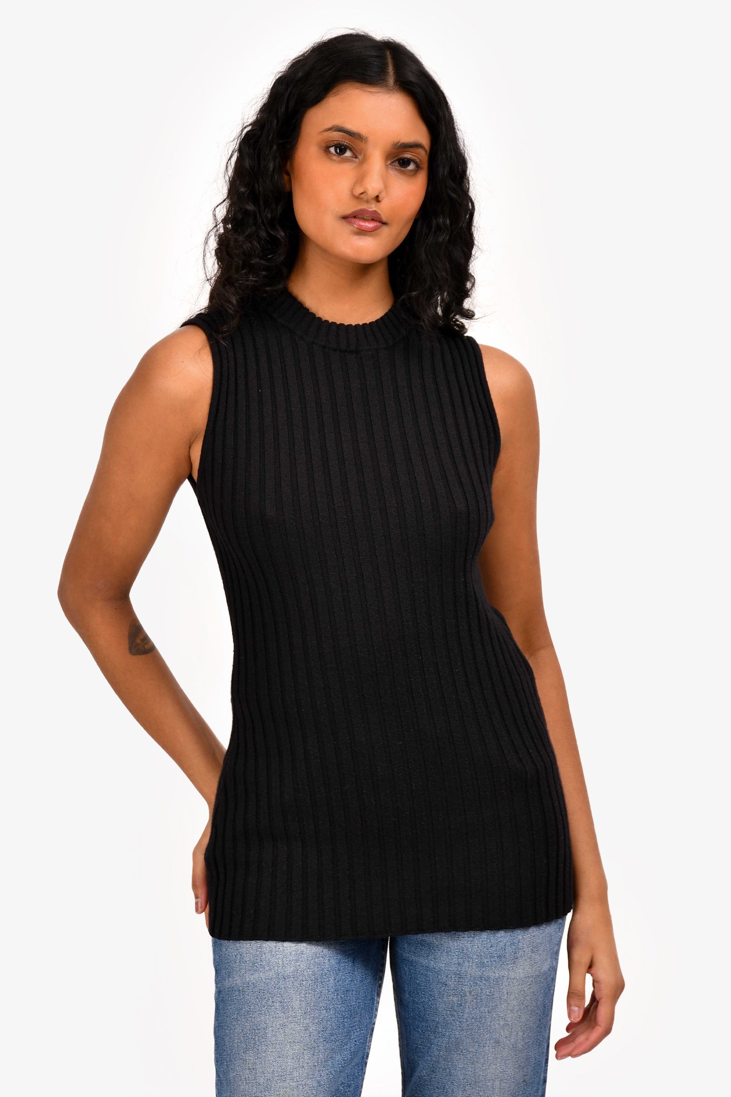 Refresh availabilityLorena Antoniazzi Black Ribbed Top. Pull-over Round neck. Sleeveless. Tonal stitching.