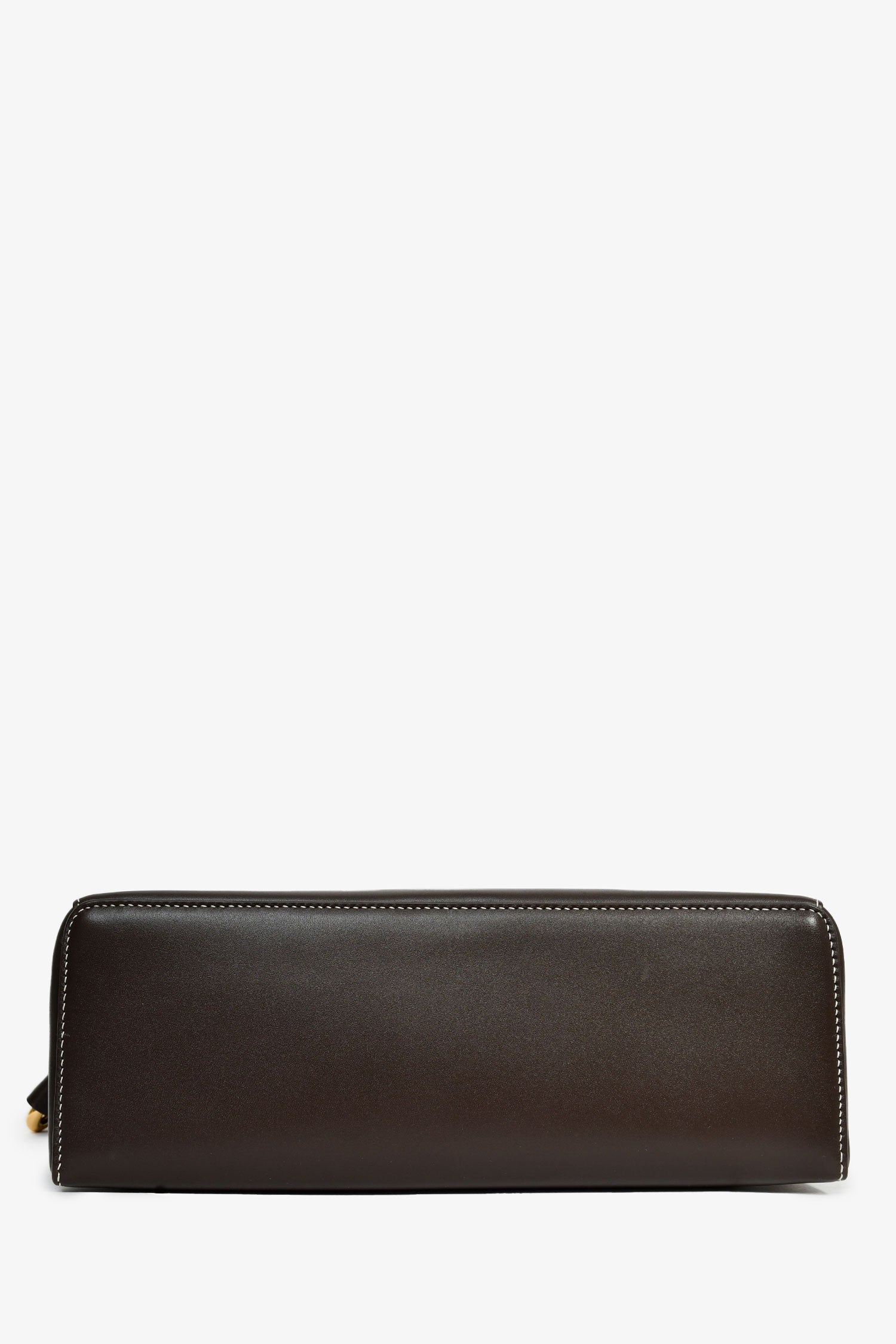 Refresh availabilityLoro Piana Brown Smooth Leather L27 Crossbody. Flat handle and crossbody. Gold-tone hardware. Fold-over flap. Attached clochette. Suede-lined interior with a single pocket. Contrast stitching.