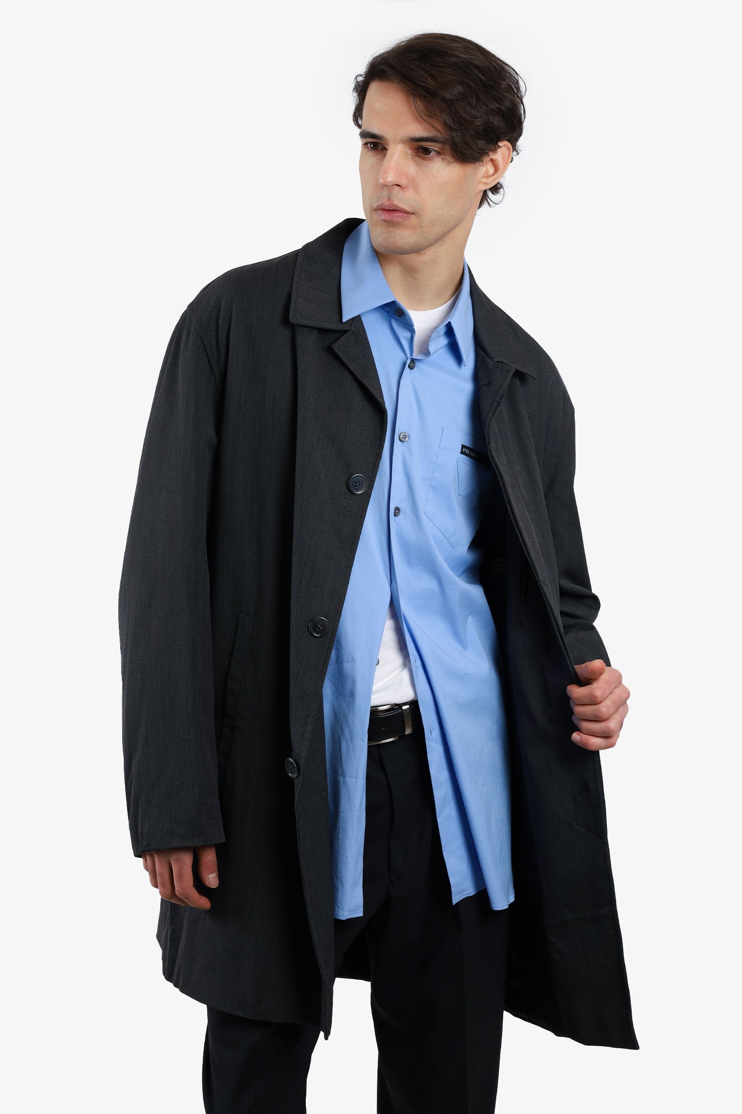 Refresh availabilityLoro Piana Grey Lined Men's Overcoat. Front button closure. Hidden button detailing. Quilted lining. Two front open pockets. Single interior open pocket. Rain & wind protection. Tonal stitching.
