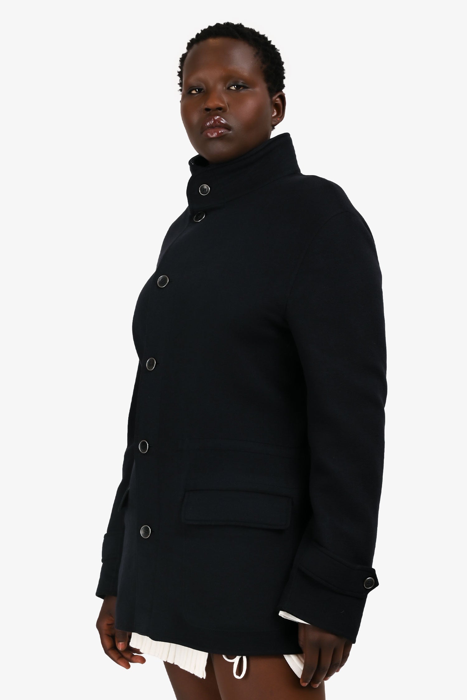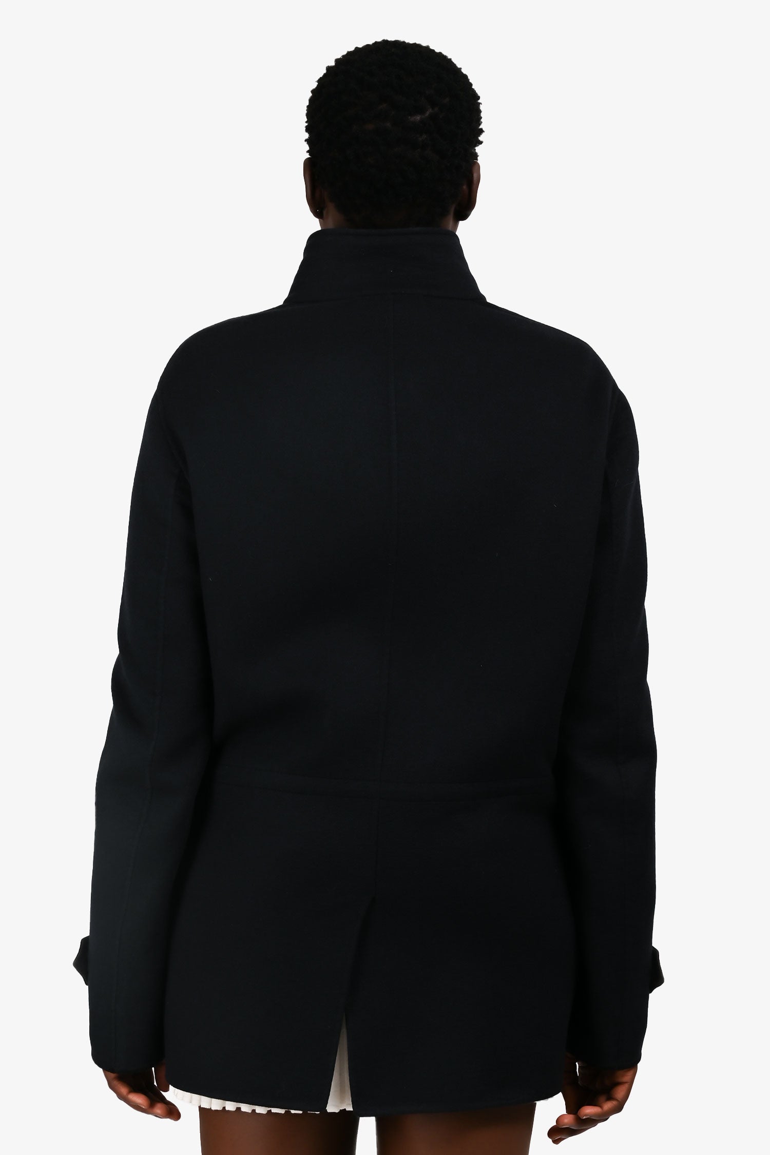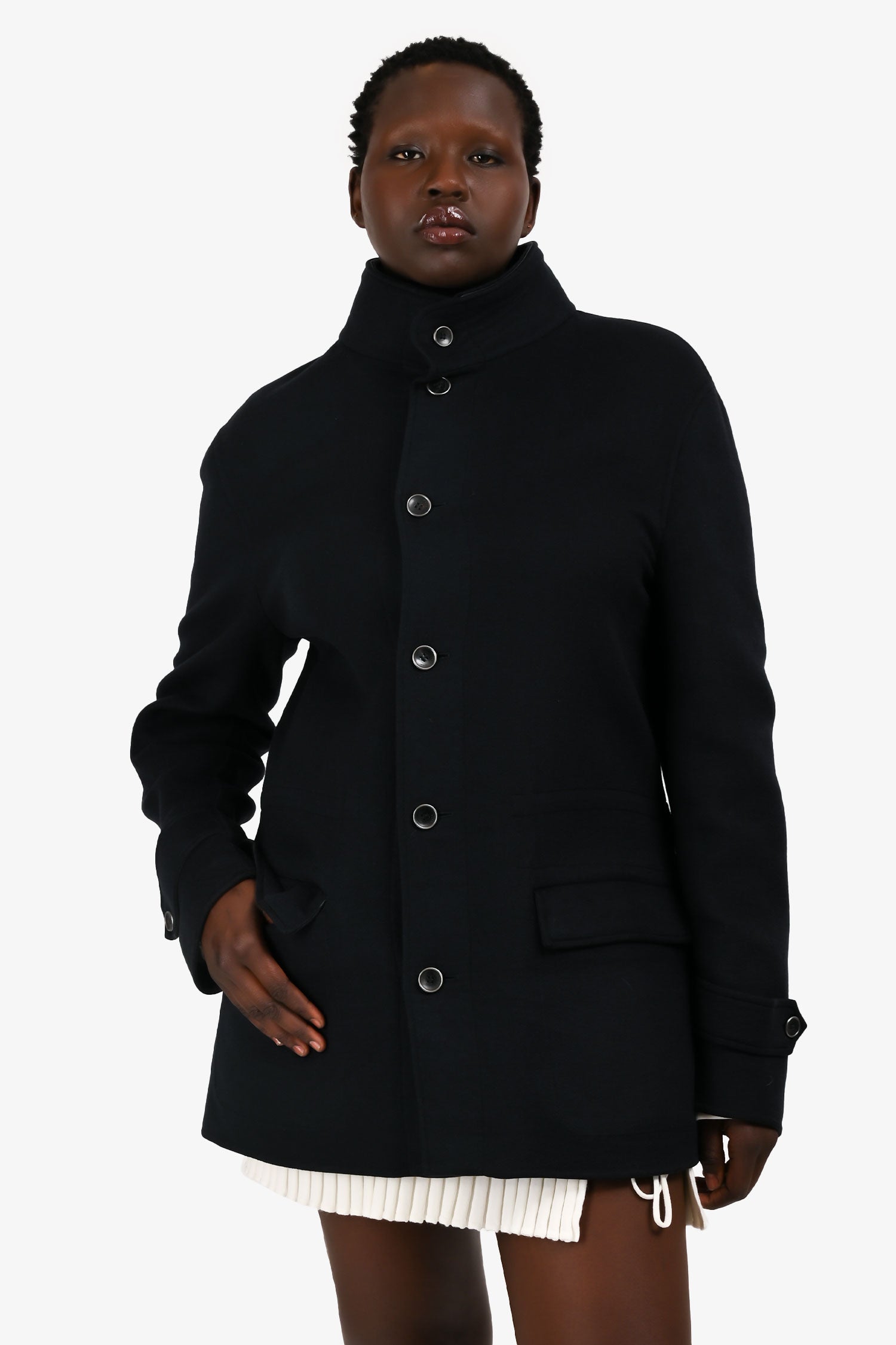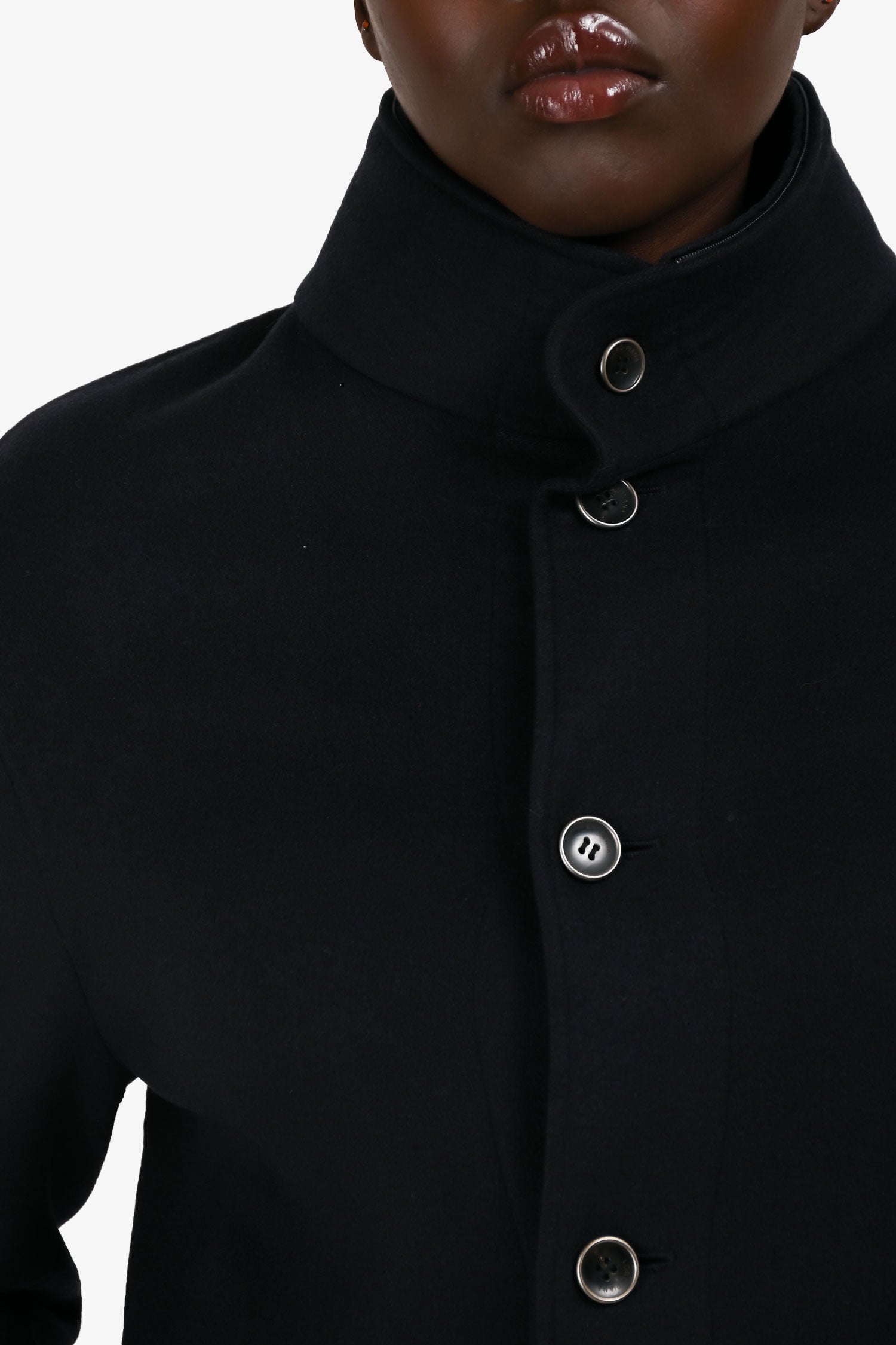 Loro Piana Navy Cashmere Single Breasted Button Up Coat Size 52