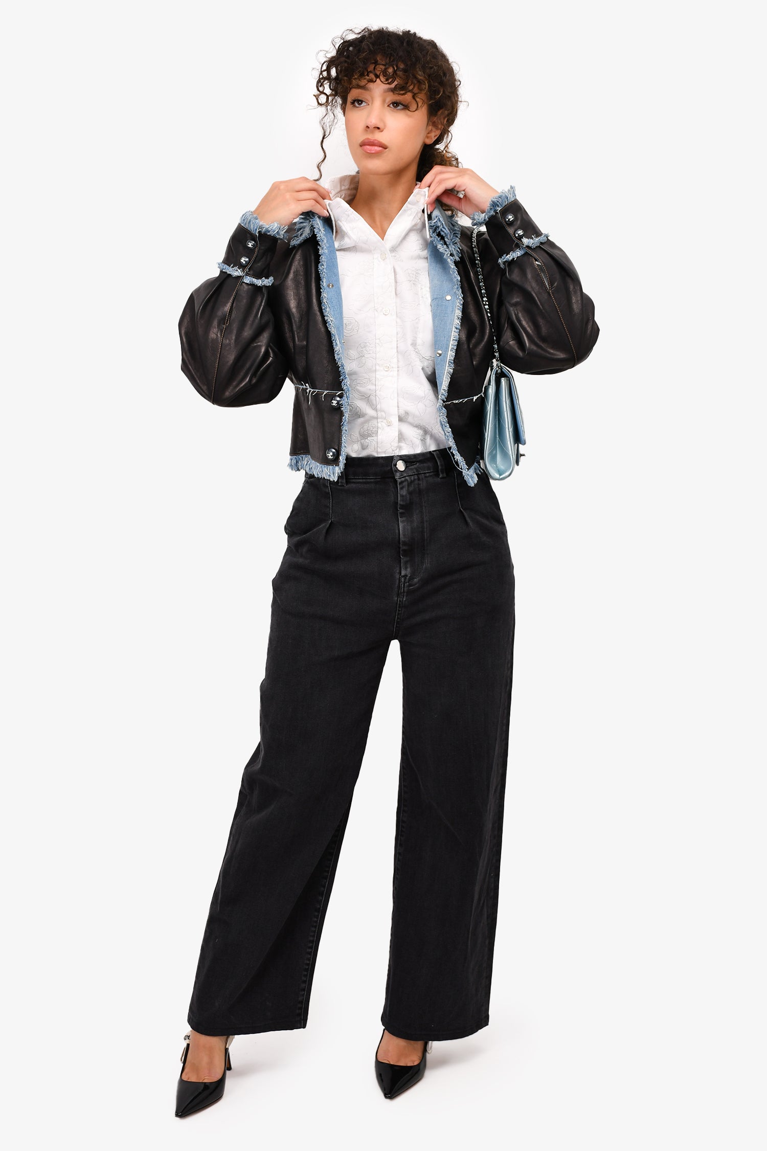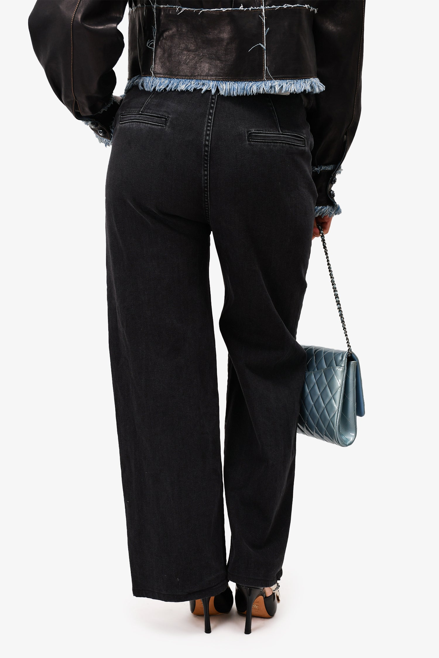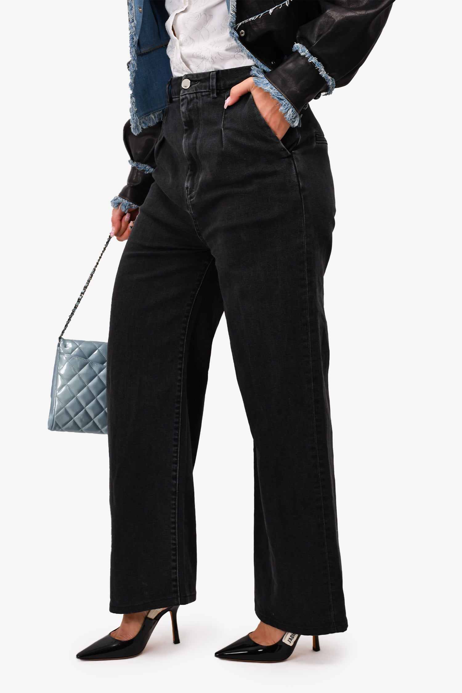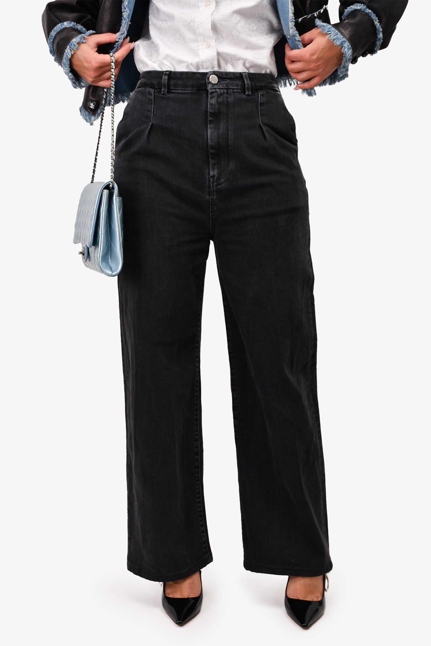 Refresh availabilityLou Lou Studio Black Wash Denim Wide Leg Jeans. Front zip and button closure. Front and rear pockets. Waist belt loops.