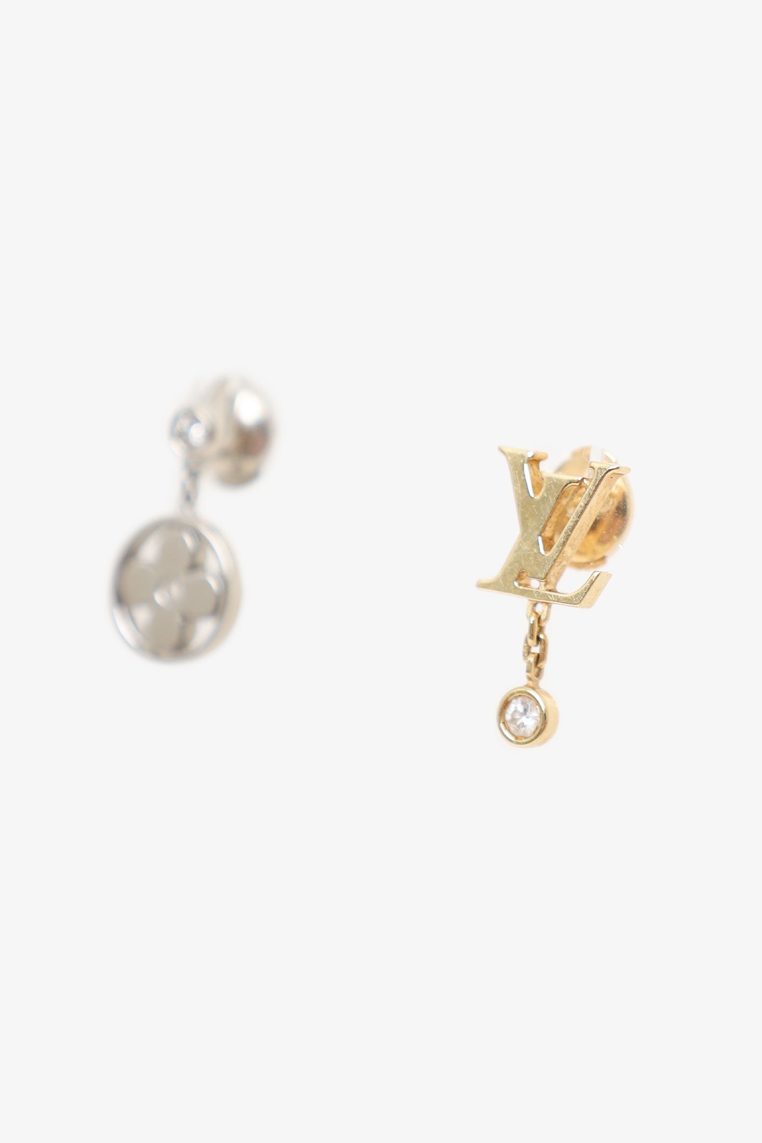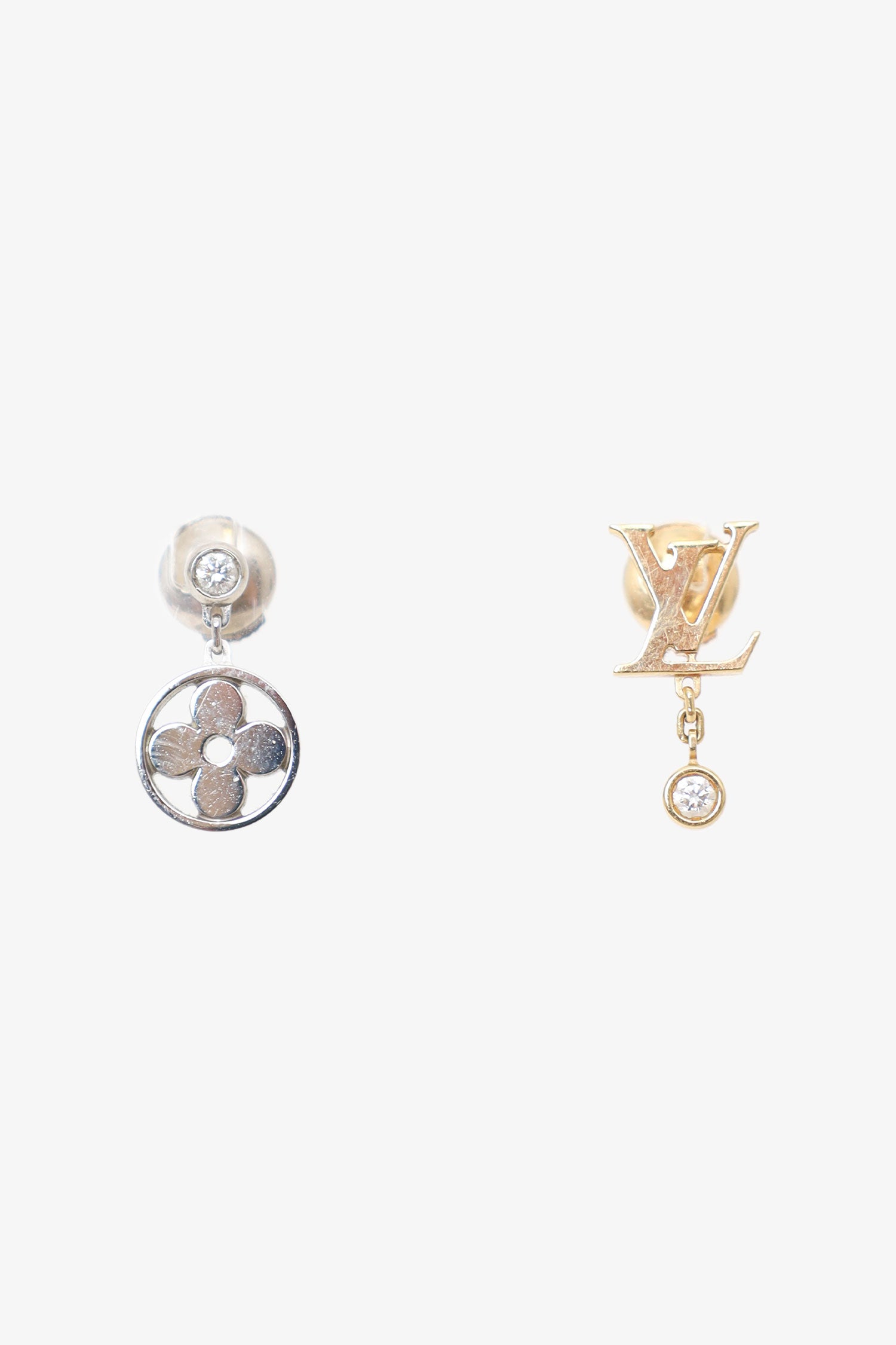 Refresh availabilityLouis Vuitton 18K White/Yellow Gold Idylle Blossom LV Logo Diamond Ear Studs. Rear push-pin closure.