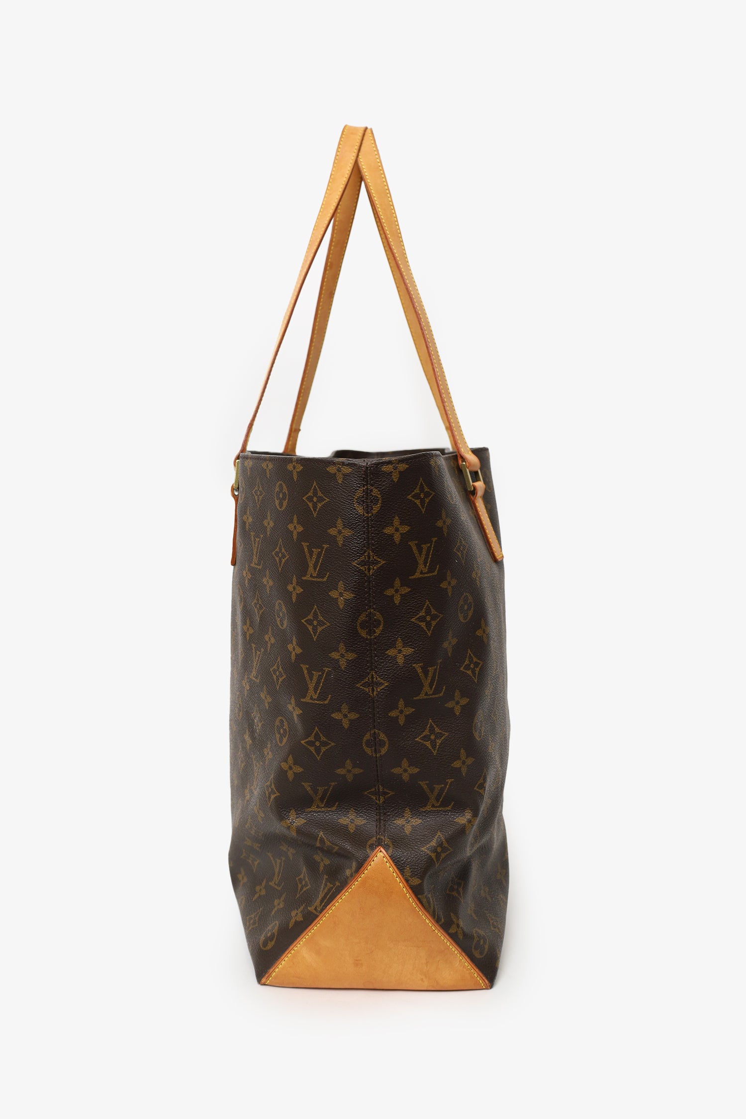 Louis Vuitton 1999 Monogram Large Luco Tote. Open top. Dual flat leather shoulder straps. 1 interior zip pocket and 1 interior slip pocket. Lined interior. Gold-tone hardware. Contrast stitching.