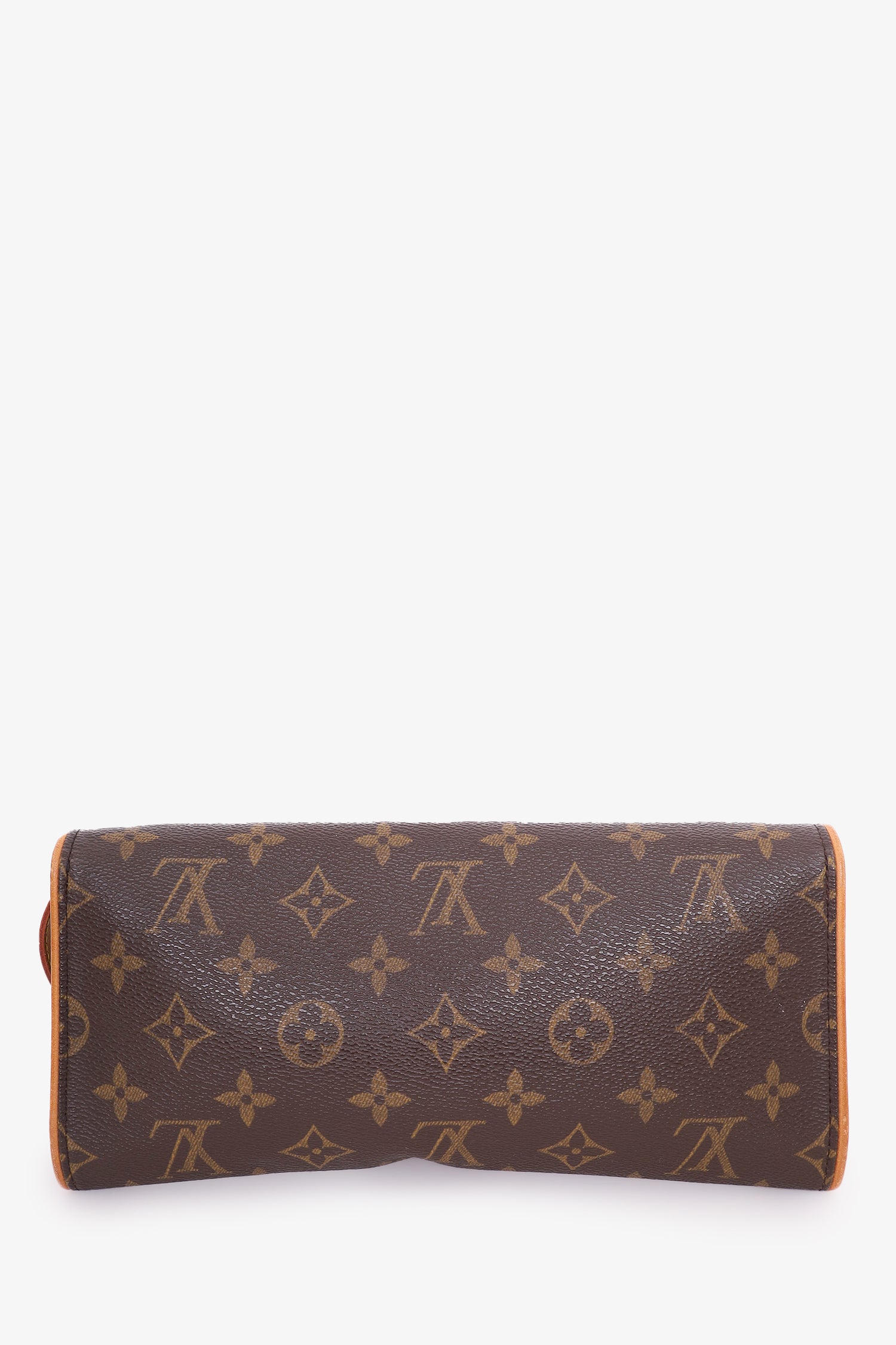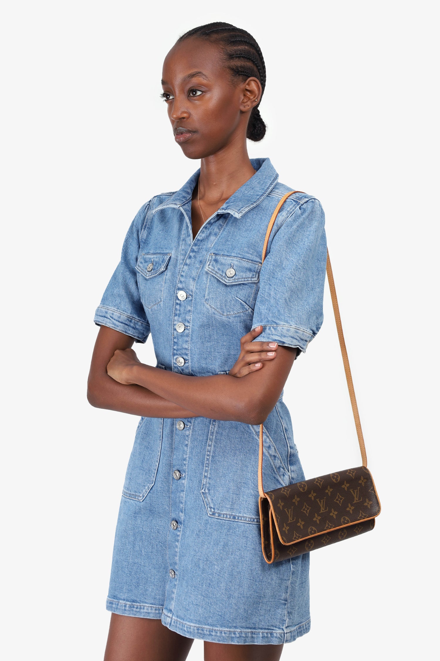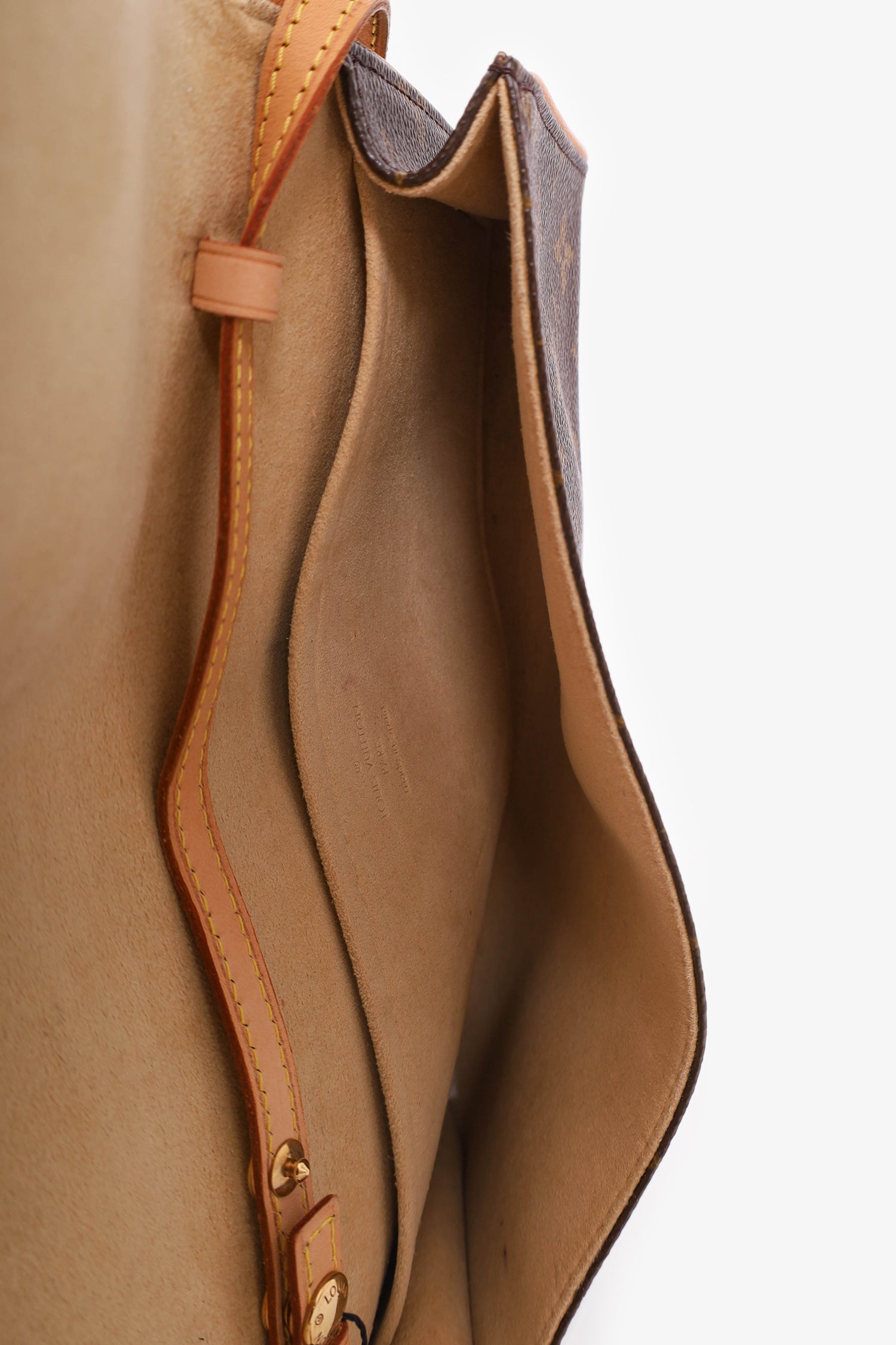 Refresh availabilityLouis Vuitton 2001 Brown Monogram Pochette Twin GM Shoulder Bag. Front fold over flap with magnetic button closure. Single interior wall slip pocket. Suede interior lining. Detachable / adjustable shoulder strap. Tonal stitching.