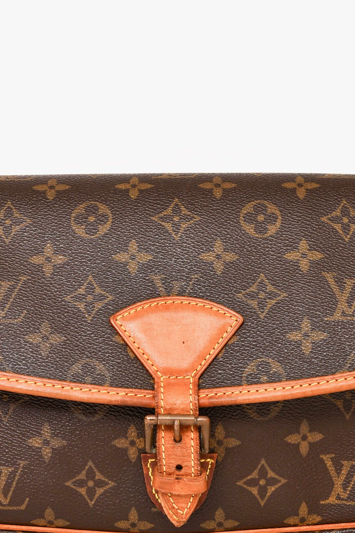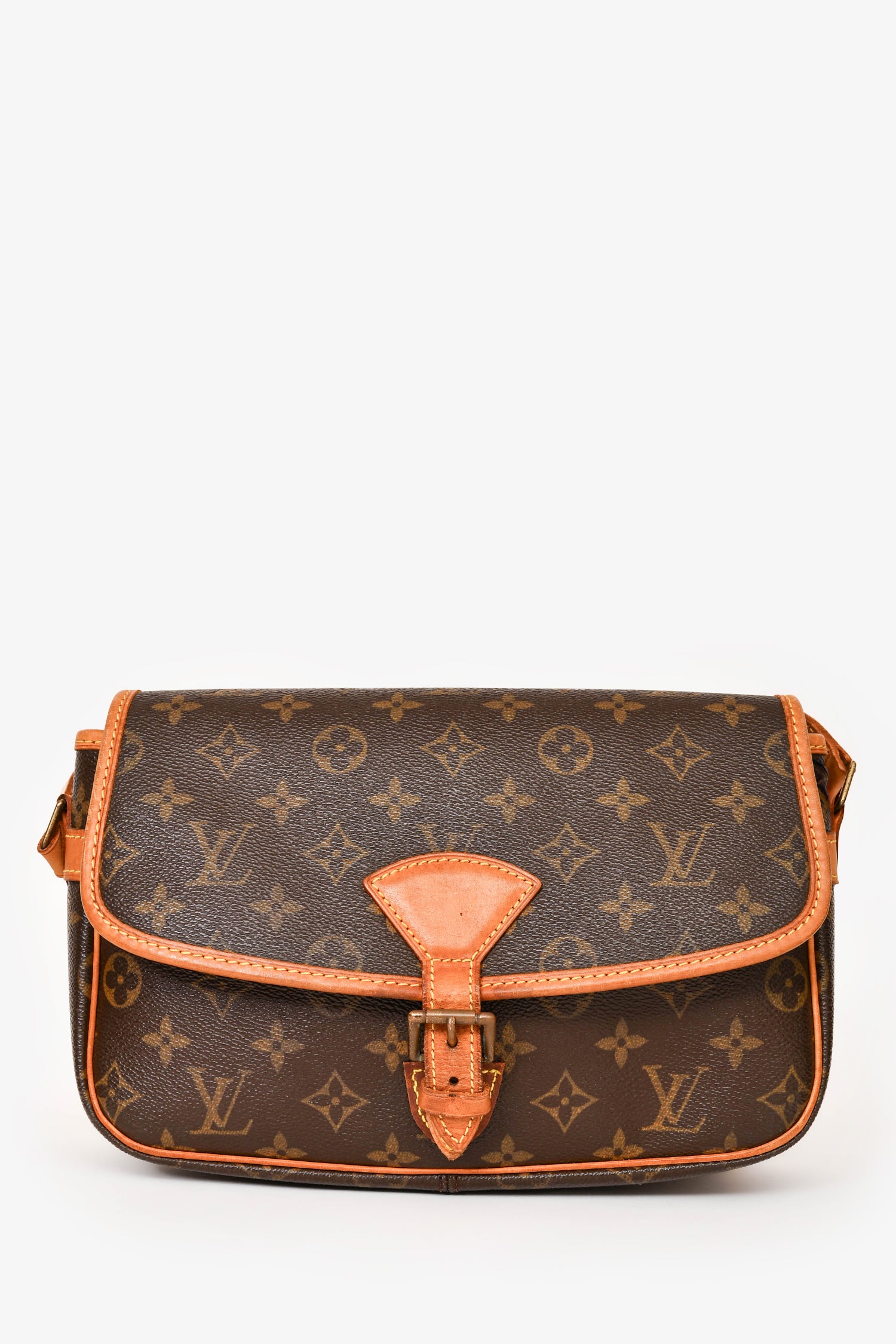 Refresh availabilityLouis Vuitton 2003 Monogram Sologne Crossbody Bag (Refurbished). Vachetta leather trim and adjustable shoulder strap. Front flap with buckle detail and added snap button closure. Interior zip pocket. Exterior slip pocket. Gold-tone hardware. Tonal stitching.