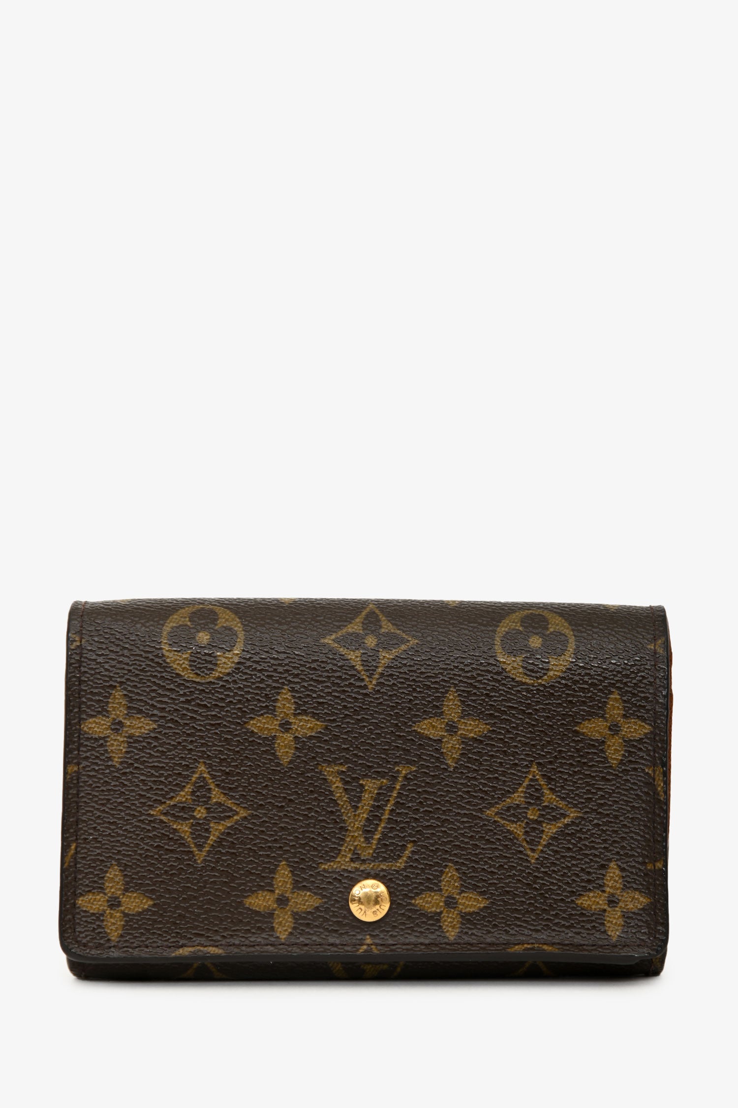 Refresh availabilityLouis Vuitton 2004 Brown Monogram Porte-Monnaie Tresor Wallet. Fold-over flap with a snap closure. 5 interior compartments: 1 coin pouch, 1 main, and 3 card slots. Tonal stitching.