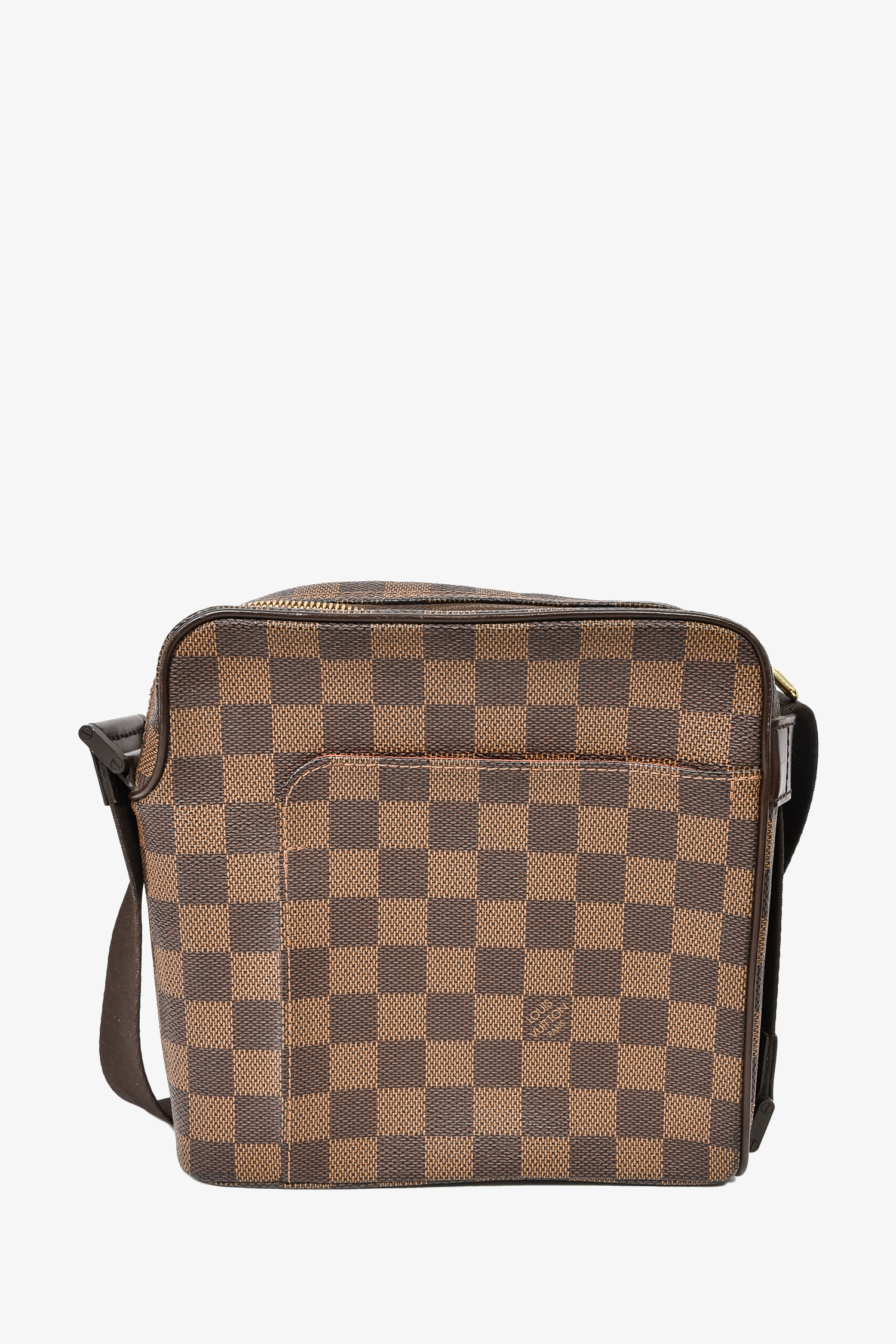 Refresh availabilityLouis Vuitton 2004 Damier Ebene Olav PM Crossbody Bag. Top zip closure. Interior side slip pocket. Exterior slip pocket. Adjustable crossbody strap. Tonal stitching