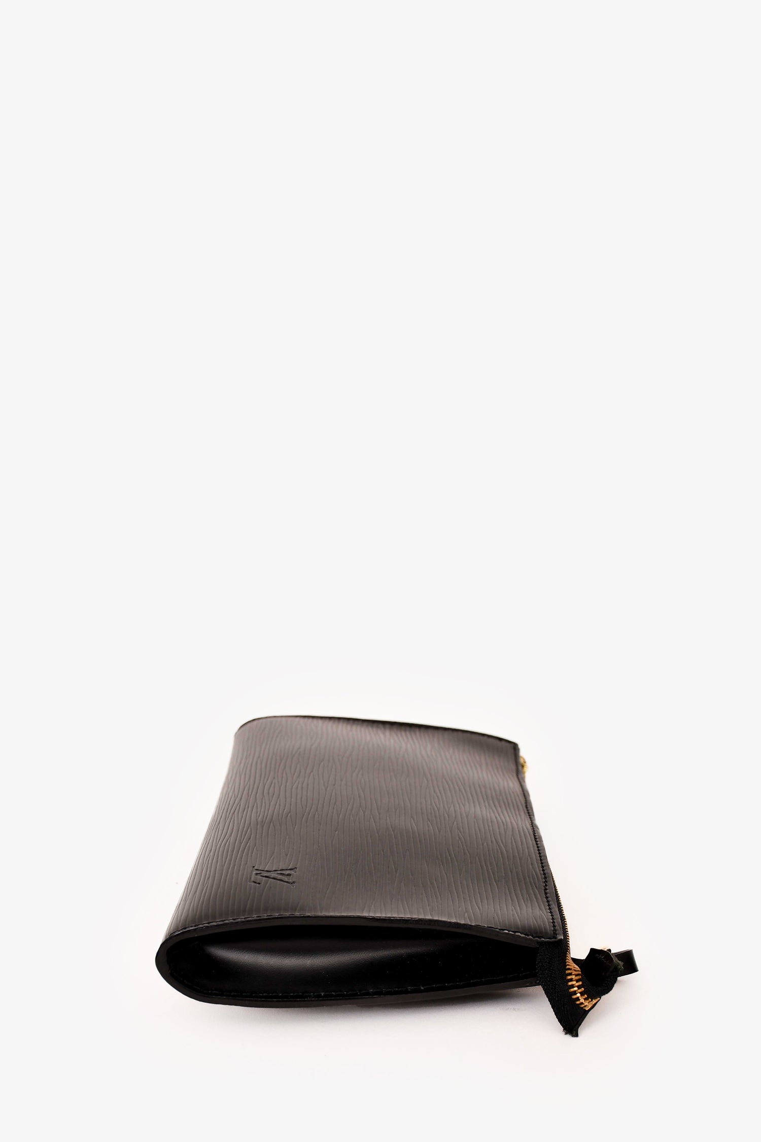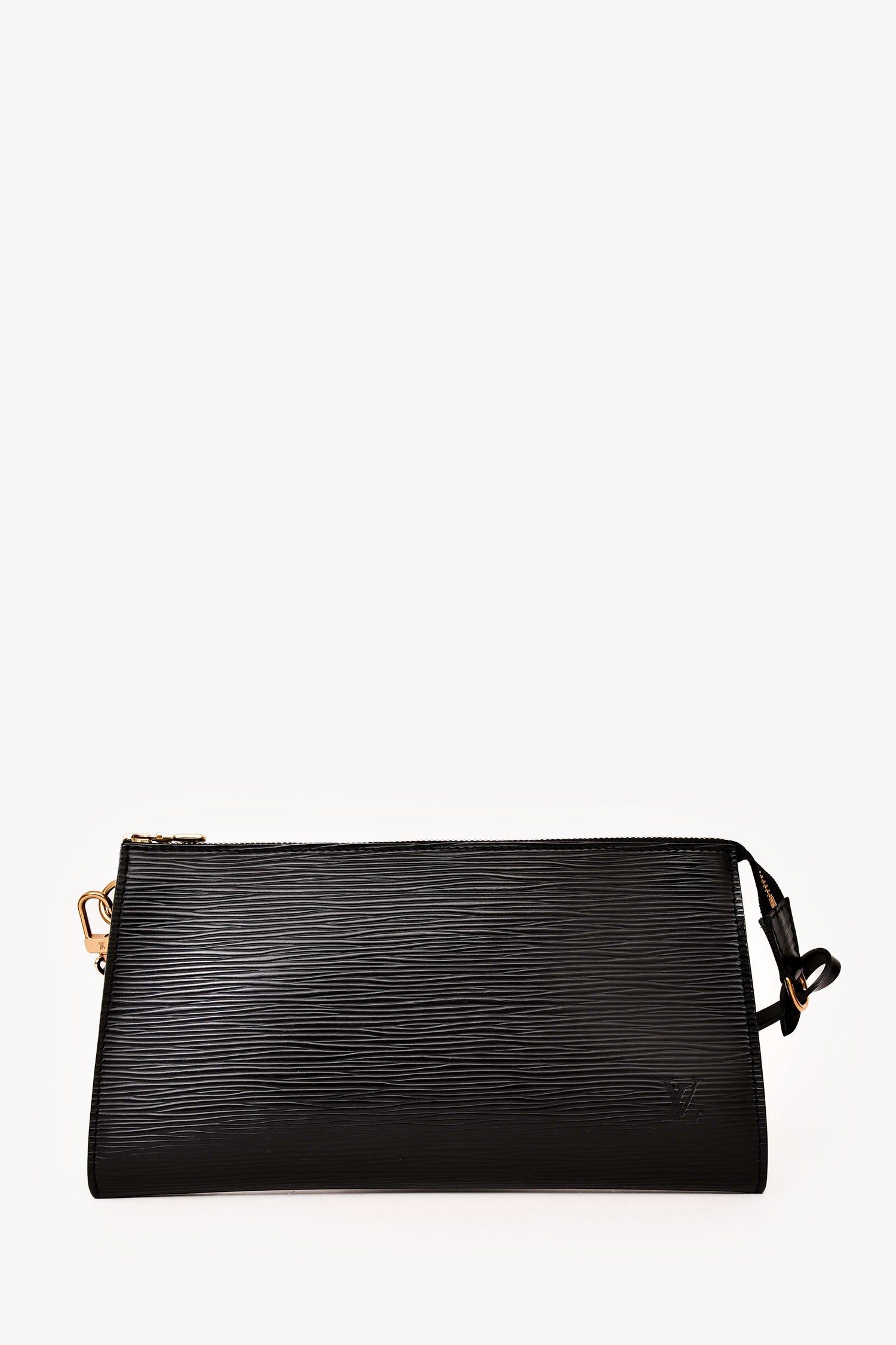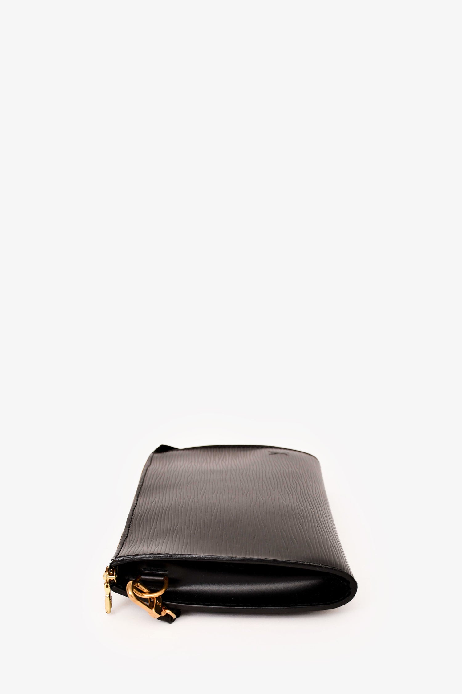 Refresh availabilityLouis Vuitton 2005 Black Epi Leather Pochette. Top zip closure. Leather strap handle. Gold-tone hardware. Tonal stitching.