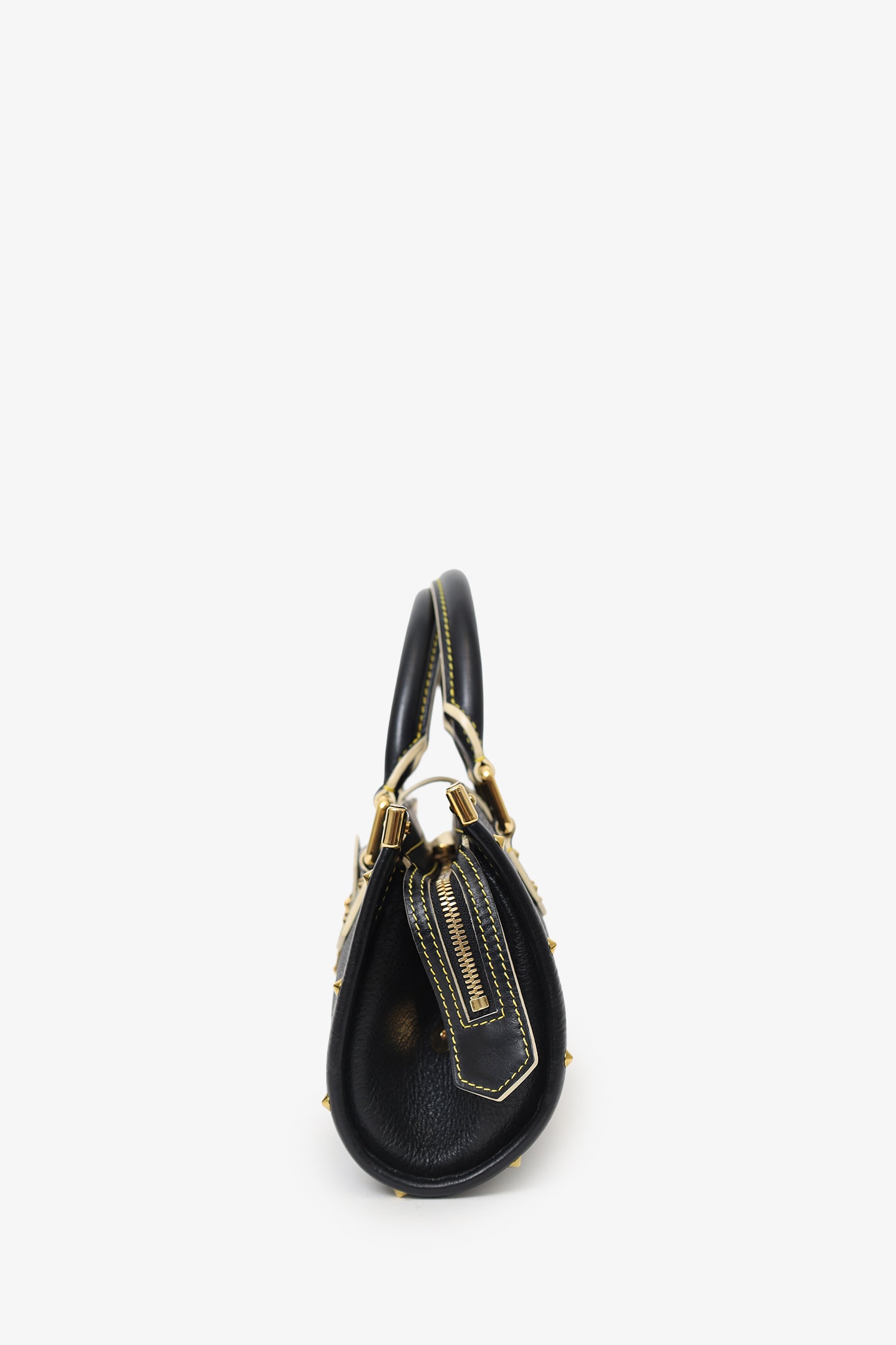 Refresh availabilityLouis Vuitton 2005 Black/GHW Suhali Leather 'L'Epanoui' Bag. Top zip closure. Front fold-over flap with push clasp. Twin top handles. Lined interior. Single rear wall zip pocket. Gold-tone hardware. Contrast stitching.