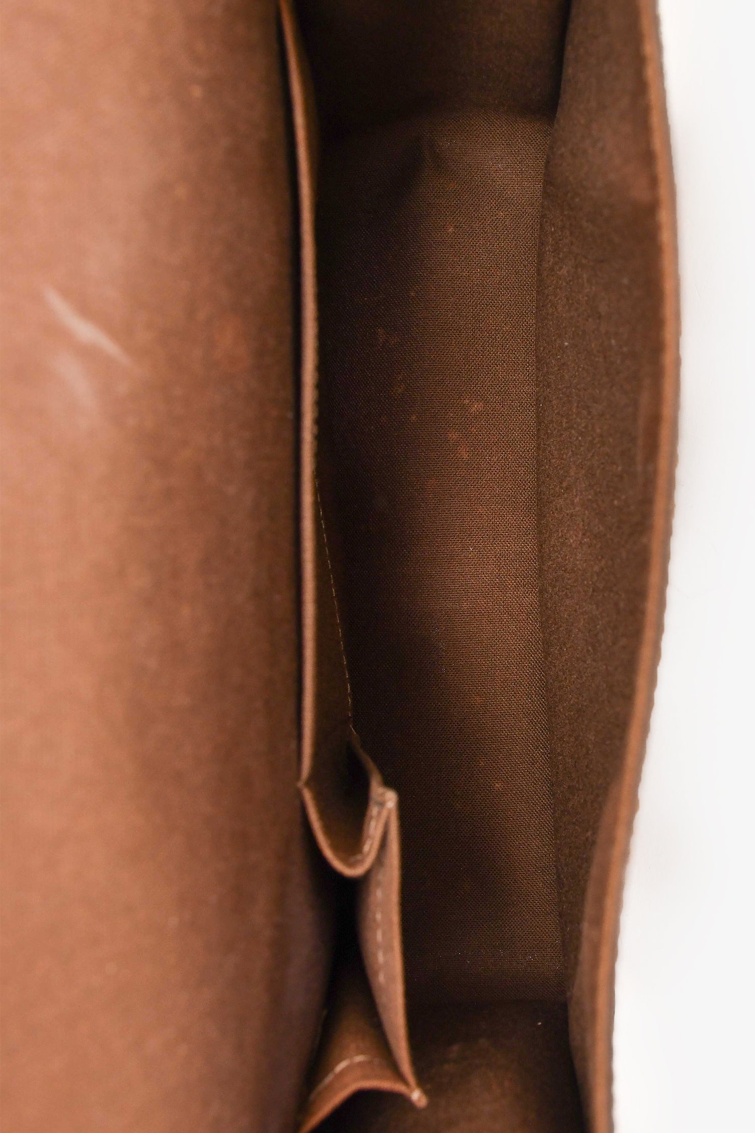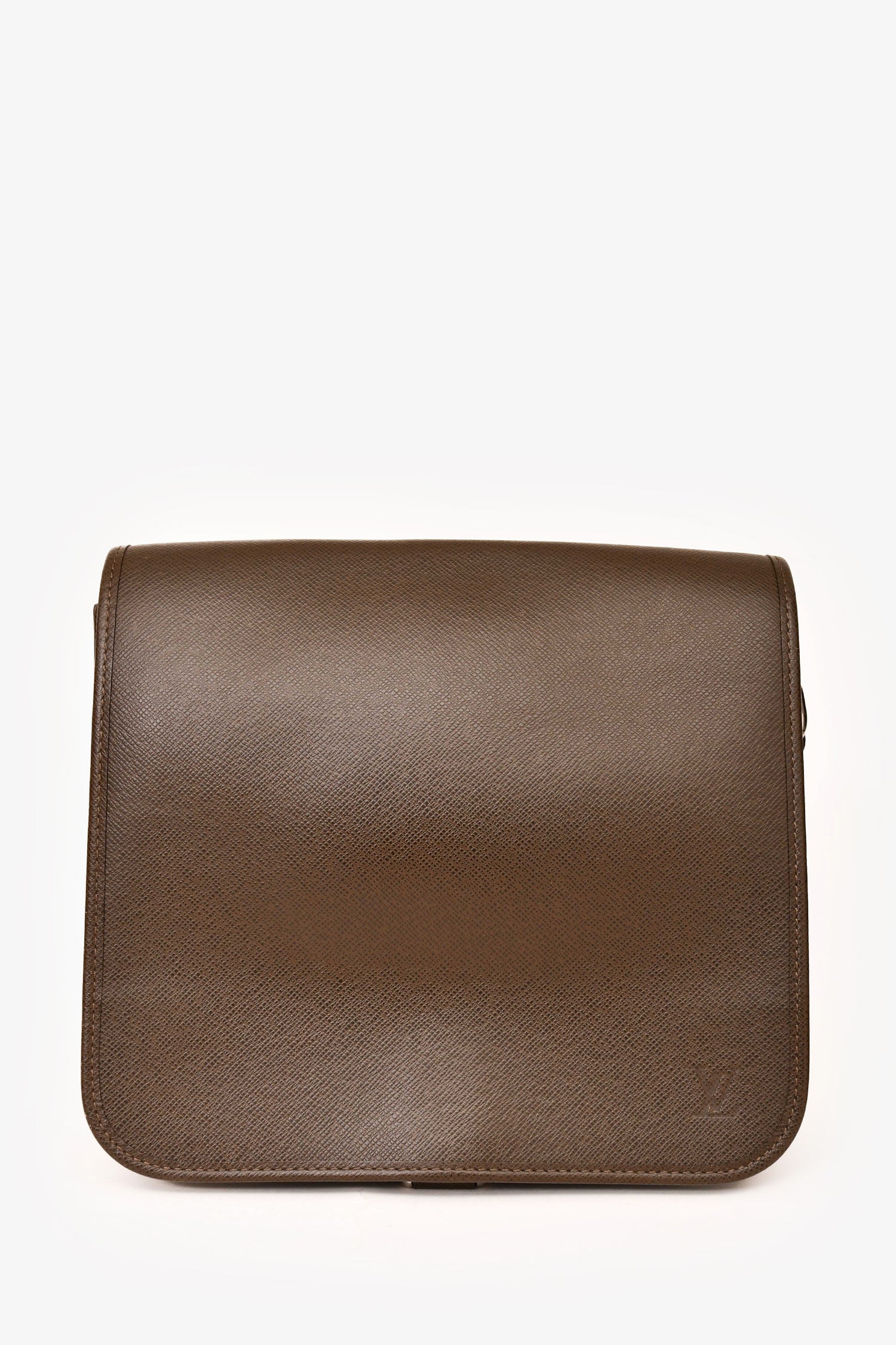 Refresh availabilityLouis Vuitton 2006 Brown Leather Messenger Bag. Front fold-over flap with strap and snap-button closure. Adjustable crossbody strap. Single exterior slip compartment. 2 interior slip compartments. Tonal textile interior lining. Silver-toned hardware. Tonal stitching.