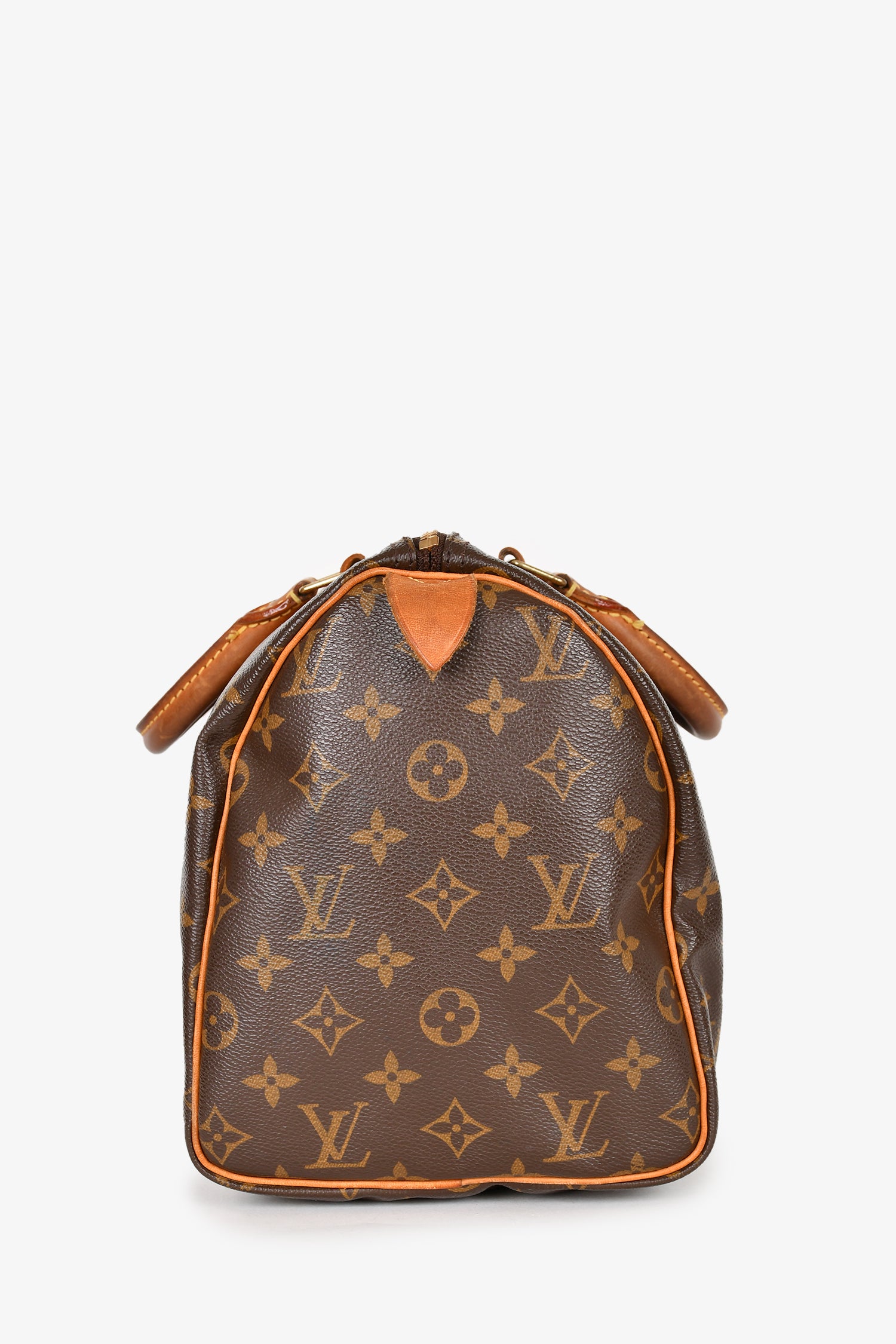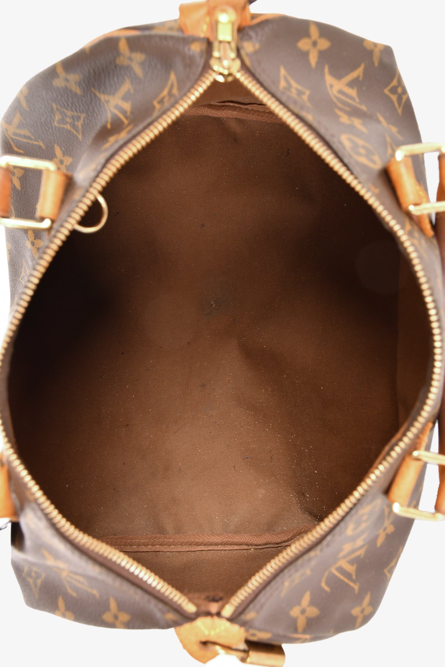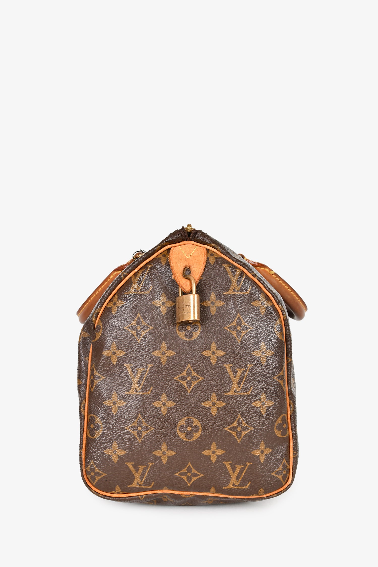 Refresh availabilityLouis Vuitton 2007 Monogram Speedy 30 Bag. Twin rolled handles. Top zip closure. Brown textile interior lining. Single interior wall flap with slip pocket. Gold-tone hardware. Tonal stitching.