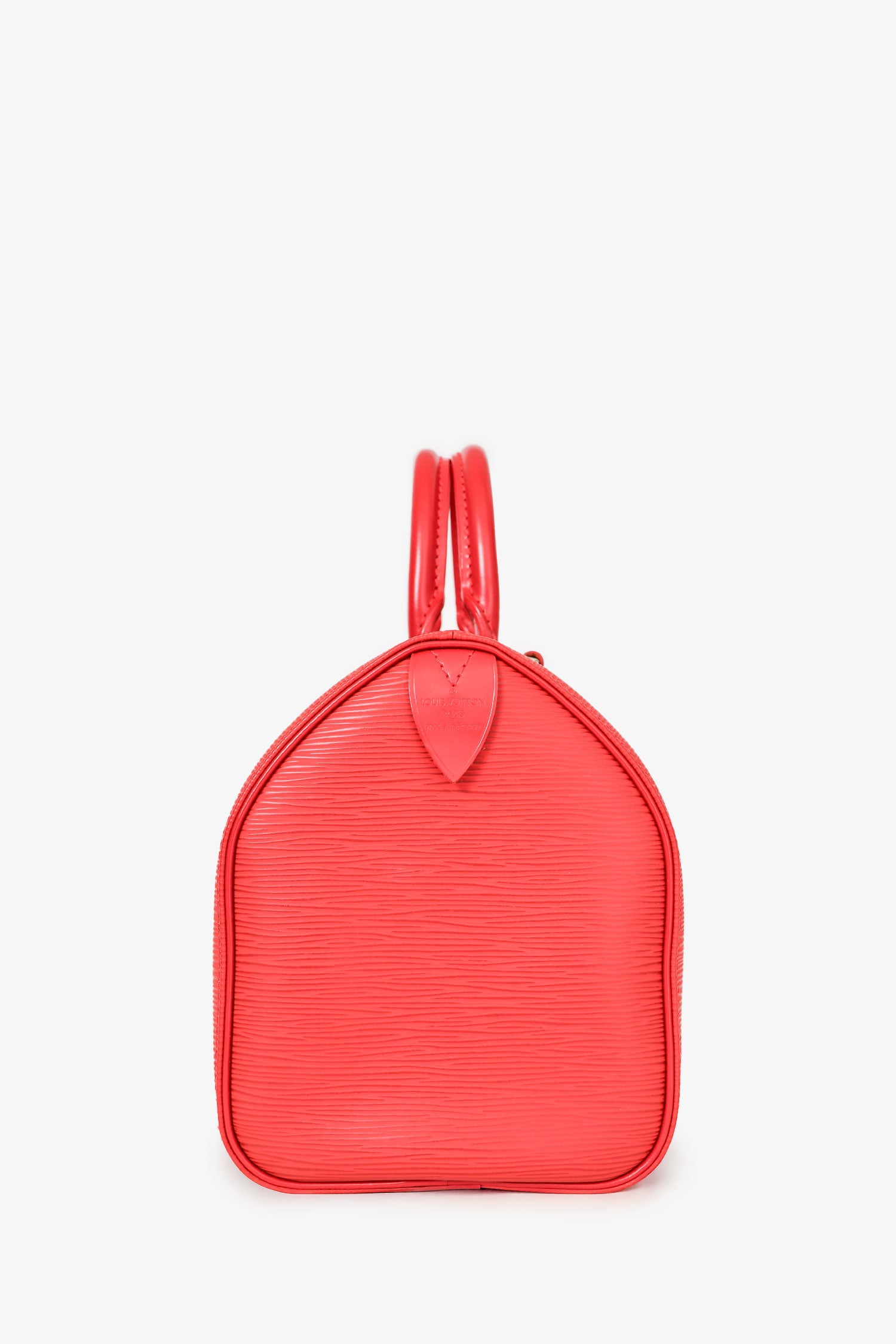 Refresh availabilityLouis Vuitton 2007 Red Epi Leather Speedy 30 Top Handle. Silver-tone hardware. 2 top handles. Exterior slip compartment. Lined interior with 2 pockets. Tonal stitching.