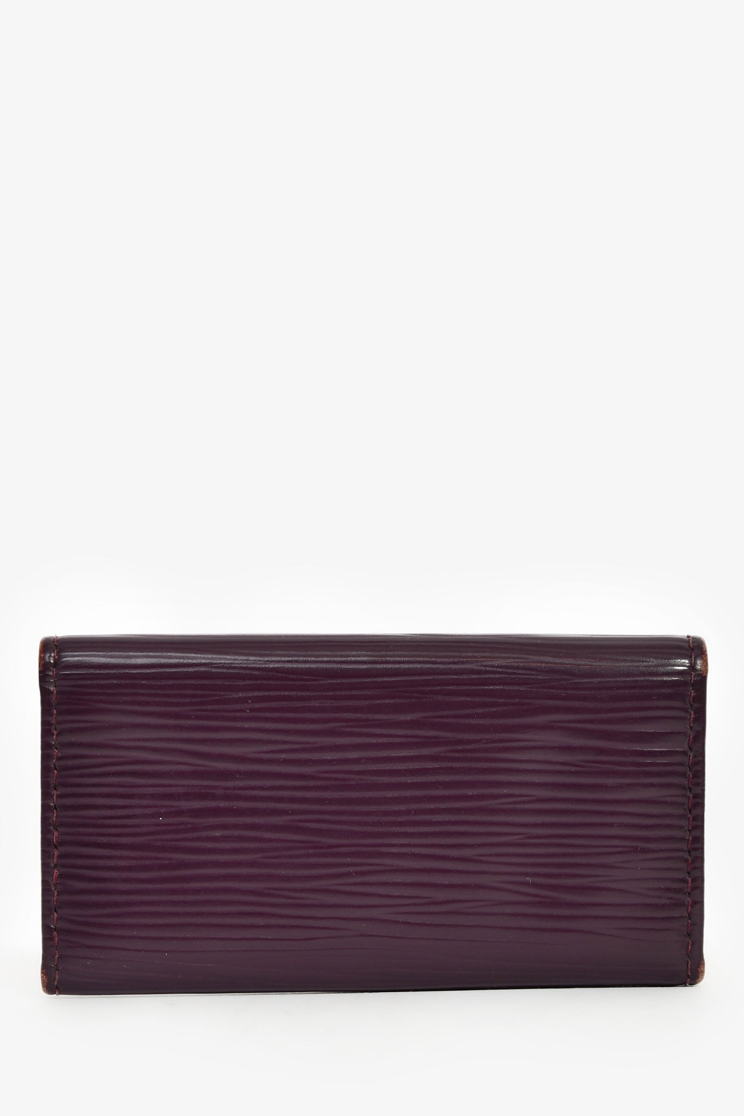 Refresh availabilityLouis Vuitton 2007 Violet Epi Leather 4 Key Case. Fold-over flap with a snap closure. 4 interior key holders. Lined leather interior. Silver-tone hardware. Tonal stitching.