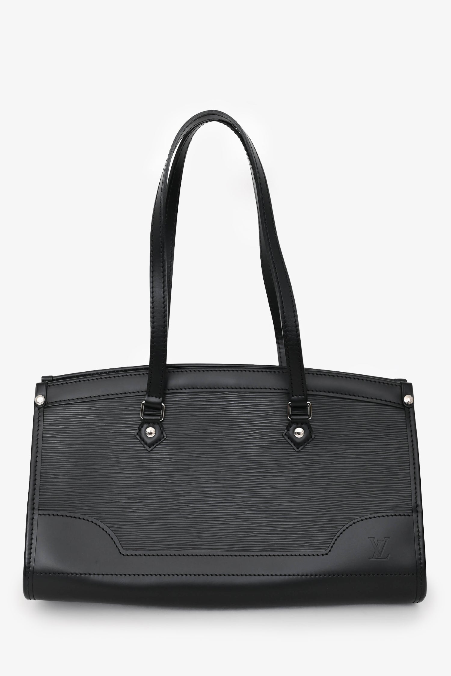 Refresh availabilityLouis Vuitton 2008 Black Epi Madeleine PM Shoulder Bag. Dual handles. Top zip closure. Tonal textile interior lining. Single interior wall slip pocket. Silver-tone hardware.