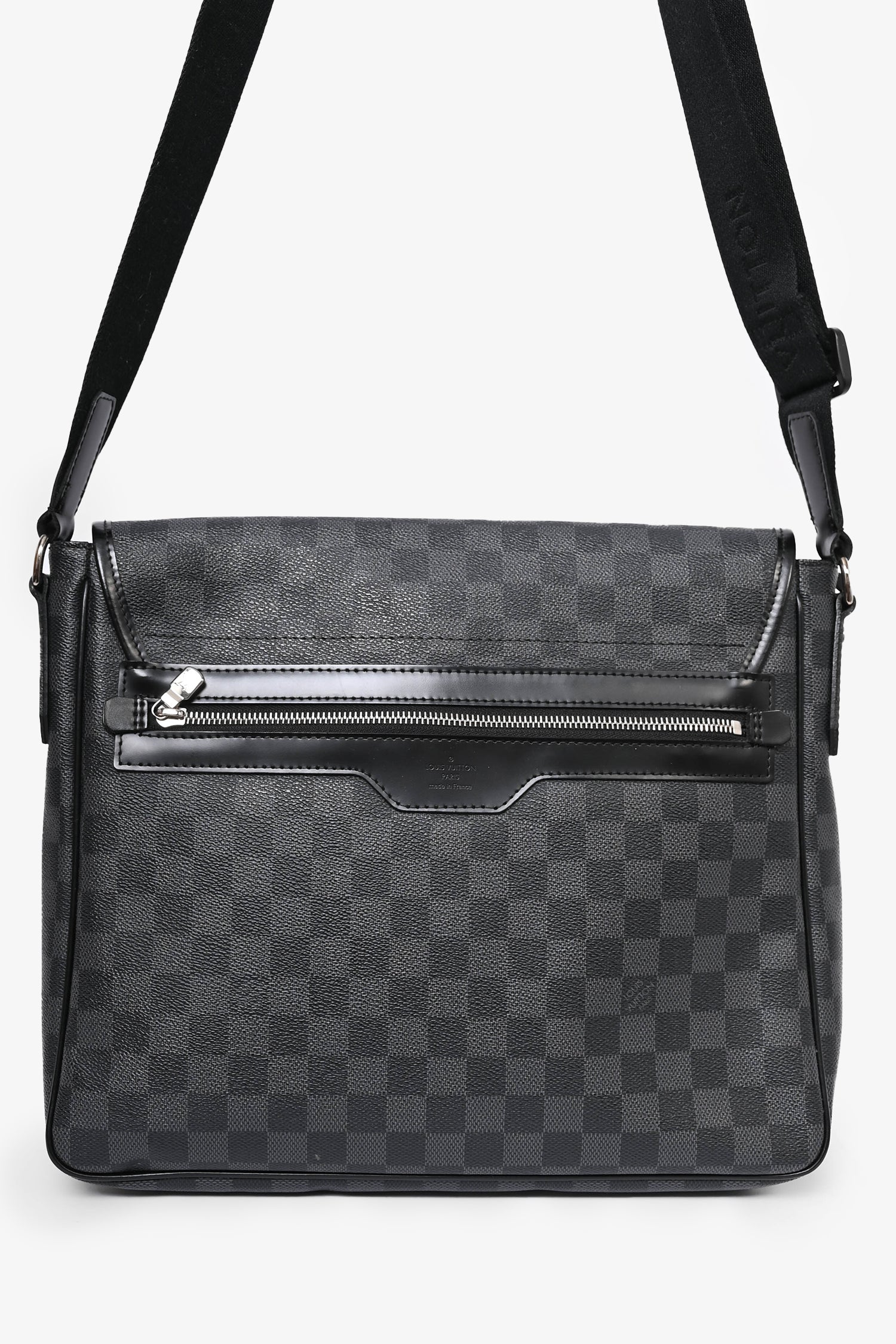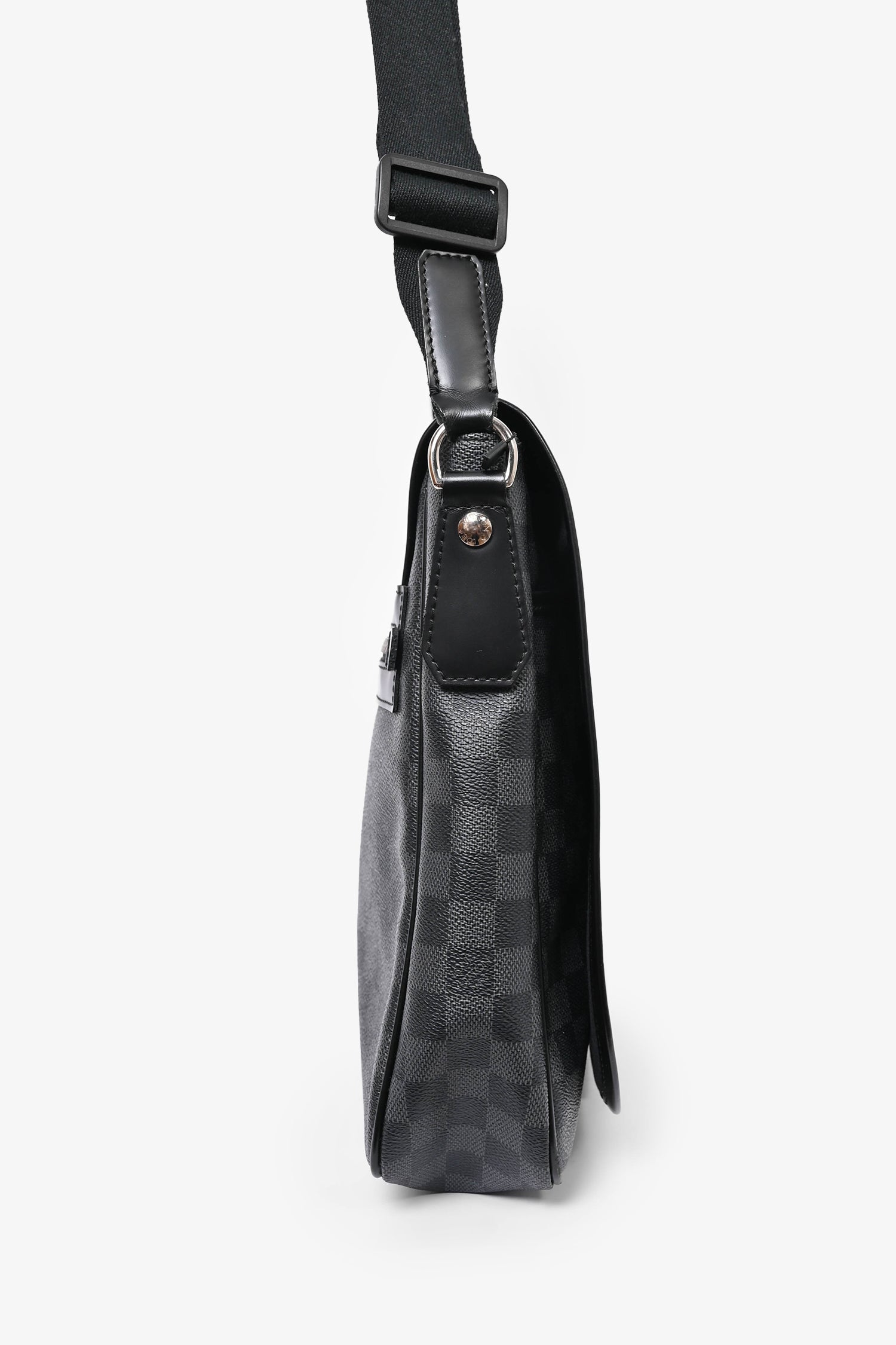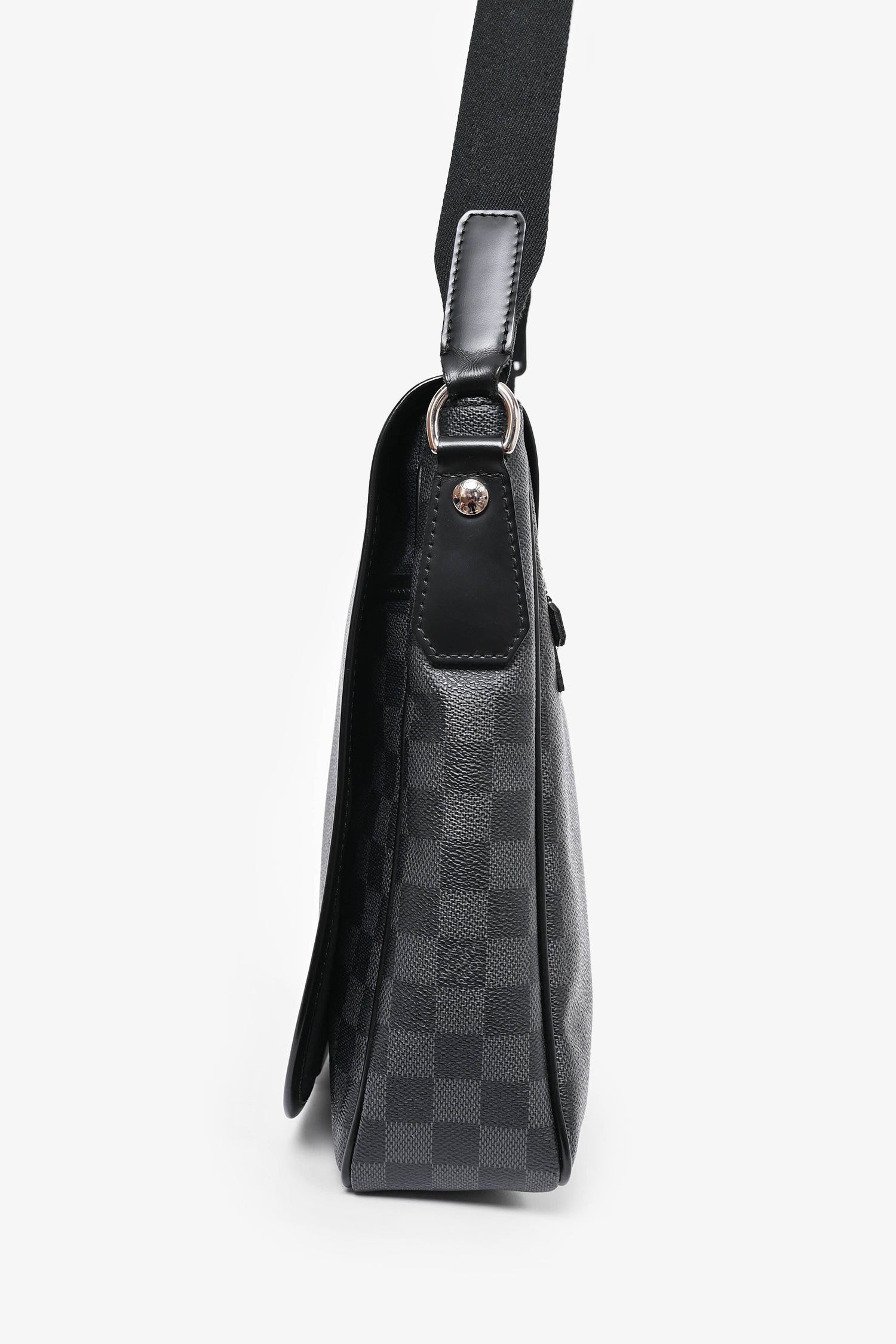 Refresh availabilityLouis Vuitton 2009 Damier Ebene Daniel MM Messenger Bag. Tonal stitching. Leather trimming. Fold-over flap. Silver-tone hardware. Magnetic closure. Concealed exterior compartment. 2 interior pockets.