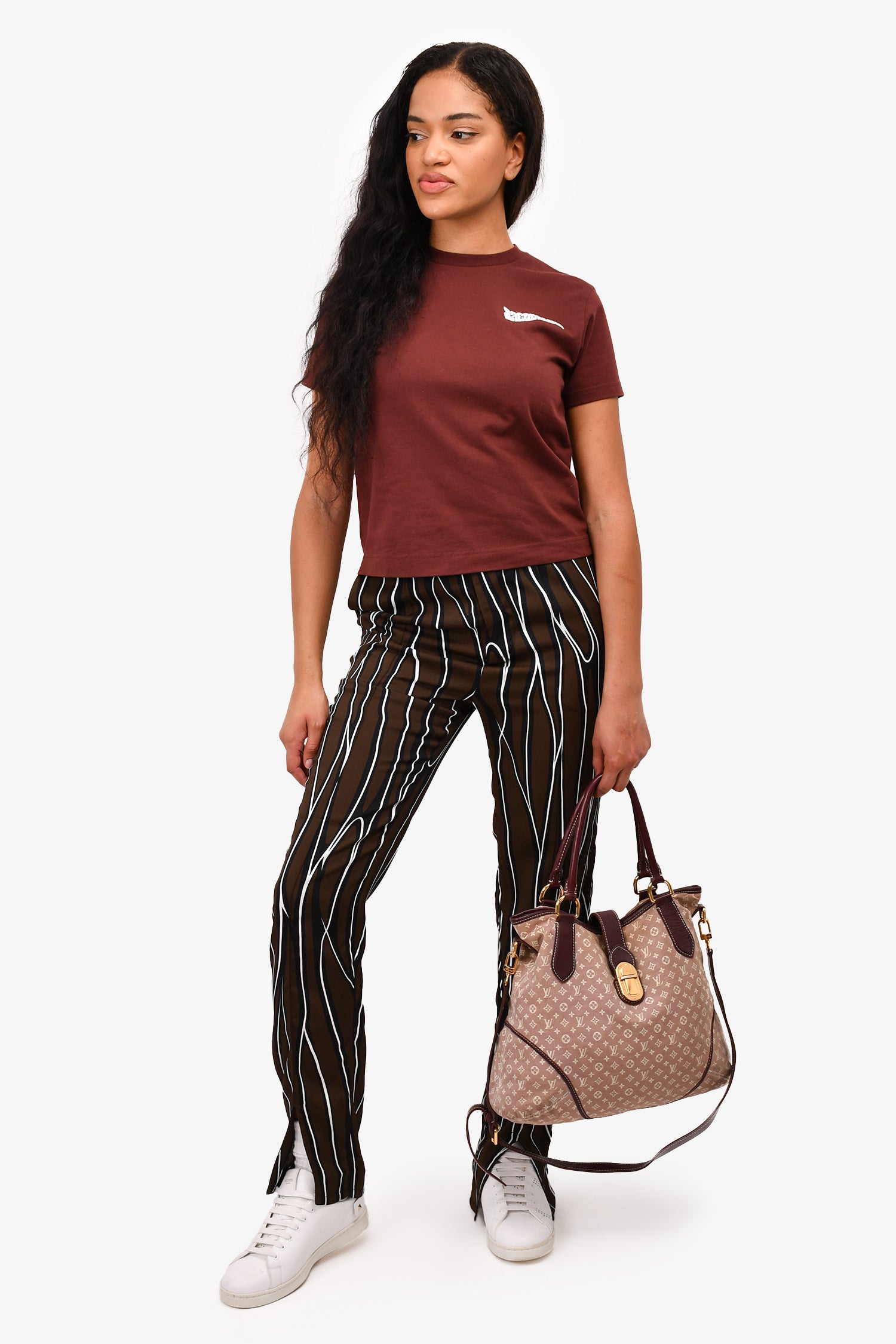 Refresh availabilityLouis Vuitton 2010 Burgundy Canvas Idylle Elegie Top Handle With Strap. Gold-tone hardware. Brand monogram throughout. Push-lock strap closure with top zipper. Two interior pockets. Tonal stitching.