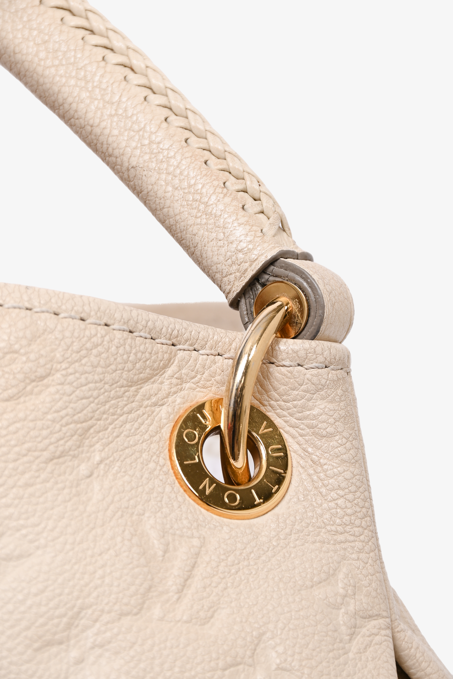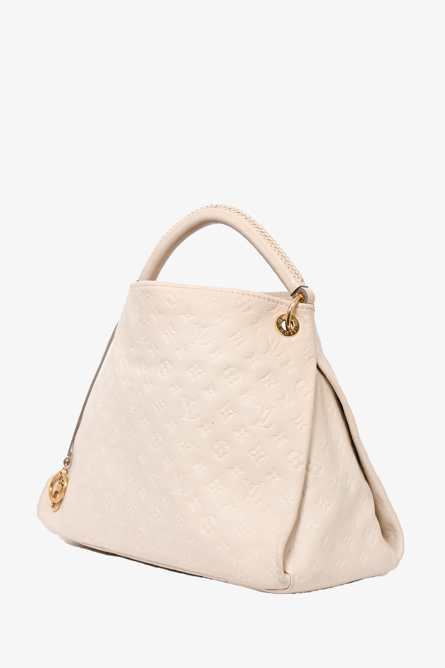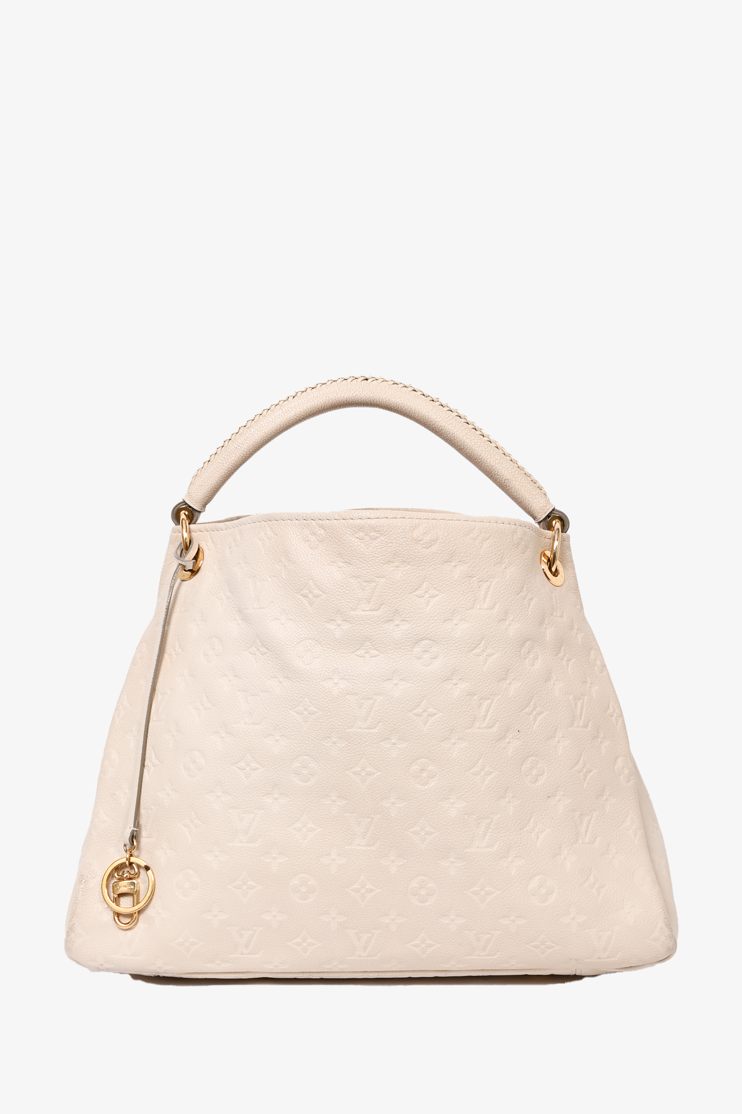 Refresh availabilityLouis Vuitton 2010 Cream Empreinte Leather Artsy MM Hobo Bag. Lined. 6 interior slip pockets. 1 interior zip pocket. Exterior removable keychain. Gold-tone hardware. 4 protective studs on bottom. Tonal stitching.