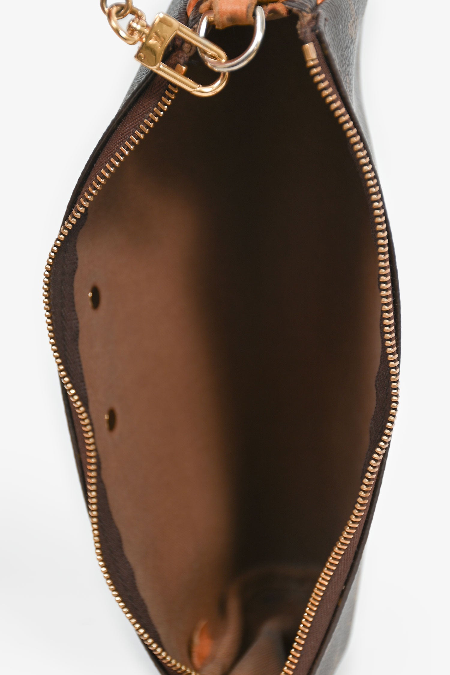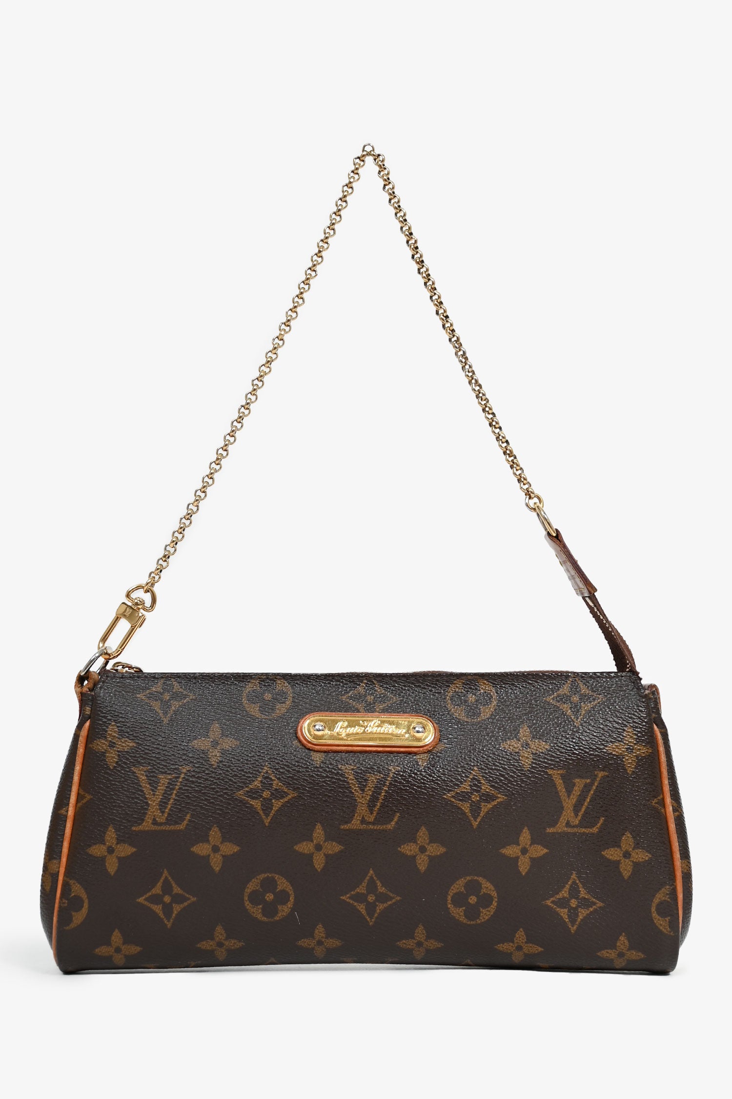 Refresh availabilityLouis Vuitton 2010 Monogram Logo 'Eva' Shoulder Bag. Top zipper closure. Single compartment. Detachable lobster clasp chain on one side. Textile lining. Gold-tone hardware. tonal stitching.