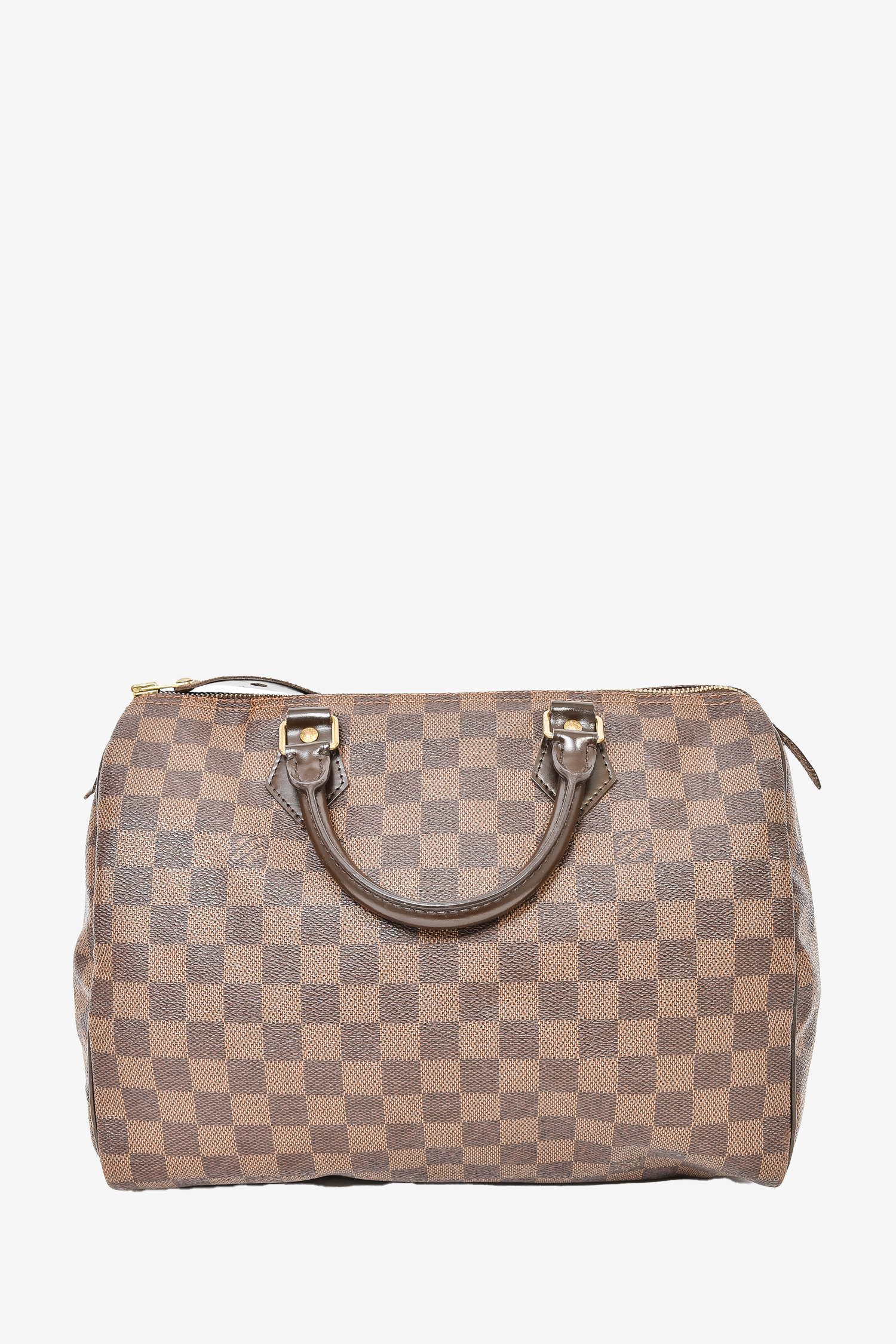 Refresh availabilityLouis Vuitton 2011 Damier Ebene Speedy 30 Bag. 1 interior slip pocket. Zip closure. Gold tone hardware. Contrast stitching.