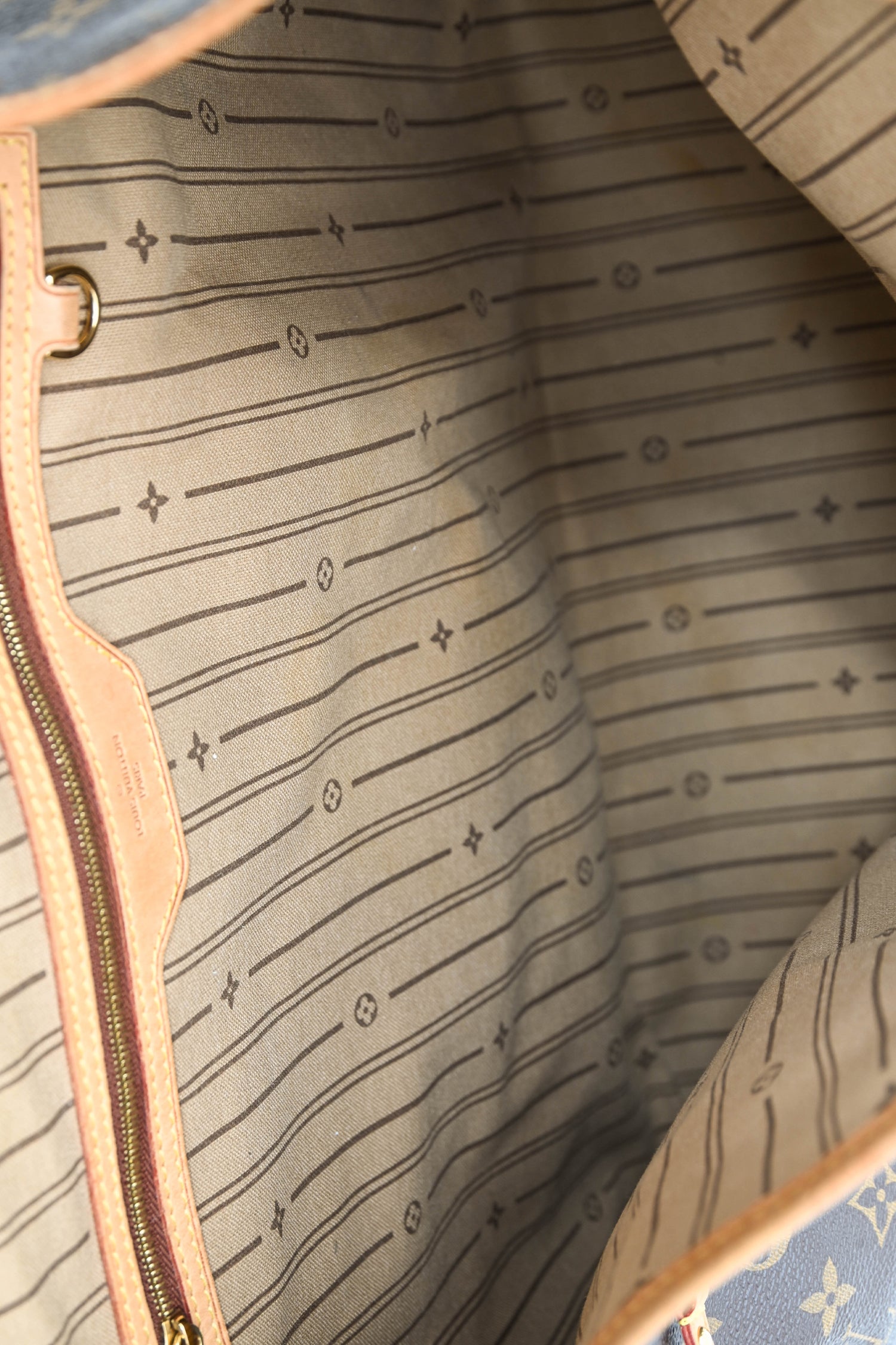 Condition: This item is in good pre-loved condition with patina/wear on the light brown trims. Worn corners. Minor stains on the lining.