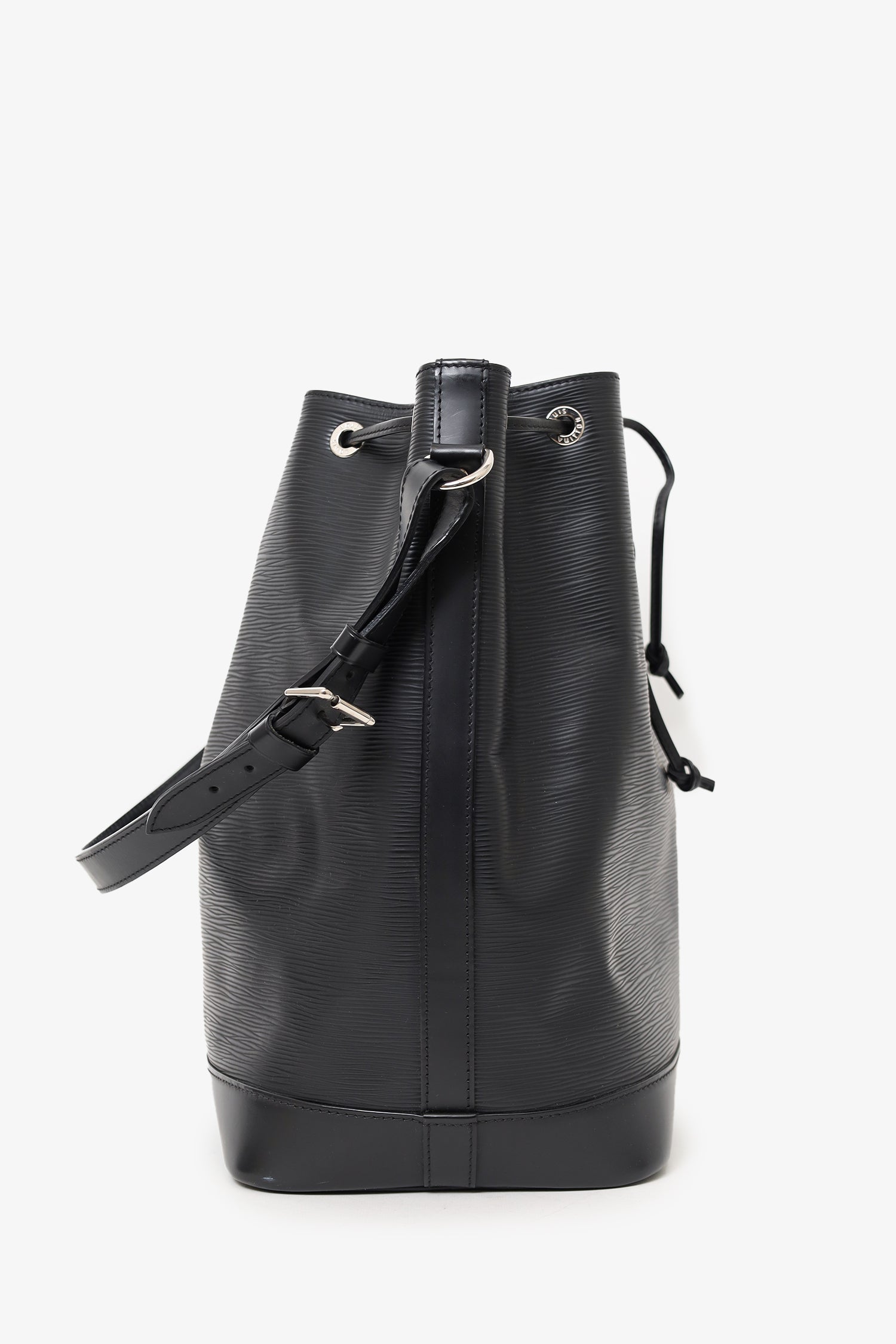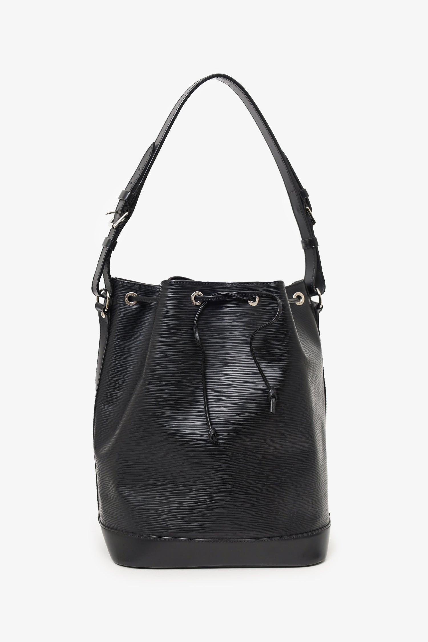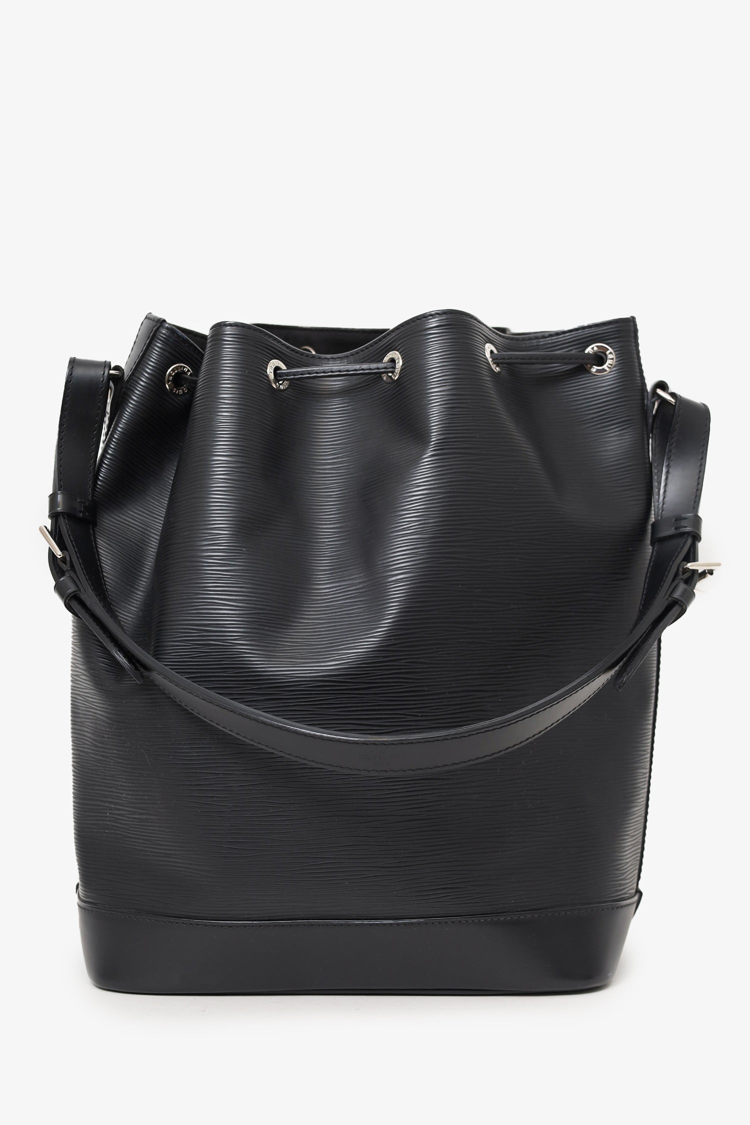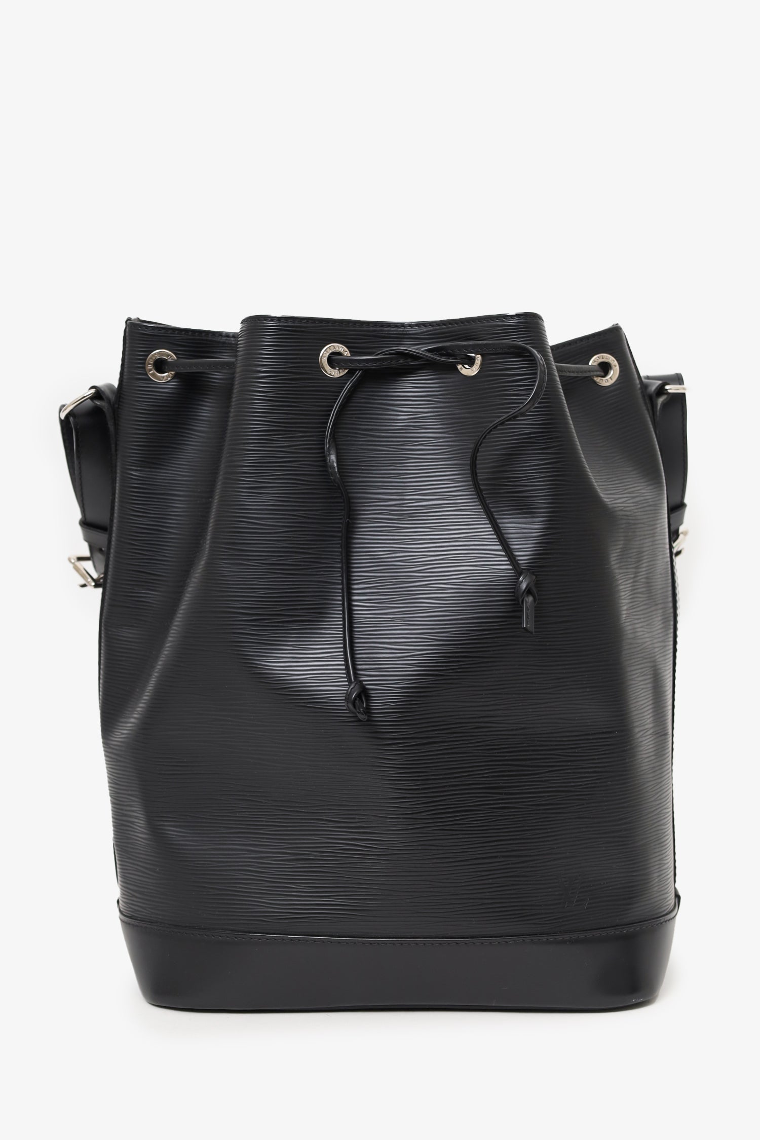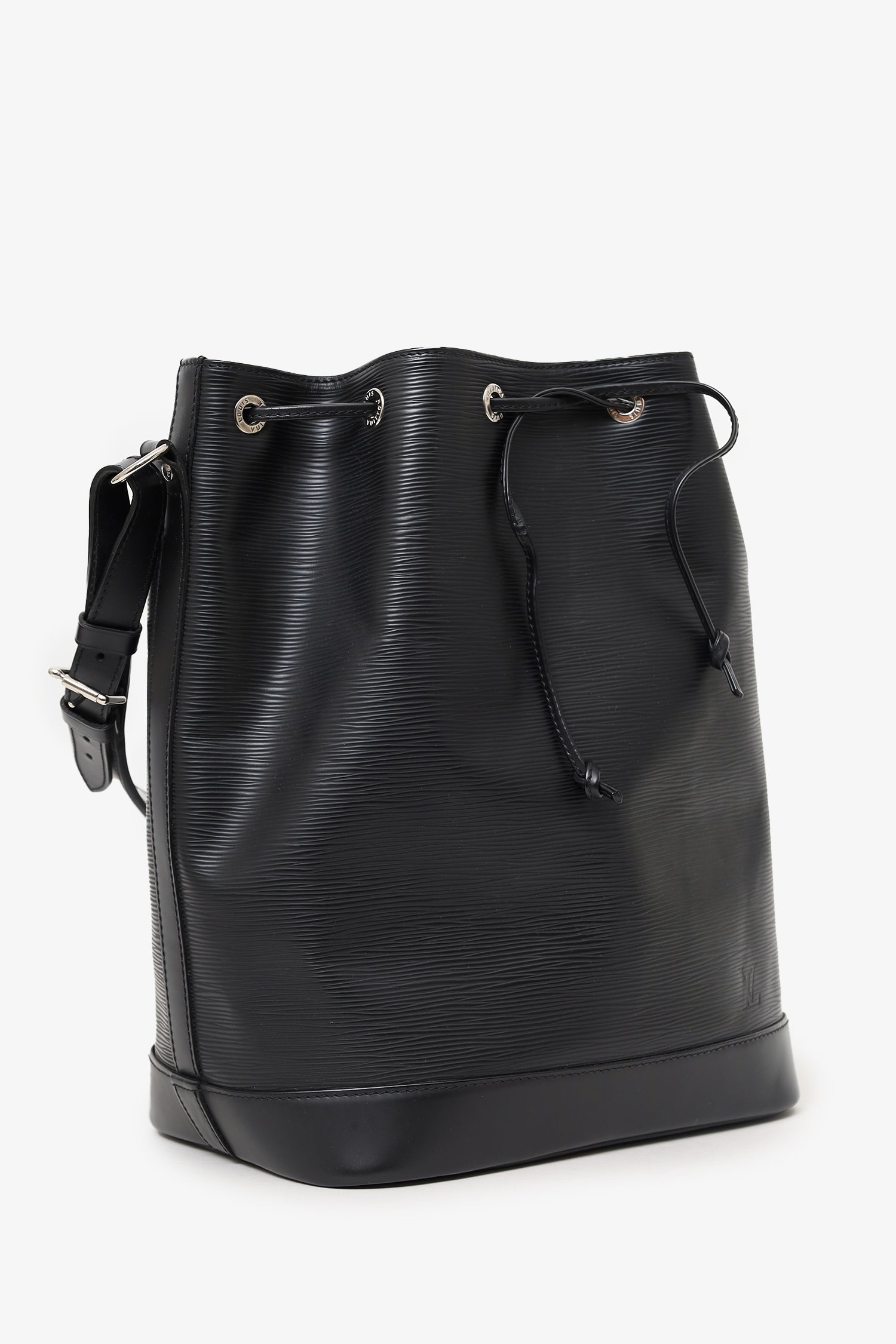 Refresh availabilityLouis Vuitton 2012 Black Epi Leather Noe Bag. Top adjustable handle. Drawstring tie closure. Interior wall pocket with zip closure. Silver-tone hardware. Tonal stitching
