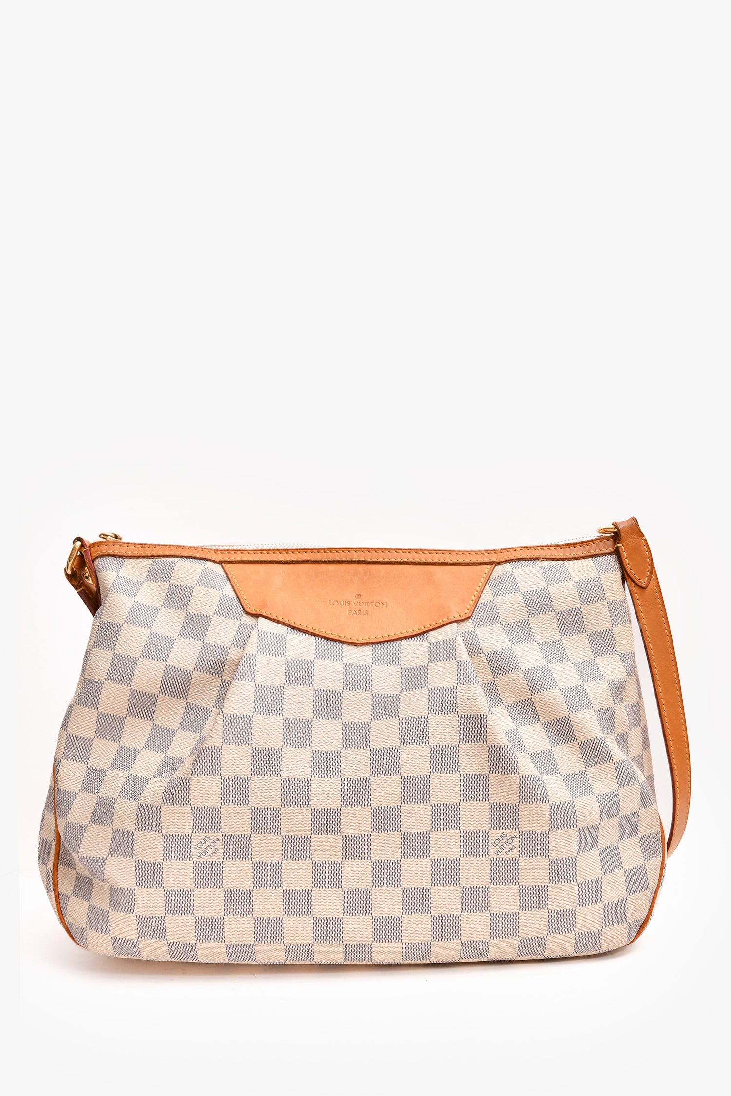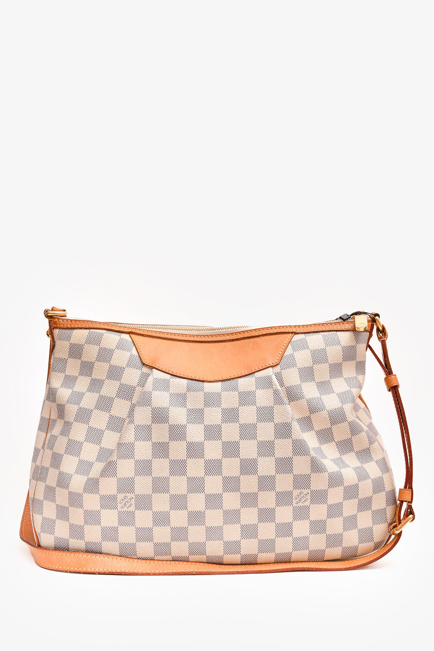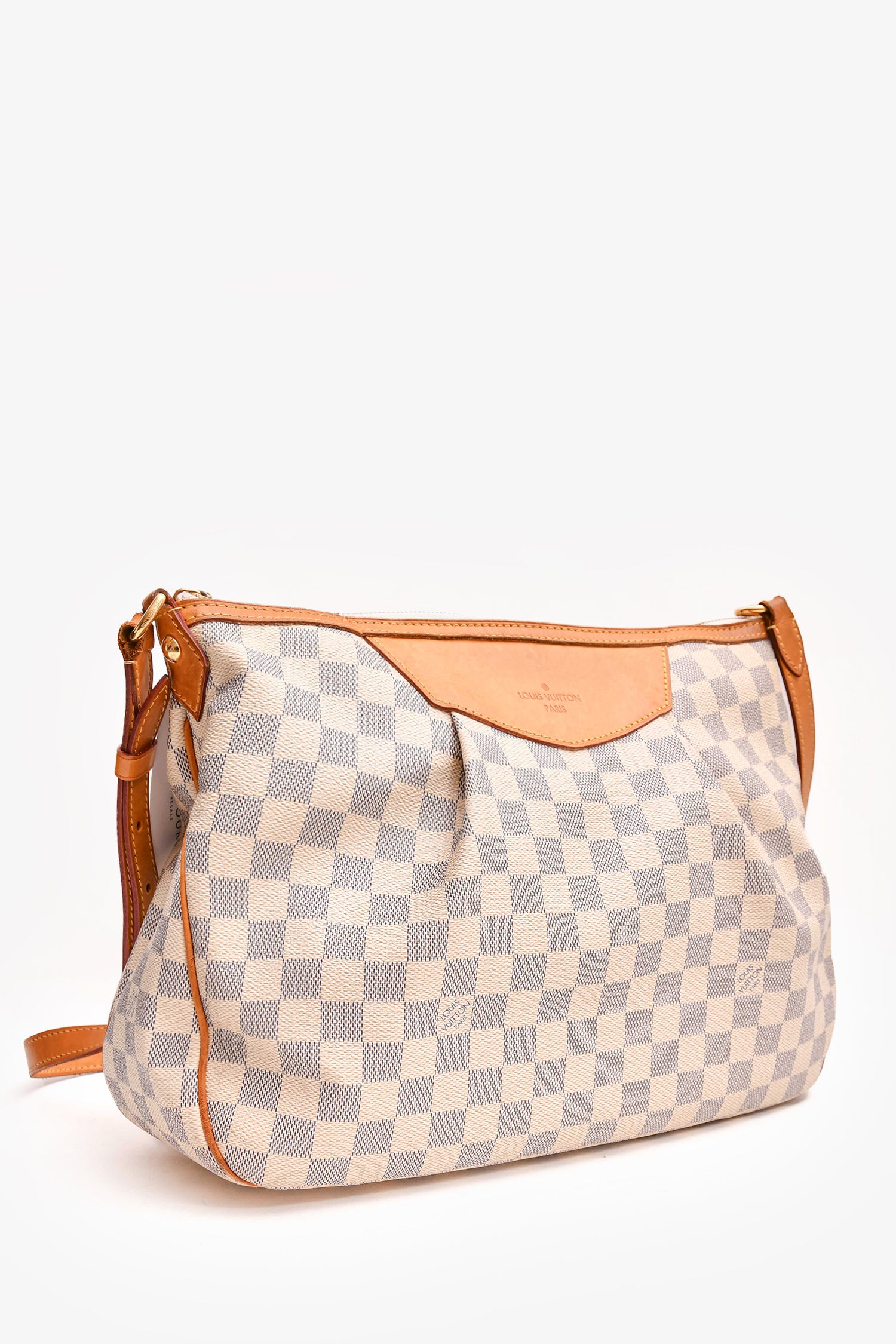 Refresh availabilityLouis Vuitton 2012 Damier Azur Siracusa MM Messenger Crossbody Bag. Top zip closure. Beige textile interior lining. 2 interior wall slip pockets. Adjustable strap. Gold-tone hardware.