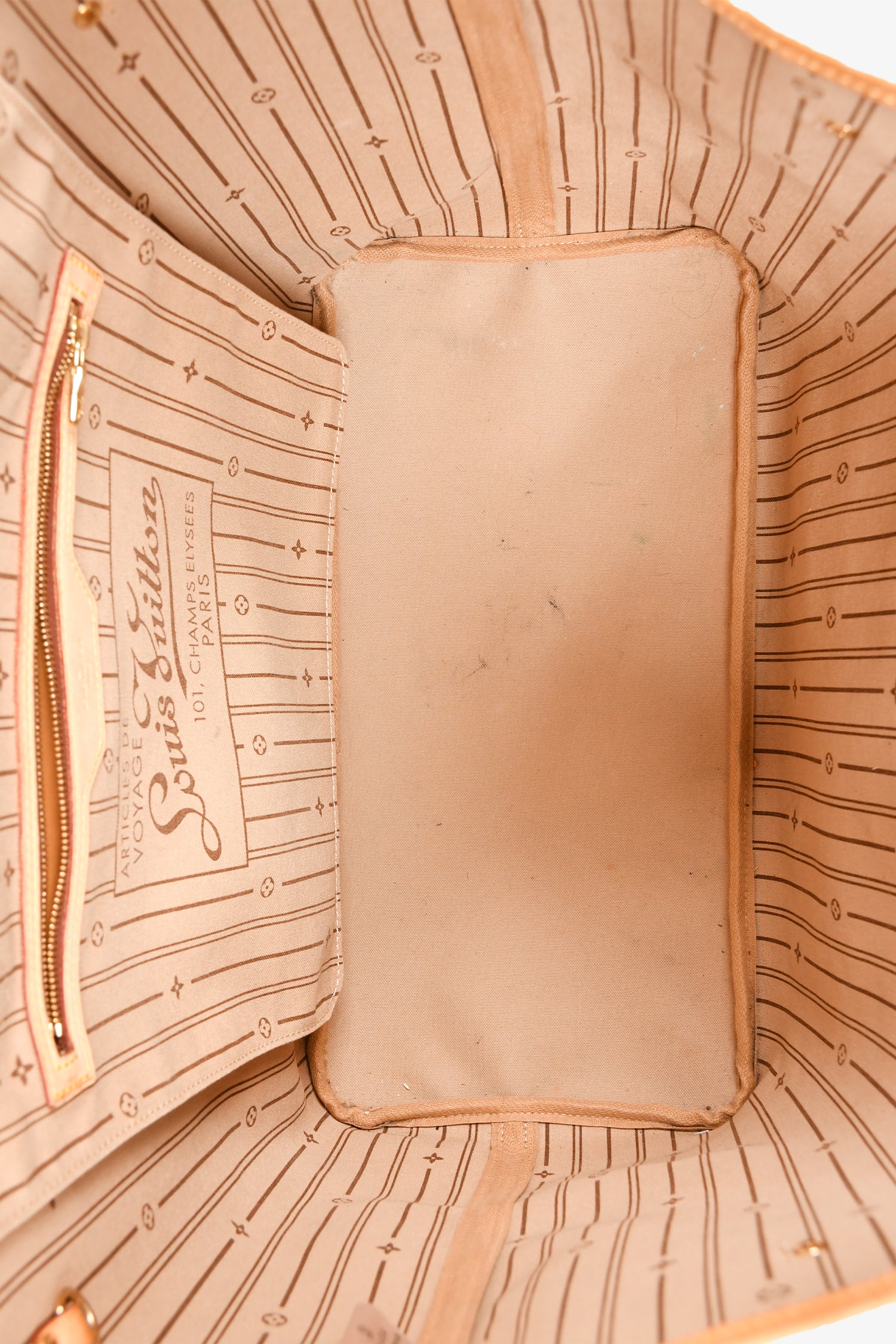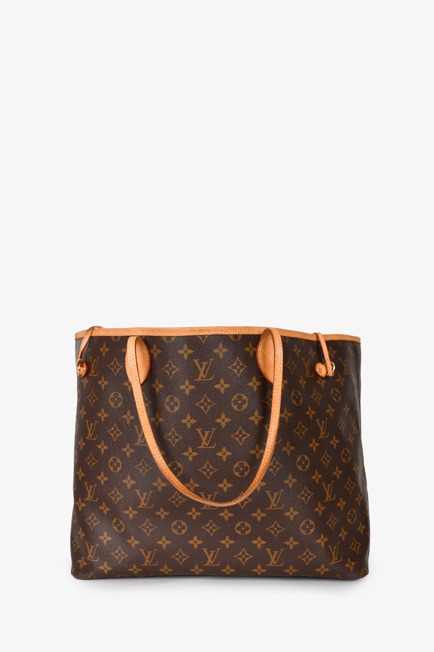 Refresh availabilityLouis Vuitton 2012 Monogram Neverfull GM With 'S.D' stamp. Top interior latch closure. Beige logo'd textile interior lining. Single interior wall zip pocket. Gold-tone hardware. Tonal stitching.