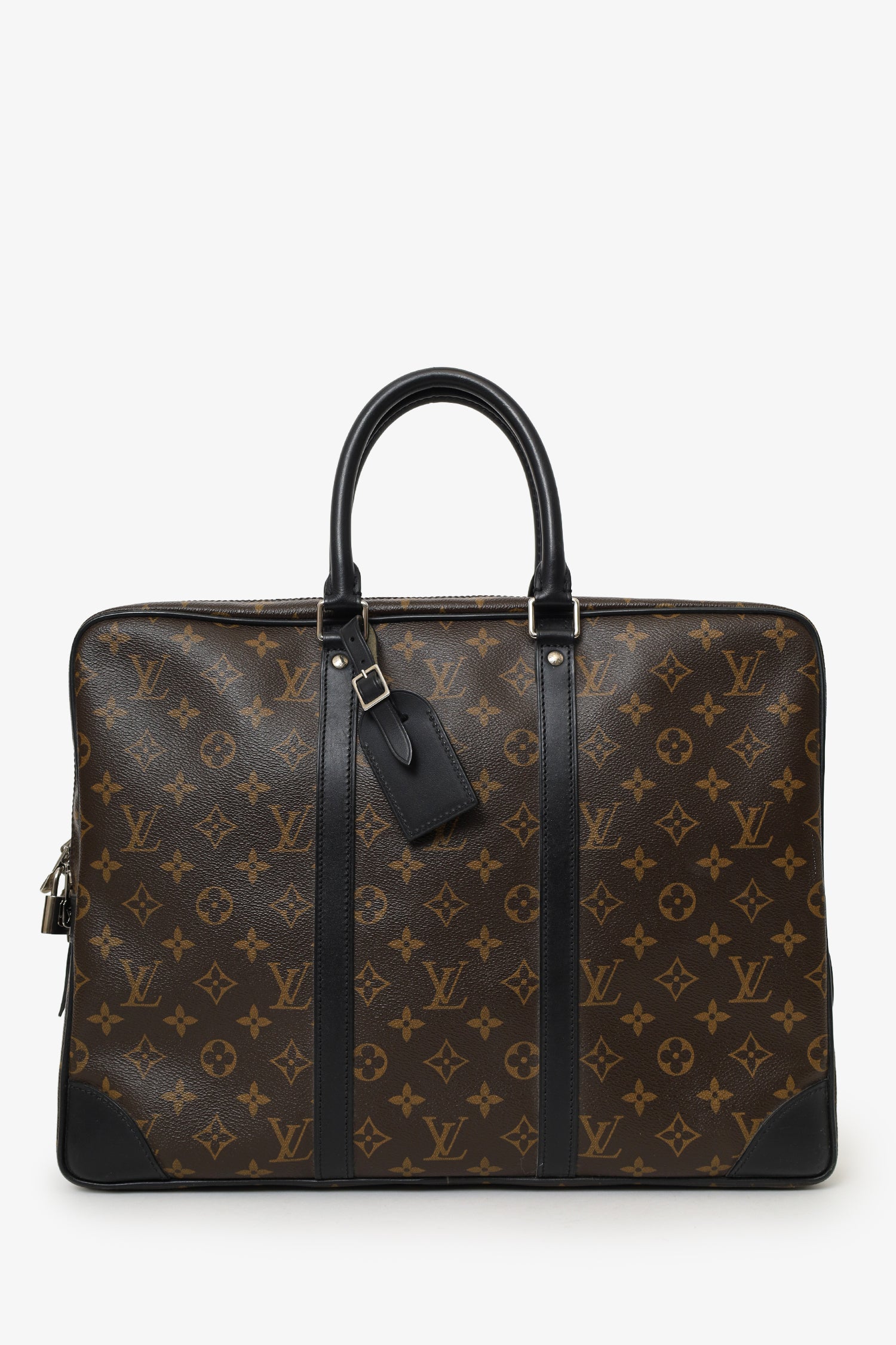 Refresh availabilityLouis Vuitton 2012 Monogram Porte-Documents Voyage Briefcase. 2-way top zip-up. Twin top handles. Fabric-lined interior with 9 pockets; 6 slip, 2 pen compartments and 1 zip. Silver-tone hardware. Tonal stitching.