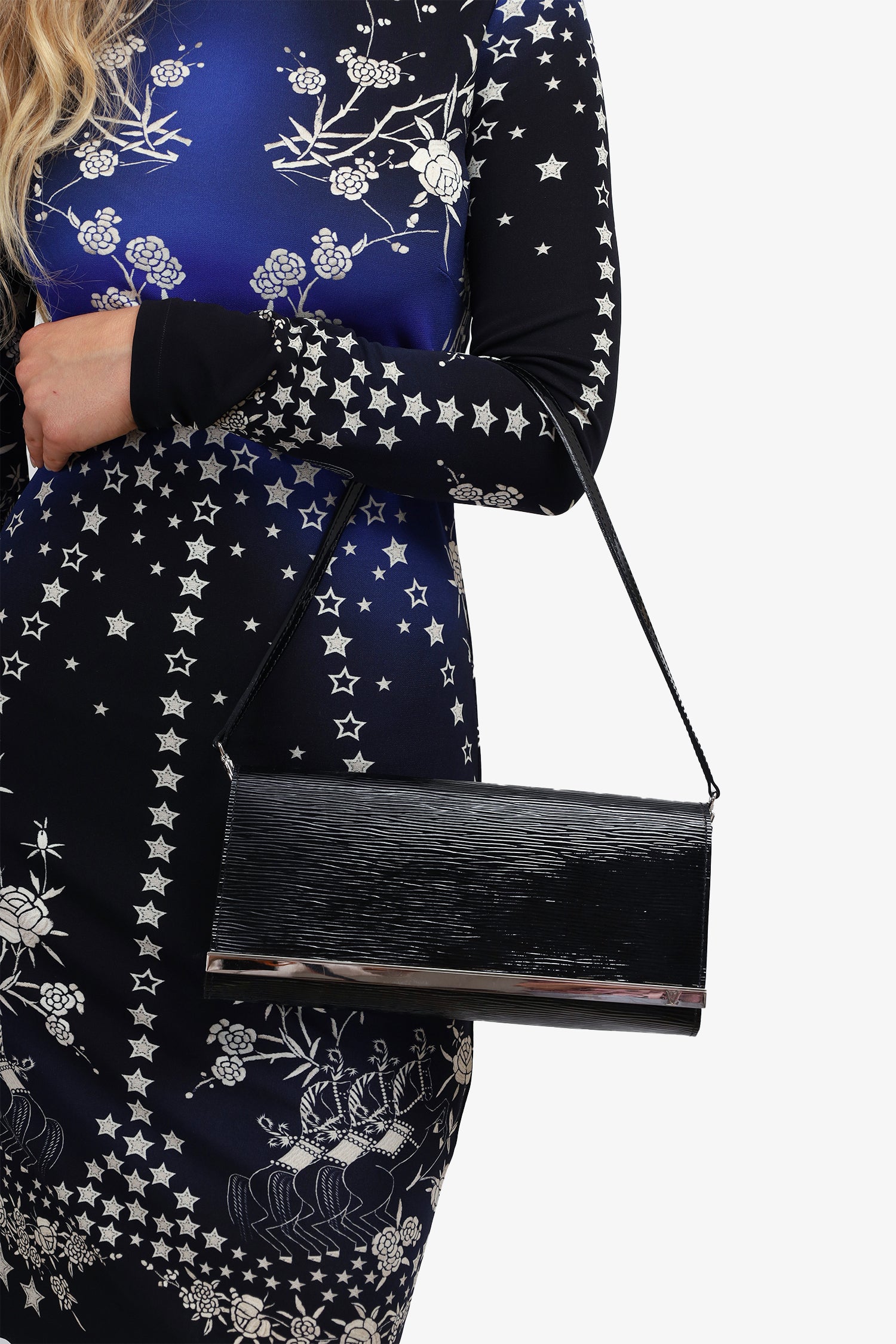 Refresh availabilityLouis Vuitton 2013 Black Electric Epi Sevigne Clutch. Fold over flap with magnetic closure. 1 interior pocket with zip closure. 6 card slip pockets. 1 rear slip pocket. Removable shoulder strap. Silver tone hardware. Tonal stitching. Includes dust bag.