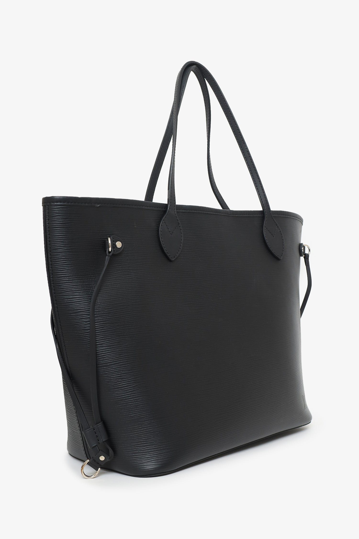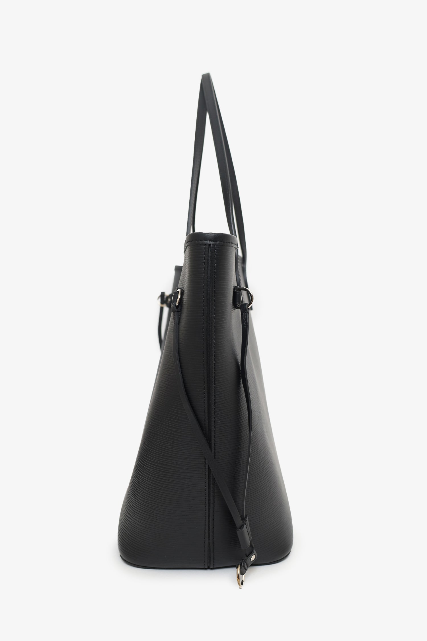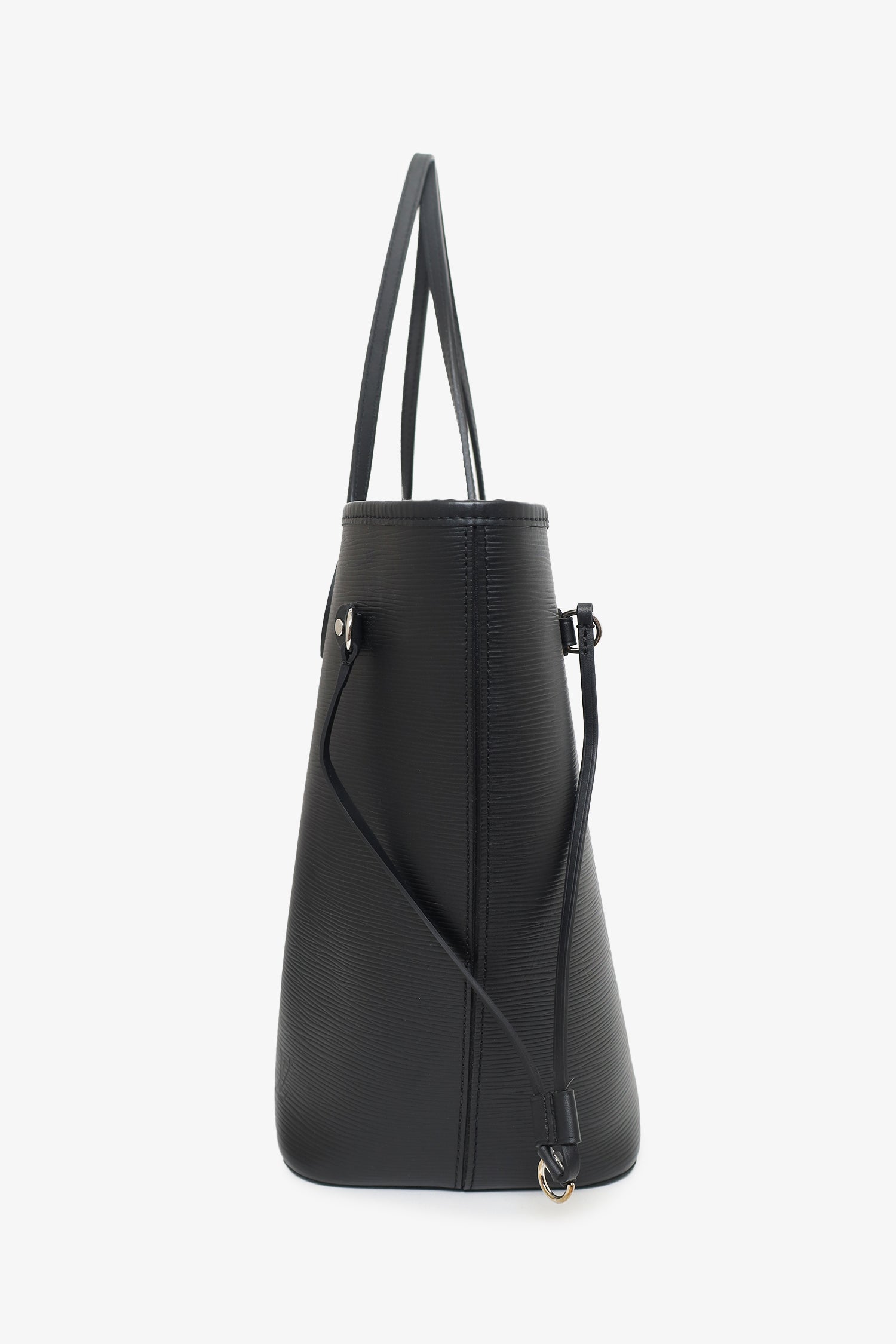 Refresh availabilityLouis Vuitton 2013 Black Epi Leather Neverfull MM Tote. Open top with hook and clasp closure. Open interior: detachable interior pouch with clasp closure; top zipper closure and single interior wall slip pocket. Suede-lined interior. Silver-tone hardware. Tonal stitching.