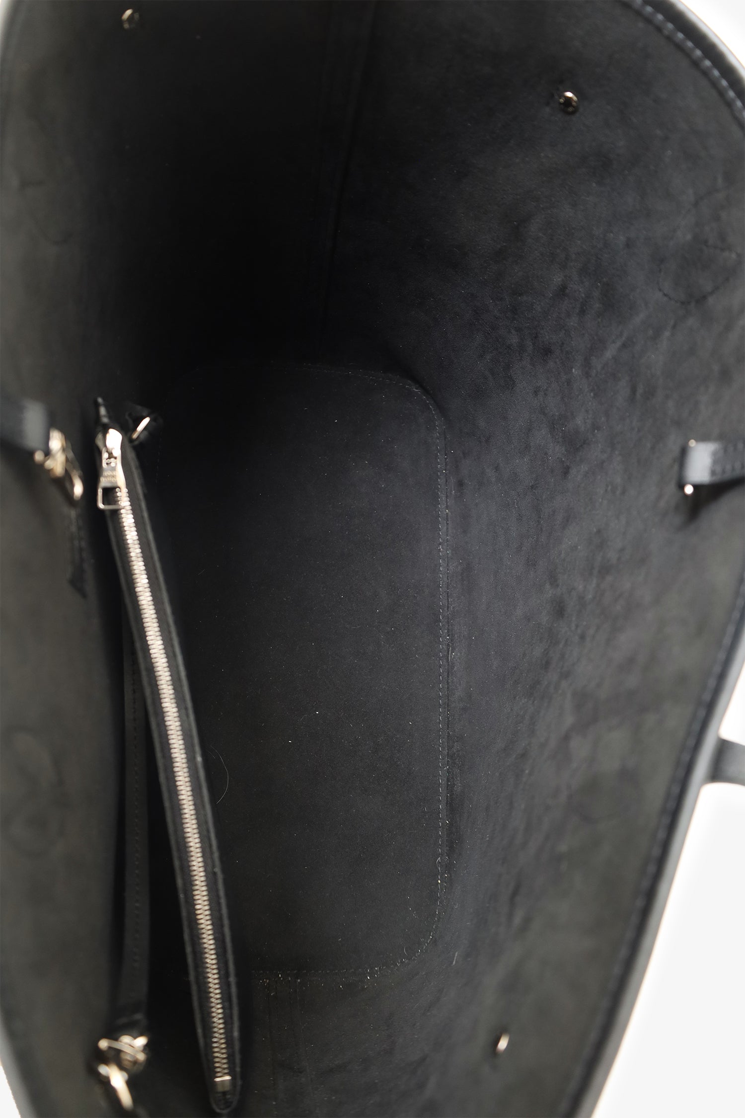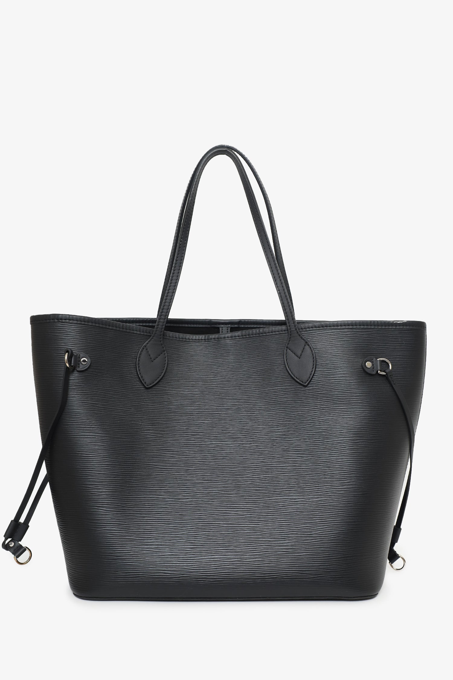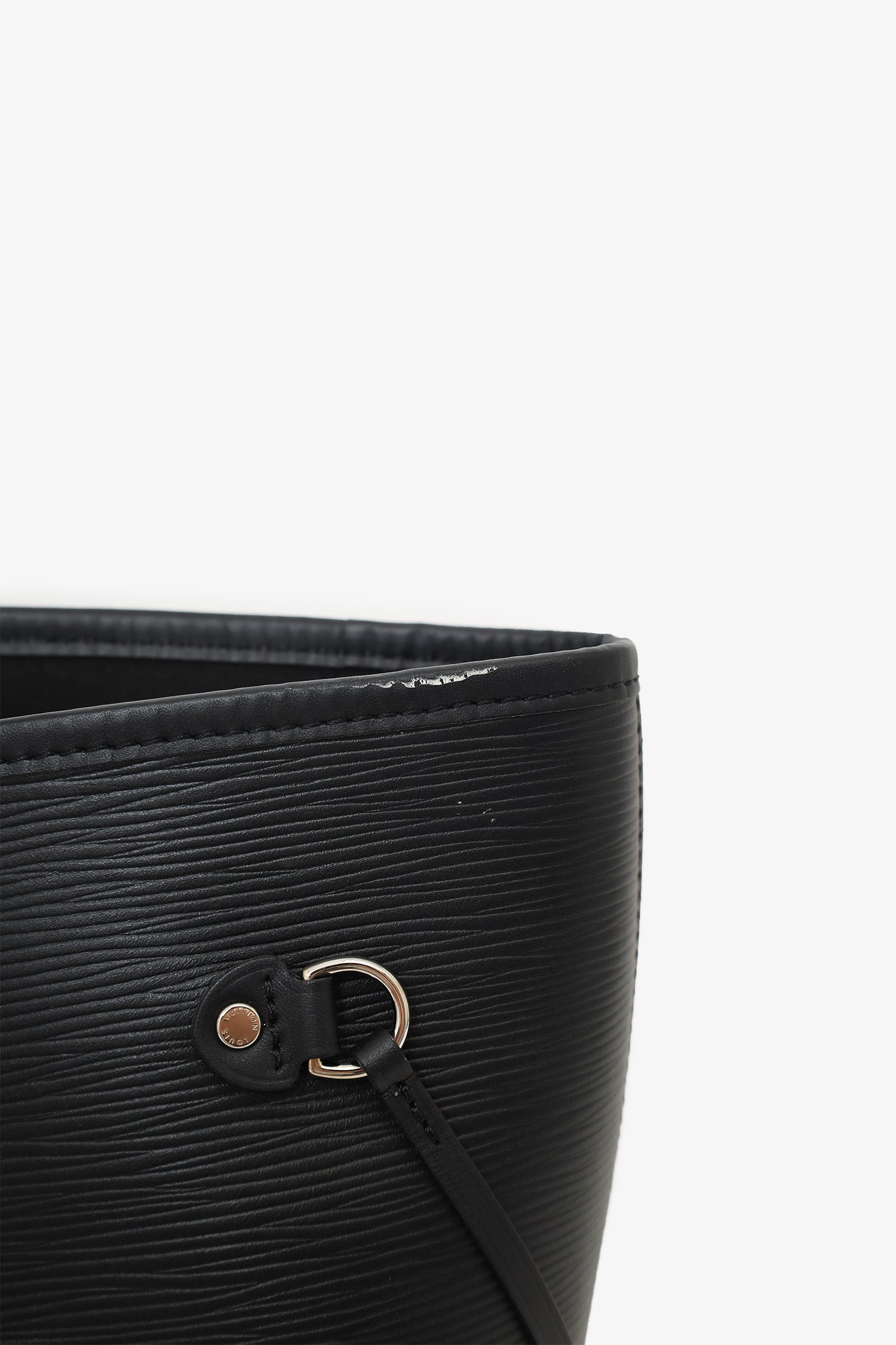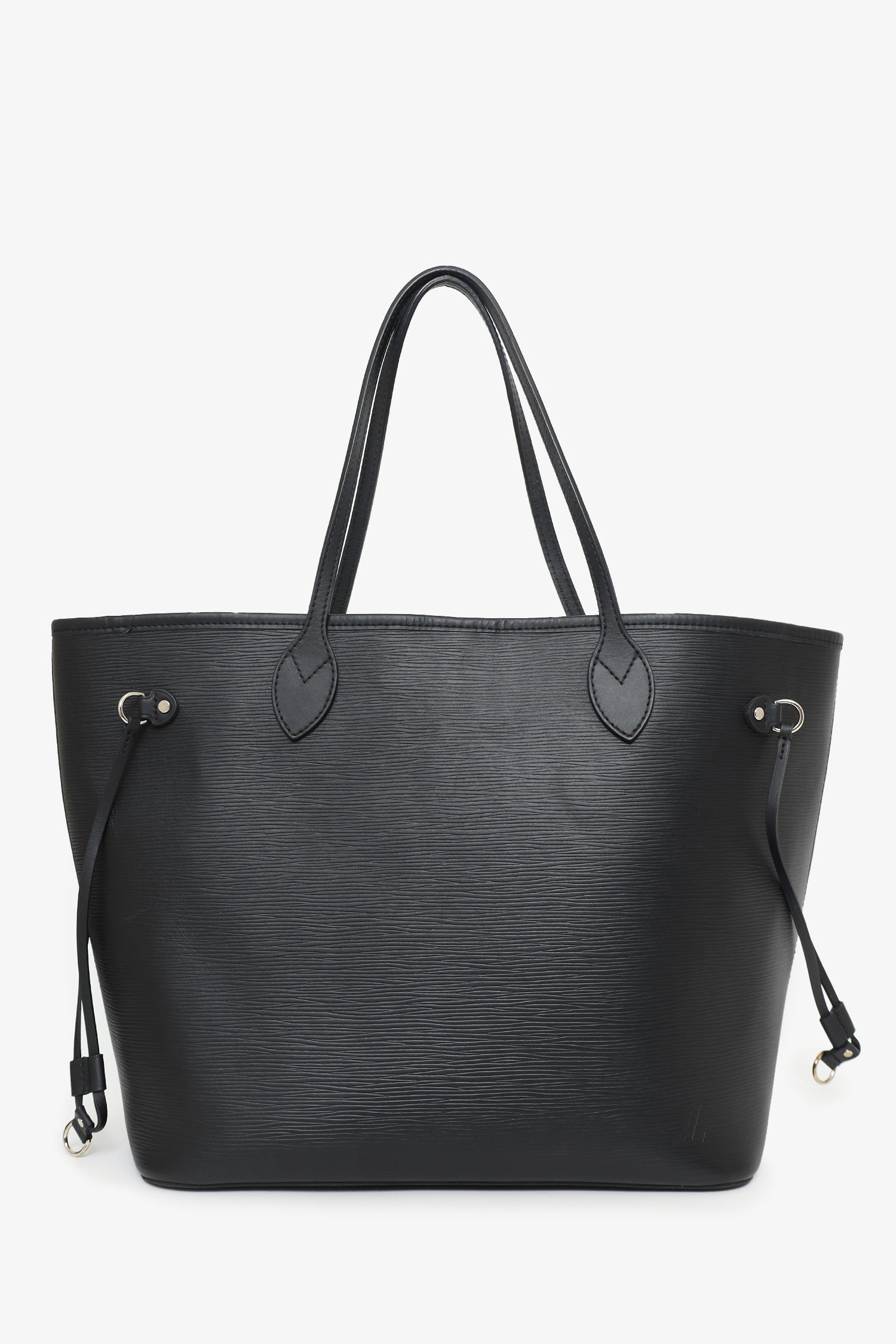 Refresh availabilityLouis Vuitton 2013 Black Epi Leather Neverfull MM Tote. Open top with hook and clasp closure. Open interior: detachable interior pouch with clasp closure; top zipper closure and single interior wall slip pocket. Suede-lined interior. Silver-tone hardware. Tonal stitching.