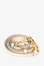 Condition: This item is in good refurbished condition with discoloration and wear on the hardware. Repainted outer corners. Scratches on the hardware. Marks and stains throughout the interior canvas. Grey trim has been reglazed on handle and detachable strap.