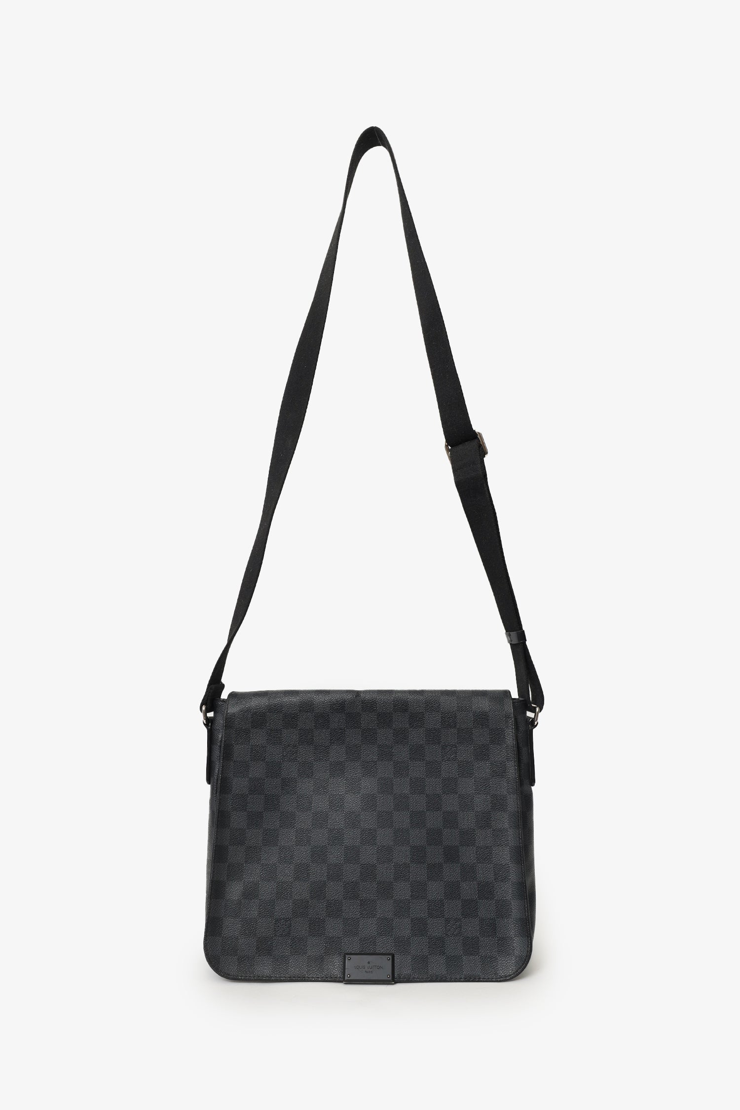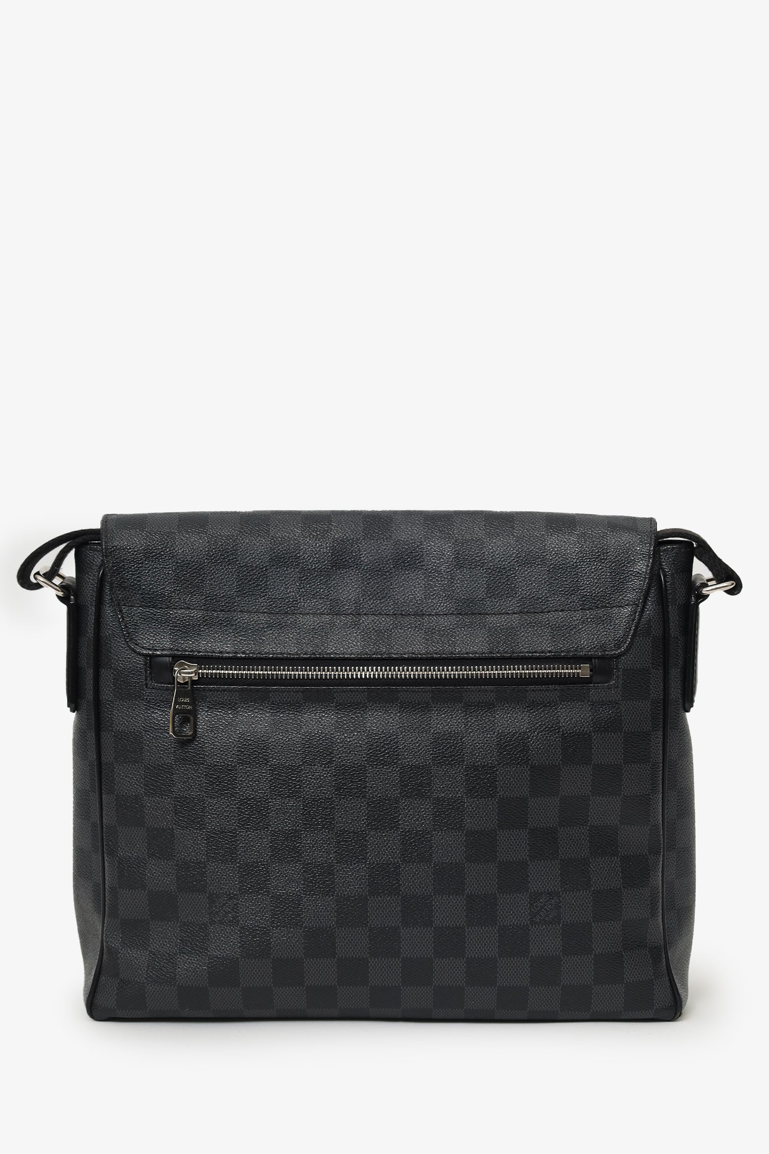 Refresh availabilityLouis Vuitton 2013 Damier Graphite Daniel MM Messenger Bag. Front fold-over flap. Adjustable crossbody strap. Single rear exterior zip pocket. Lined interior. 3 interior compartments. 4 interior slip pockets to rear wall. 2 interior pencil slots. Silver-tone hardware. Tonal stitching.