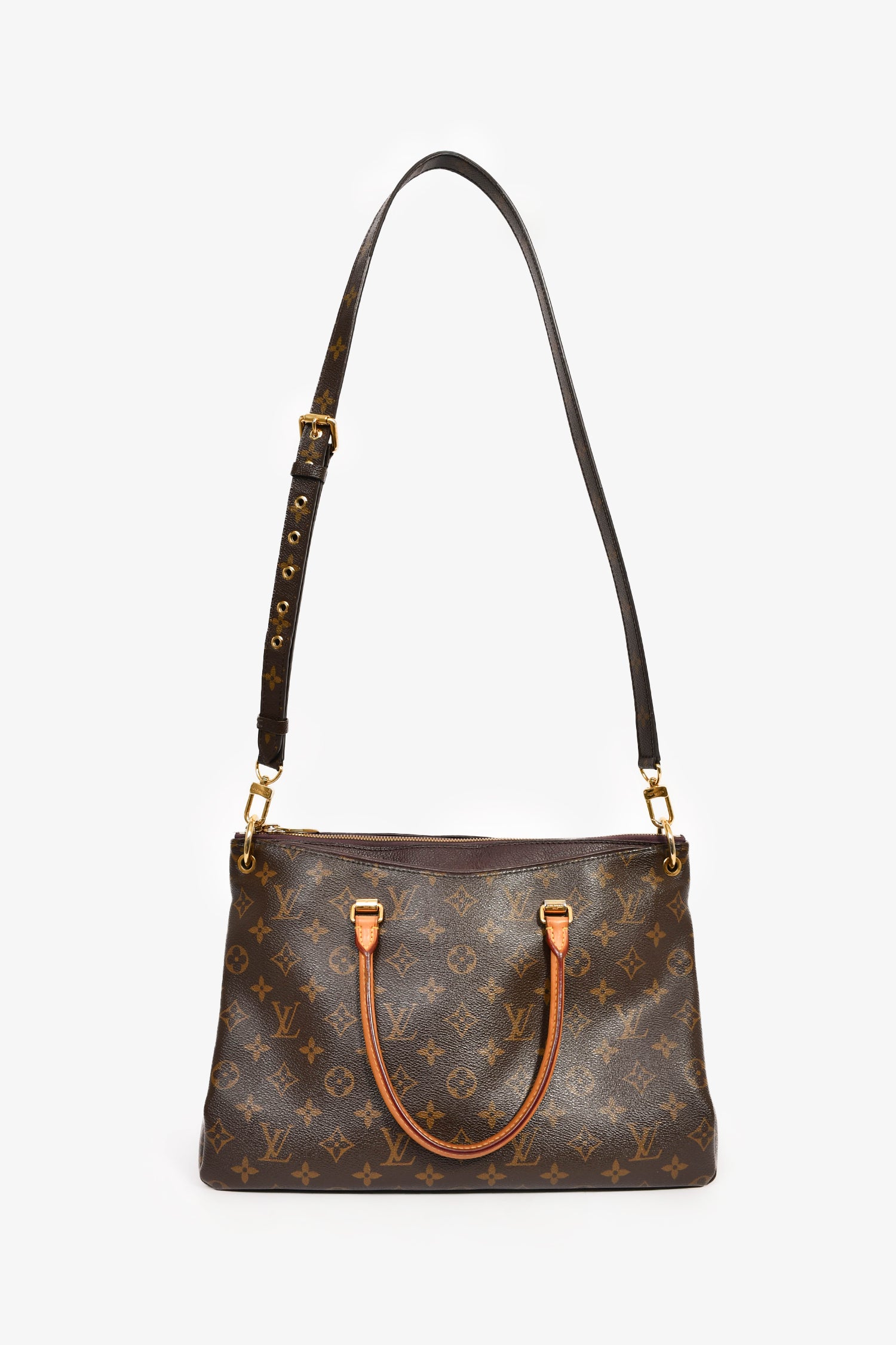 Refresh availabilityLouis Vuitton 2013 Monogram 'Pallas' MM Zip Tote Bag with Strap. Dual handles. Top two-way zipper closure. Front and rear exterior magnetic pocket. Detachable and adjustable crossbody strap. Protective base studs. Single interior compartment with 3 interior slip pockets. Suede-lined interior. Gold-tone hardware. Tonal stitching.