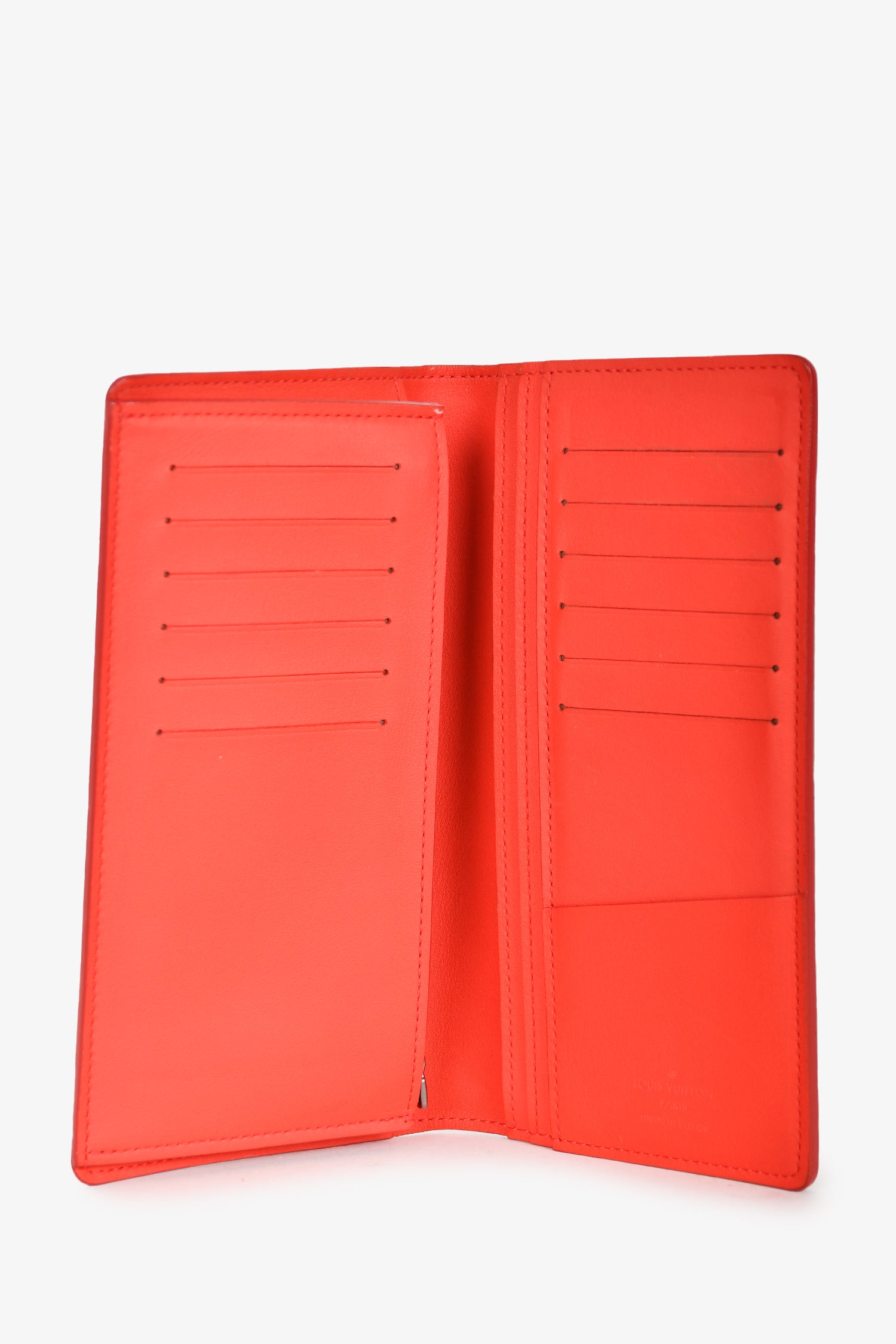 Refresh availabilityLouis Vuitton 2013 Red Leather Brazza Damier Pattern Long Wallet. 13 card slots. 4 billfold compartments. 1 zippered compartment. Silver-tone hardware. Bi-fold.