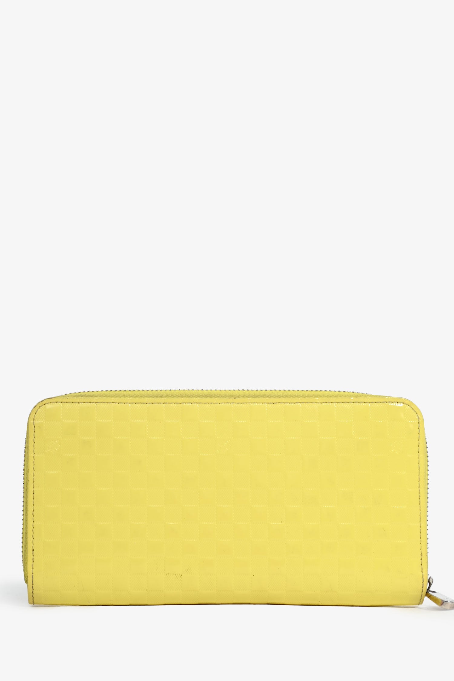 Refresh availabilityLouis Vuitton 2013 Yellow Damier Leather 'Facette' Long Zippy Wallet. Silver-tone hardware. 8 card slots. 6 bill compartments. 1 coin pouch. Tonal stitching.