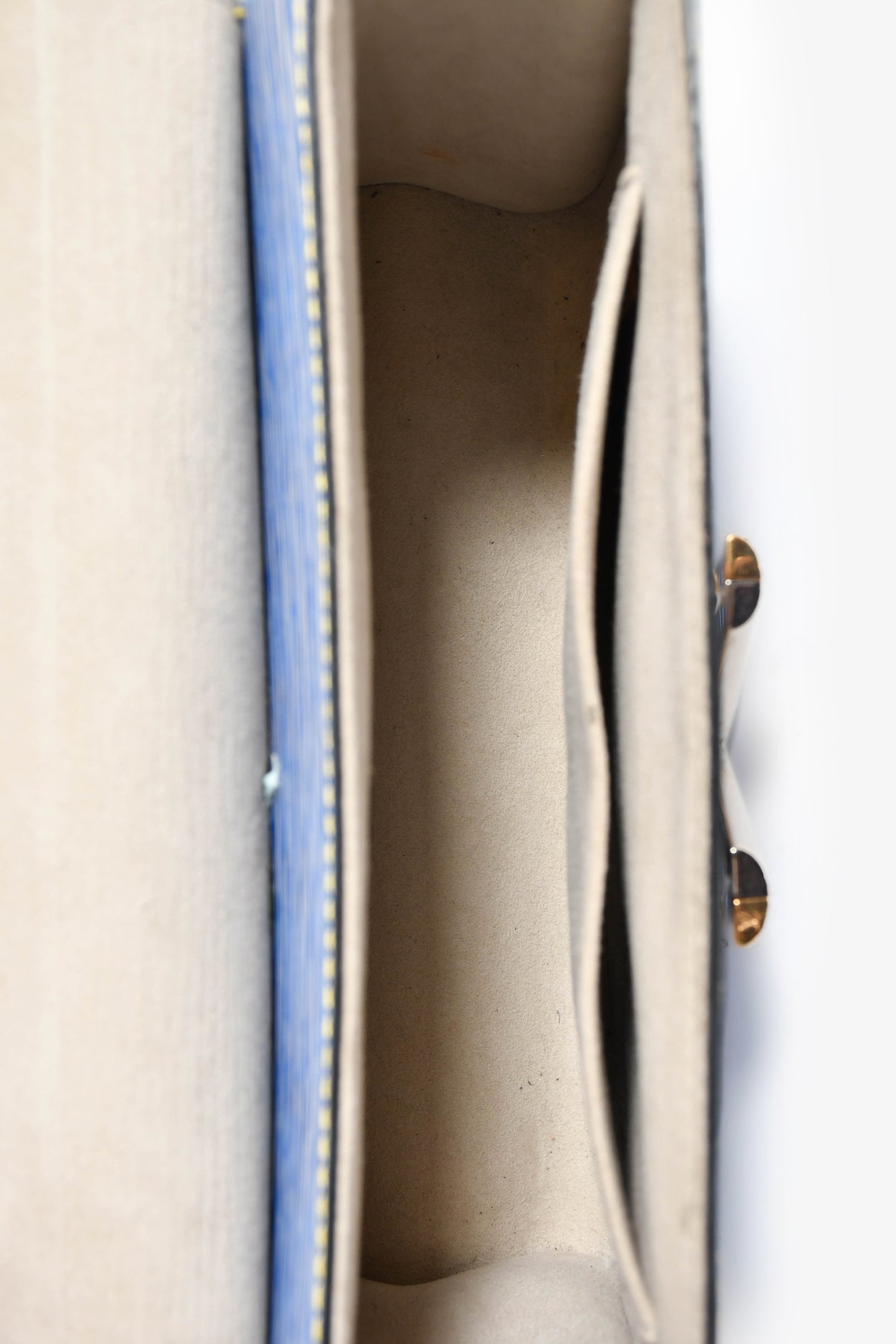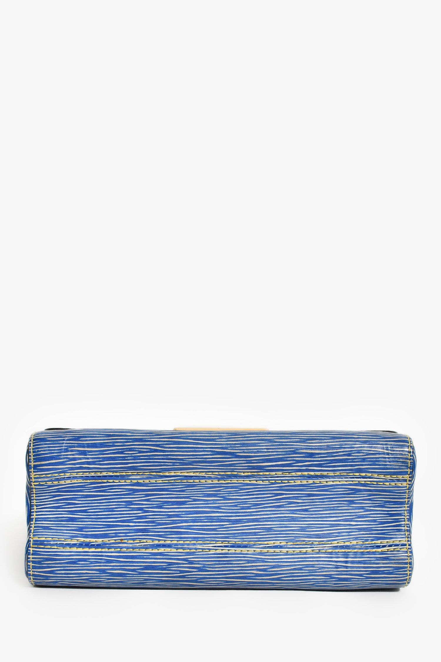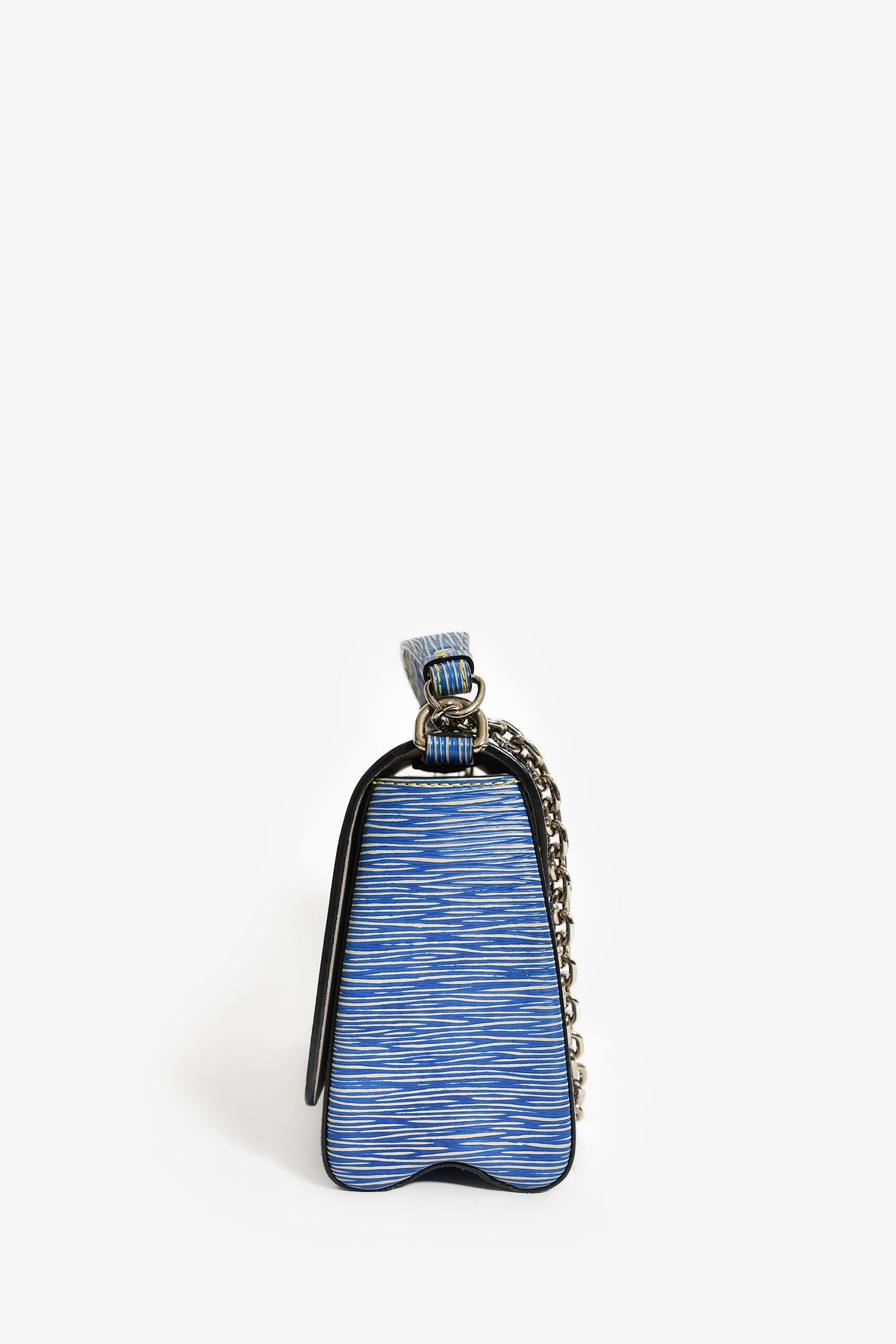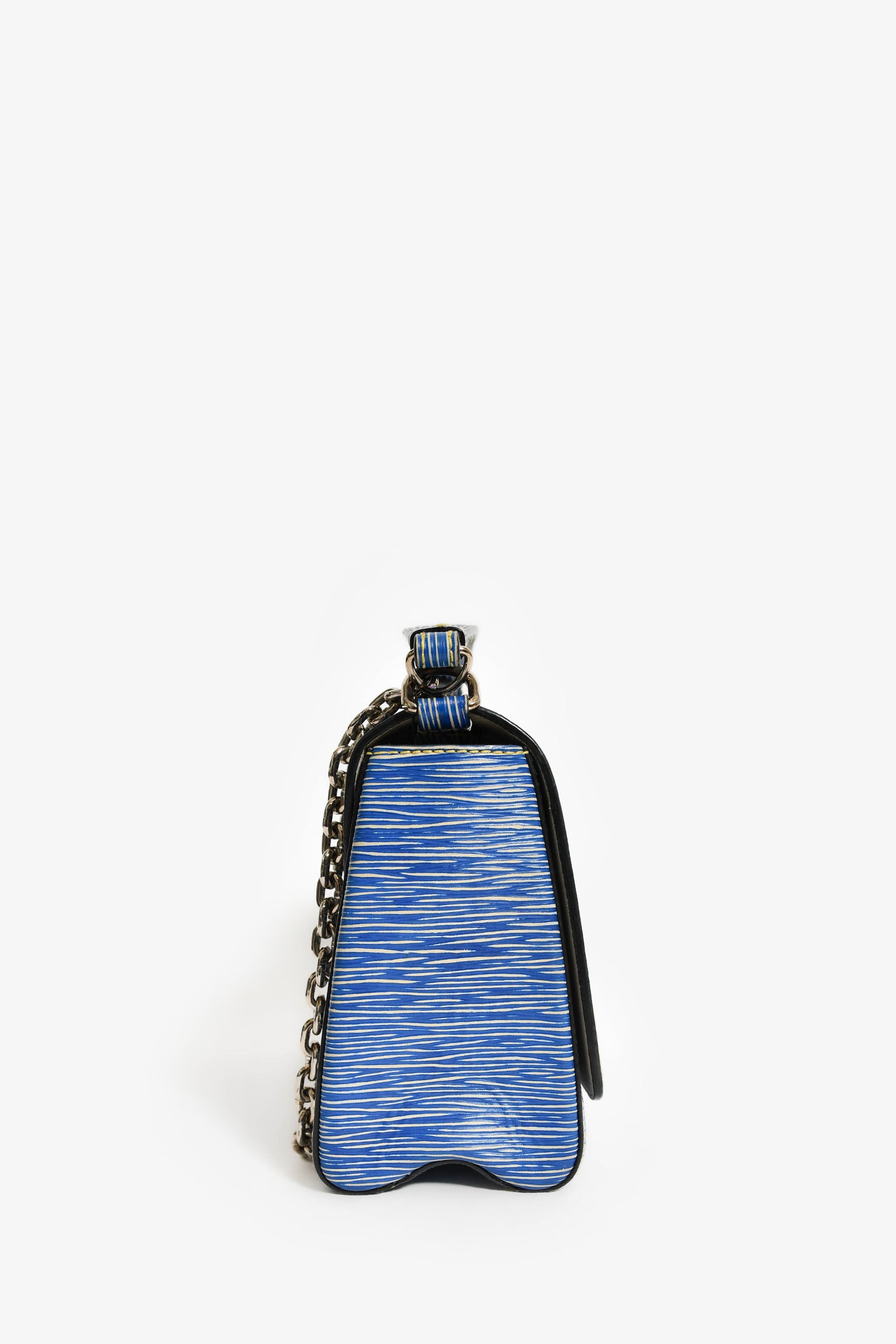 Refresh availabilityLouis Vuitton 2015 Blue Denim Epi Leather 'Twist' MM Shoulder Bag. Front fold-over flap with a twist-lock closure. Chain-link shoulder strap. Lined interior with 2 slip compartments. Gold and silver-tone hardware. Contrast stitching.