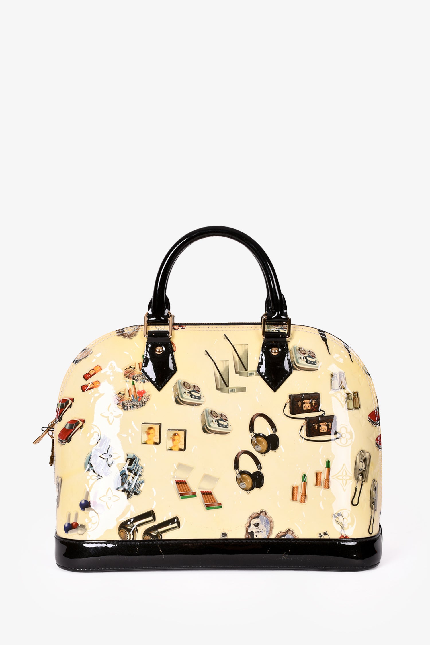 Louis Vuitton 2015 Cream Patent Leather Vernis Stickers Alma PM Bag