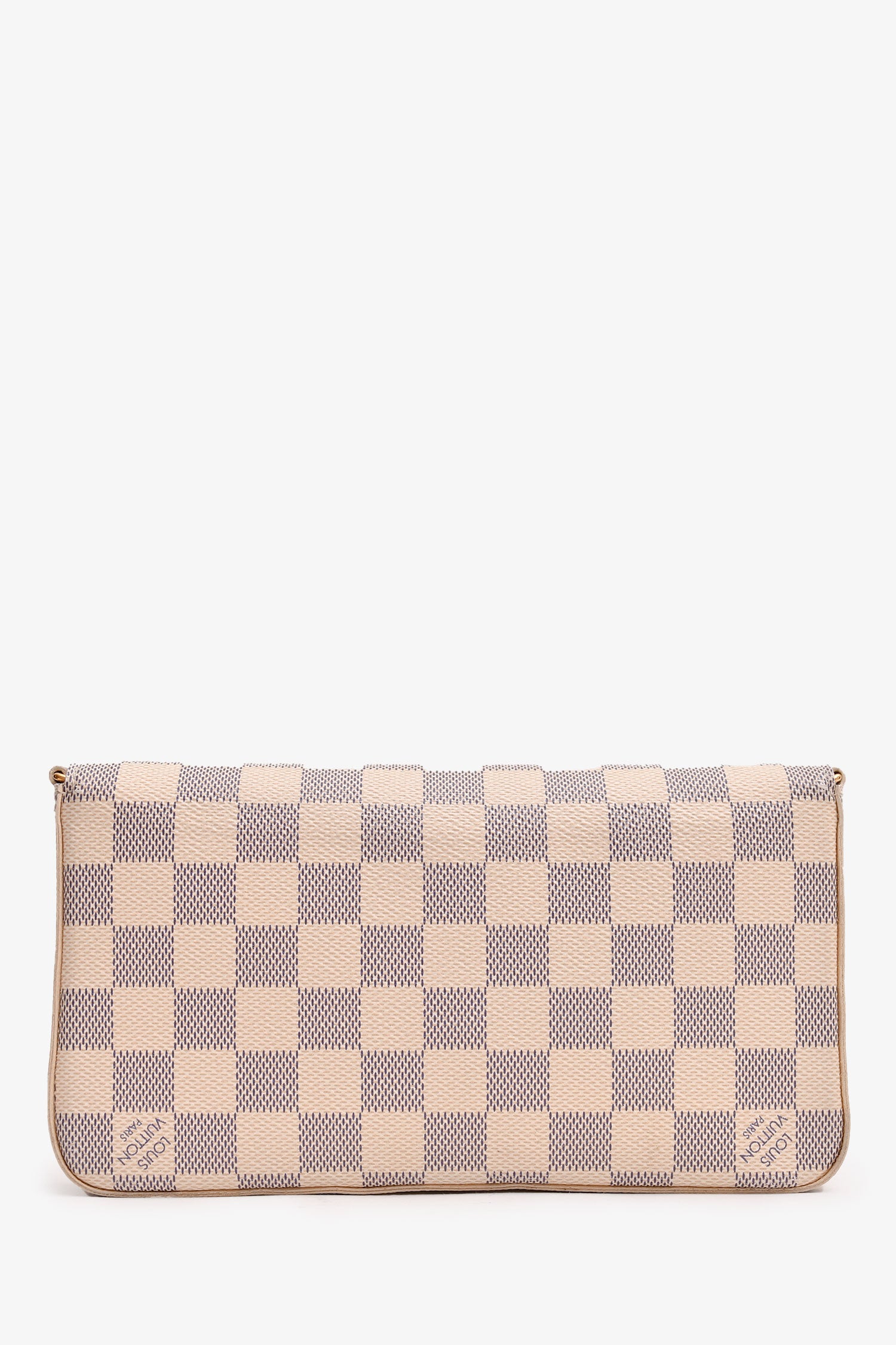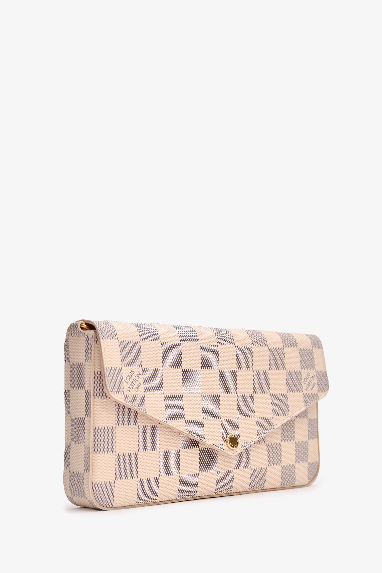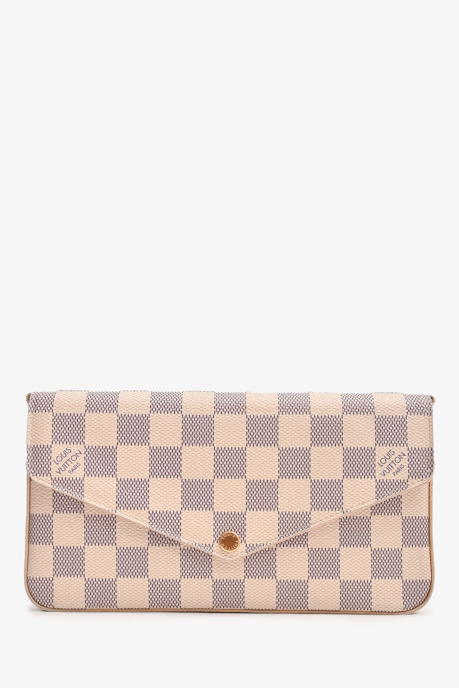 Refresh availabilityLouis Vuitton 2016 Damier Azure Felicie Pochette On Chain. Gold-tone hardware. Fold-over flap with snap closure. Single interior compartment with slip pocket. Removable zipped pouch and card holder. 8 card holder slots. 1 bill compartment. Chain-link crossbody strap.
