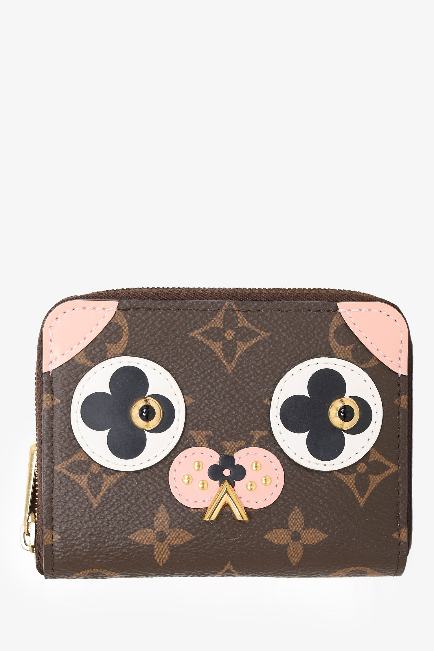 Refresh availabilityLouis Vuitton 2017 Brown/Pink Monogram Valentine Dog Zippy Coin Purse. Top zip closure. Pink leather interior. 2 interior sections separated by single slip pocket. 3 card wall slip pockets on both sides. Gold-tone hardware. Tonal stitching.