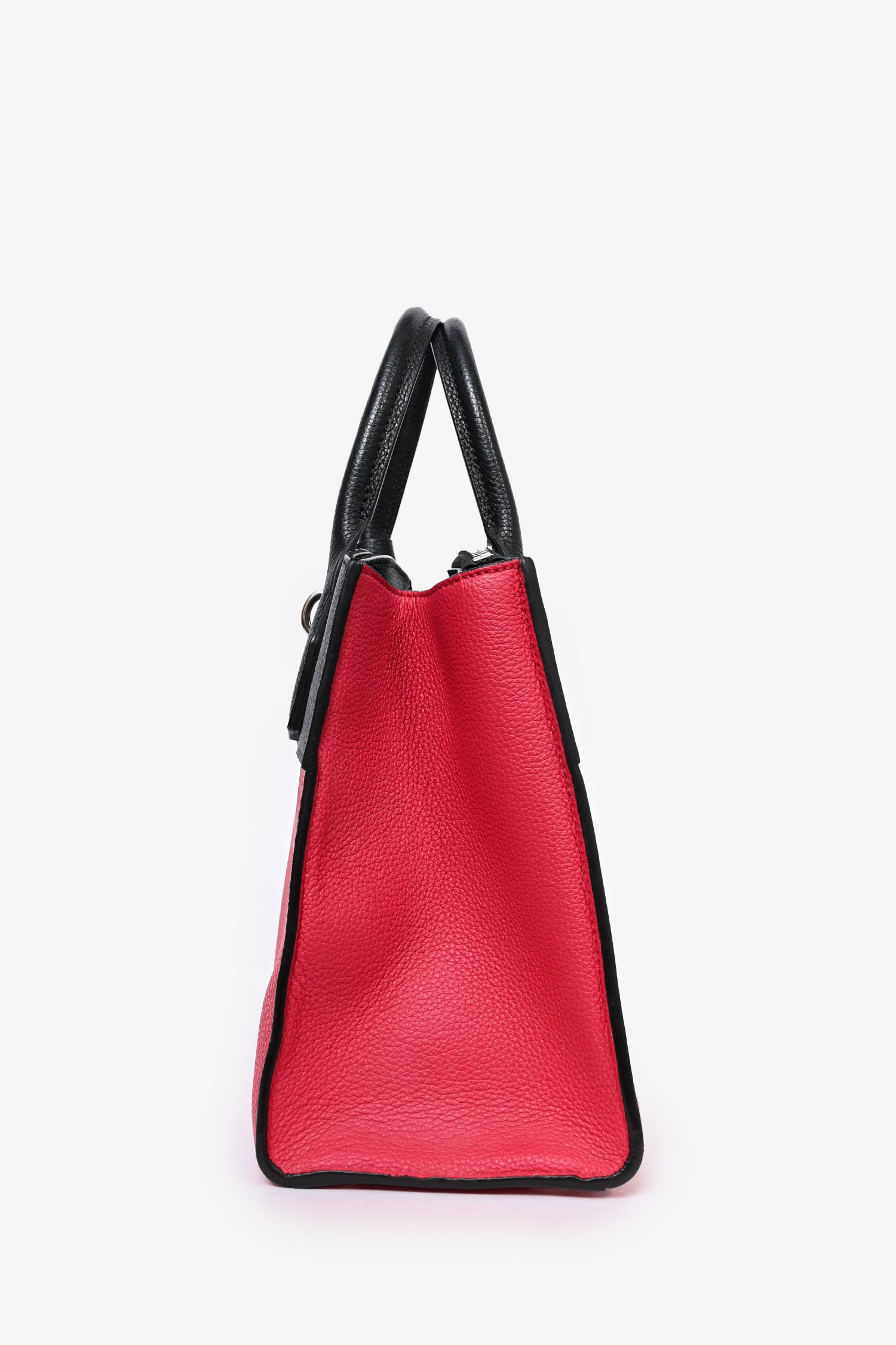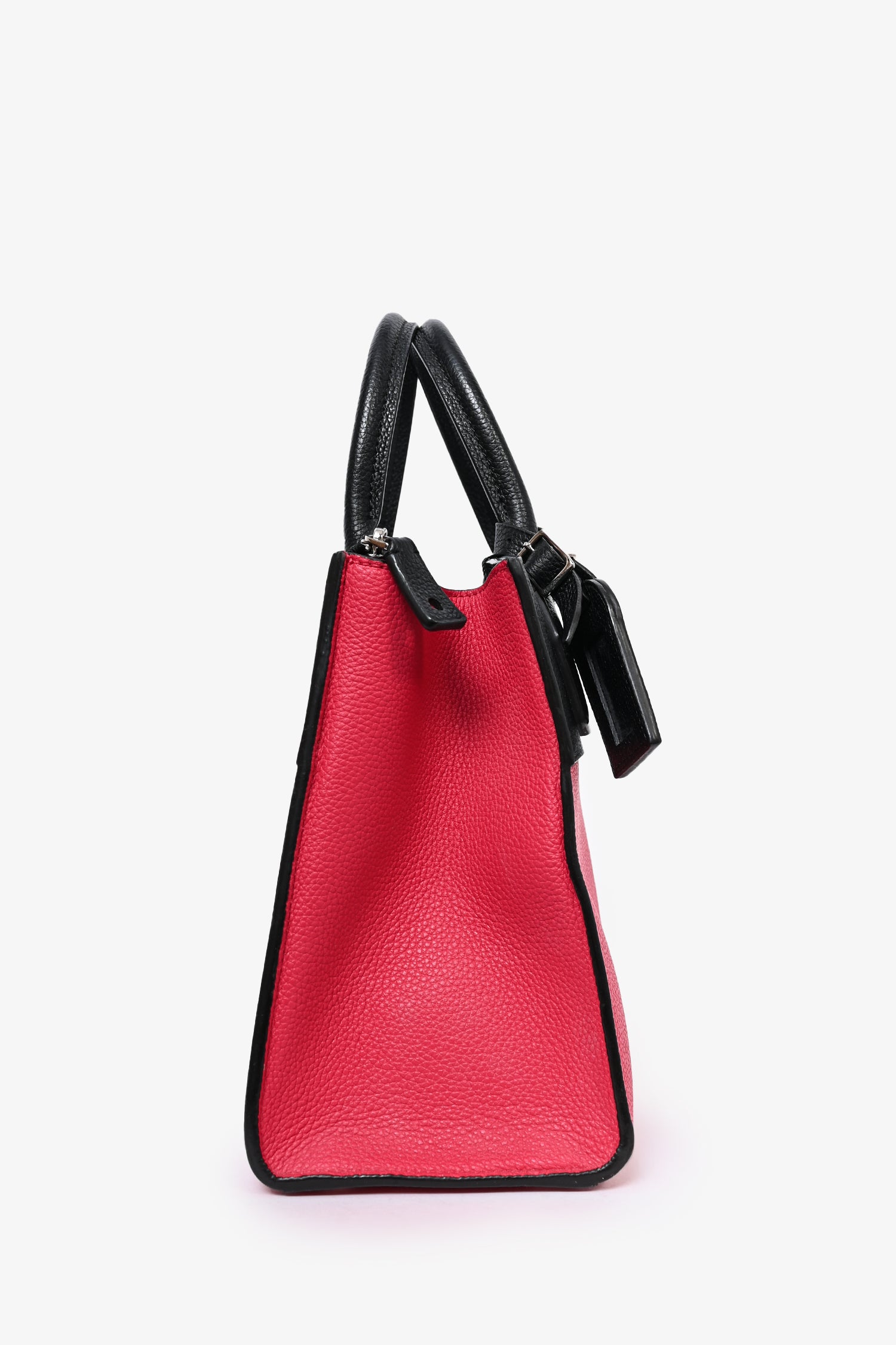 Refresh availabilityLouis Vuitton 2017 Pink Black Leather City Steamer Top Handle with Strap. Dual rolled handles. 3 compartments; 1 zip, 1 with latch closure, and 1 with turn-lock closure. Single interior wall slip pocket. Detachable luggage tag. Protective metal bottom. Removable strap. Silver-tone hardware. Signature LV lock and 2 keys.