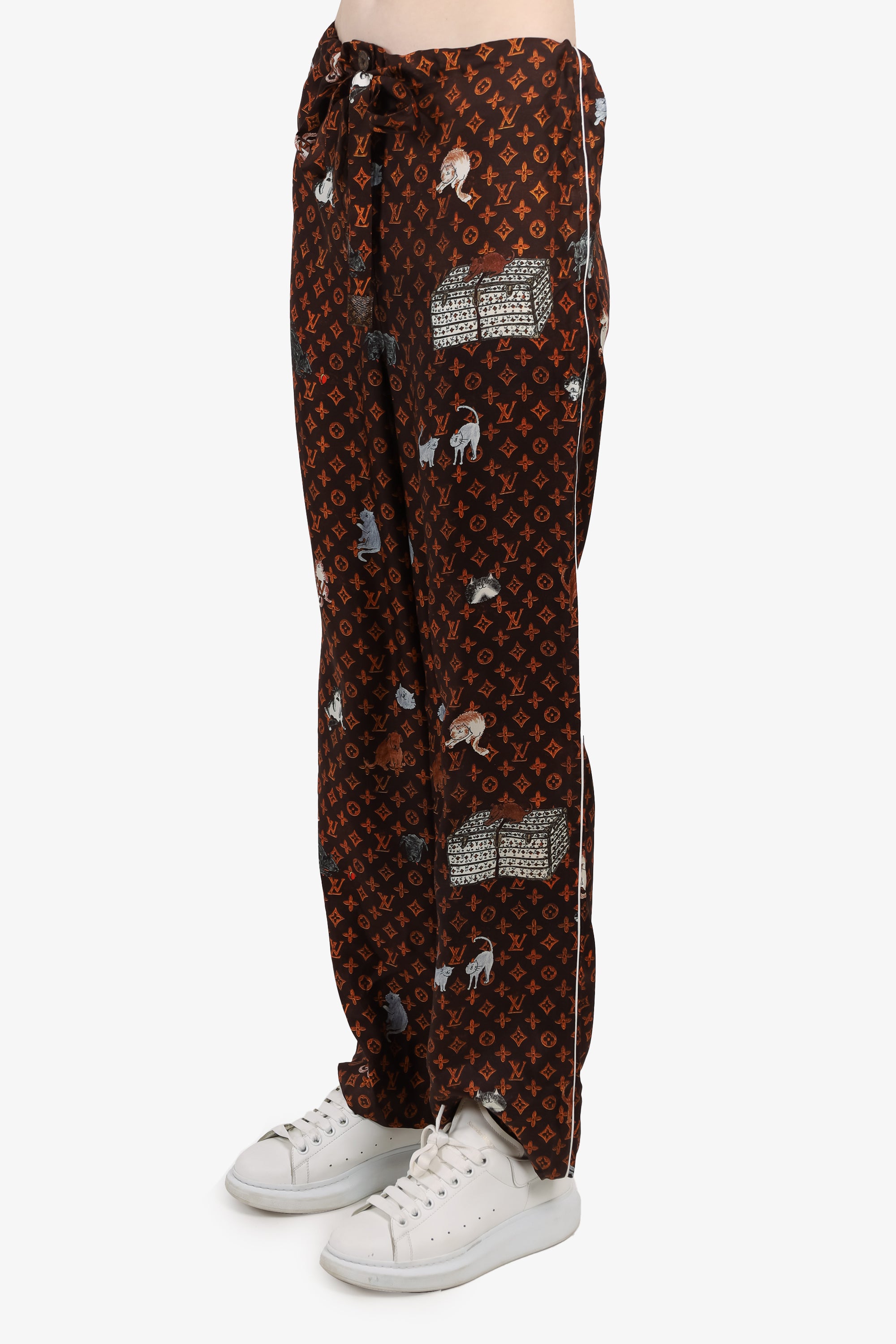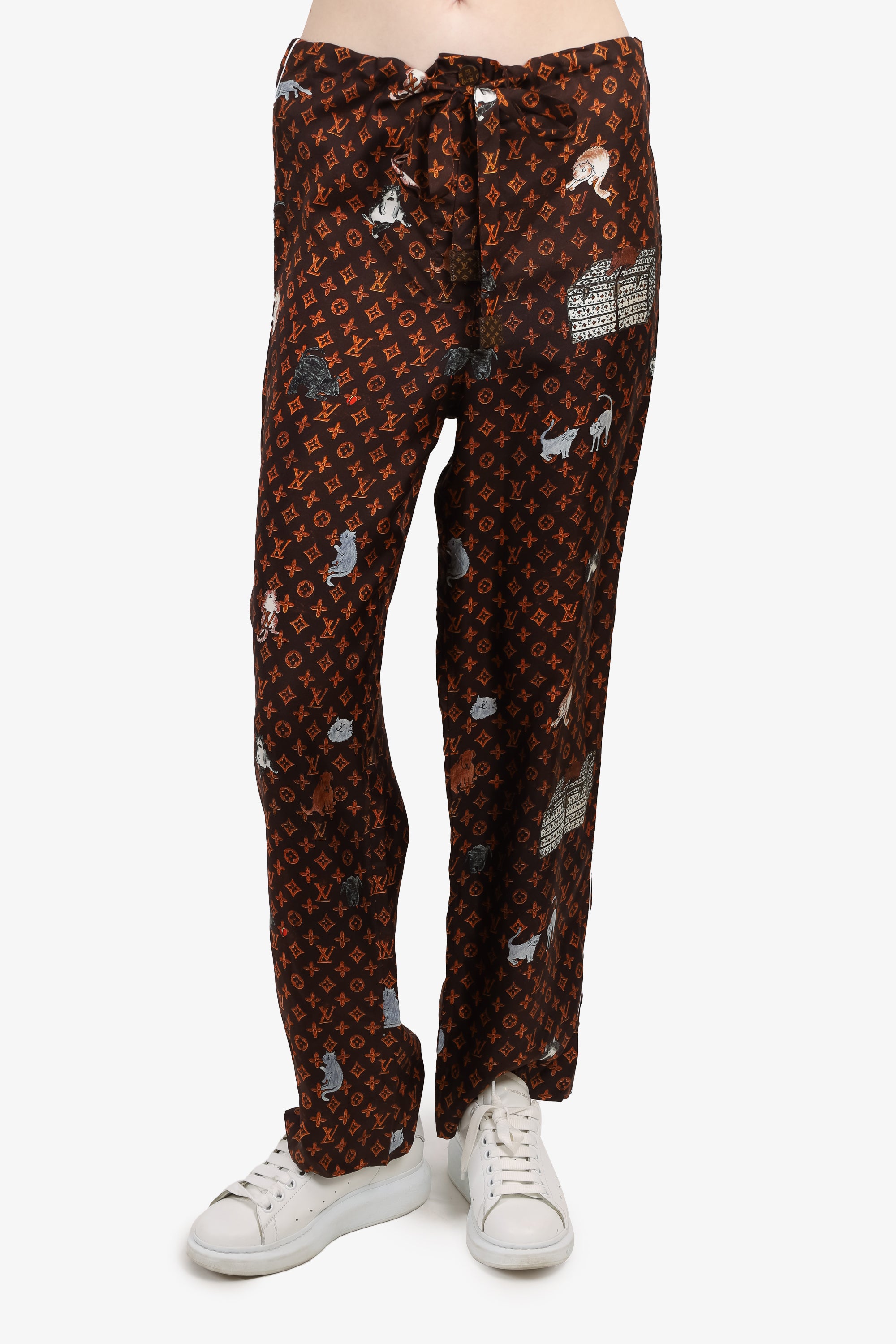 Refresh availabilityLouis Vuitton 2018 Limited Edition Brown Monogram Silk Pyjama Pants. Drawstring waist with button. Tonal stitching.