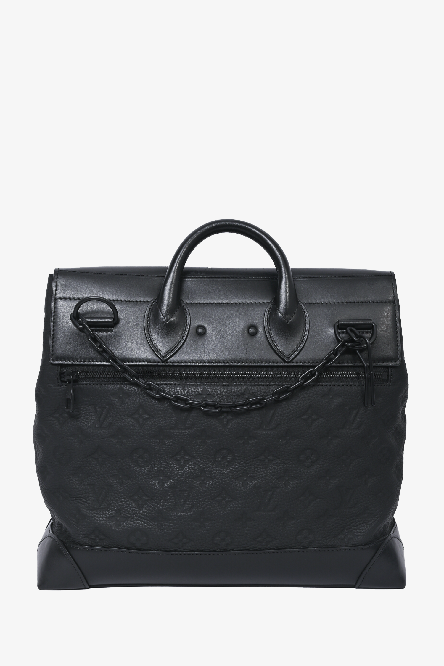 Refresh availabilityLouis Vuitton 2019 Black Empreinte Monogram Eclipse Steamer Messenger Bag. Front fold-over flap with strap closures. Tonal textile interior lining. 3 interior wall slip pockets. Outer rear zip pocket. Tonal stitching and hardware. Removable and adjustable strap.