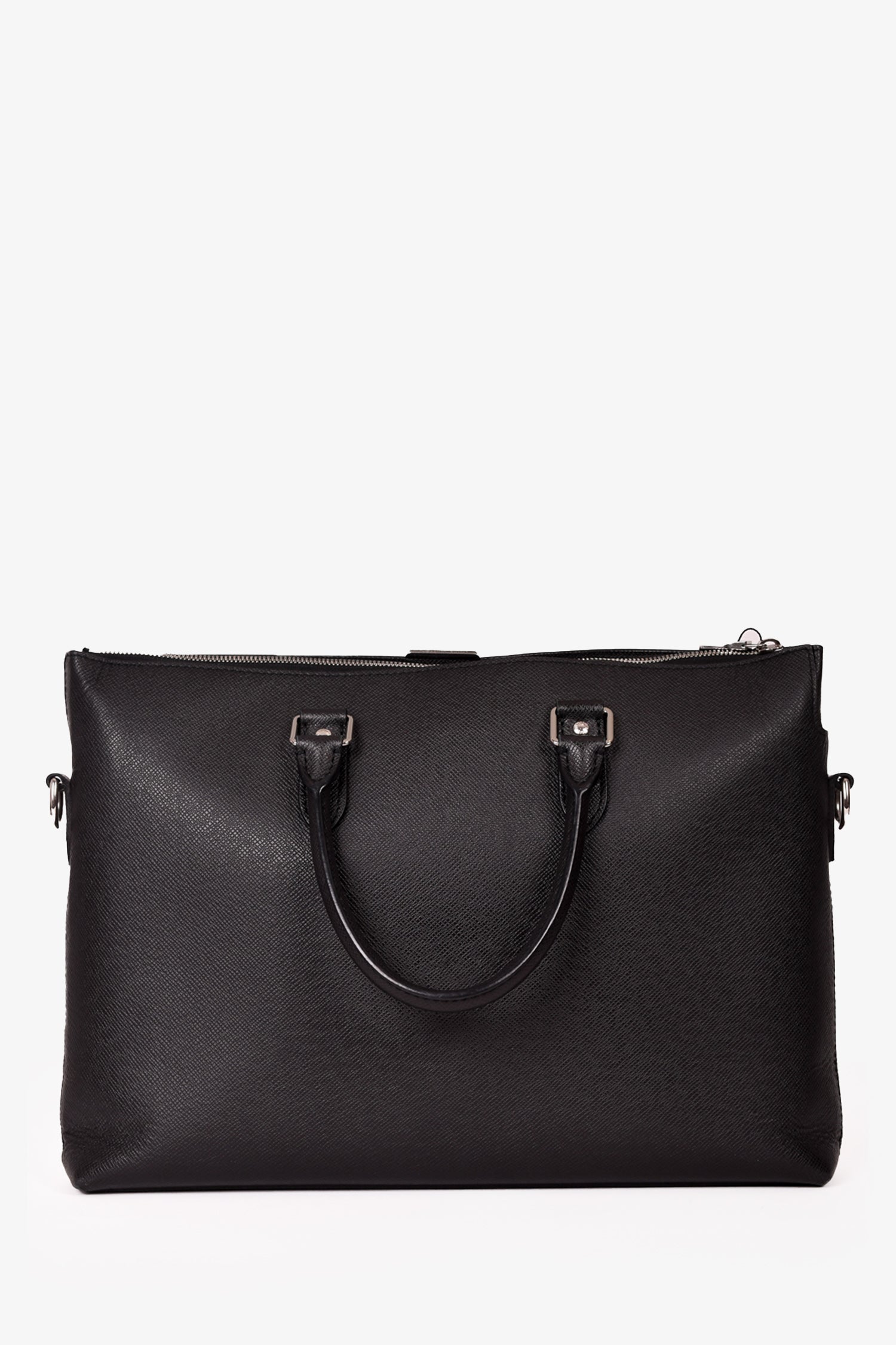 Refresh availabilityLouis Vuitton 2019 Black Leather Taiga Anton Briefcase with Strap. Dual rolled handles. Front compartment with magnetic button closure. Top zip closure. Tonal textile interior lining. 2 interior wall pockets. Silver-tone hardware. Removable and adjustable strap. Silver-tone hardware. Tonal stitching.