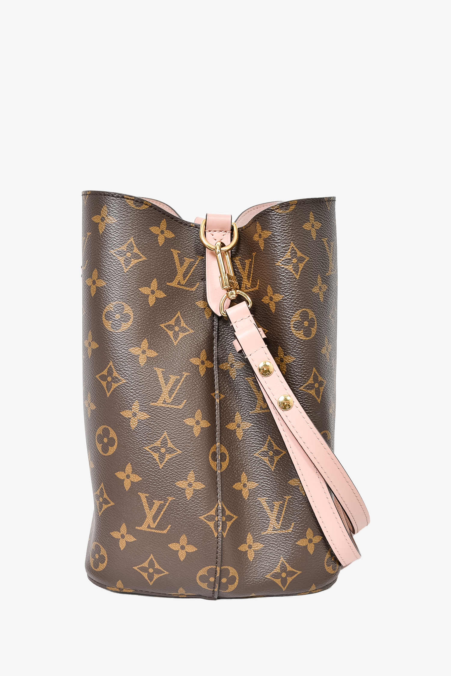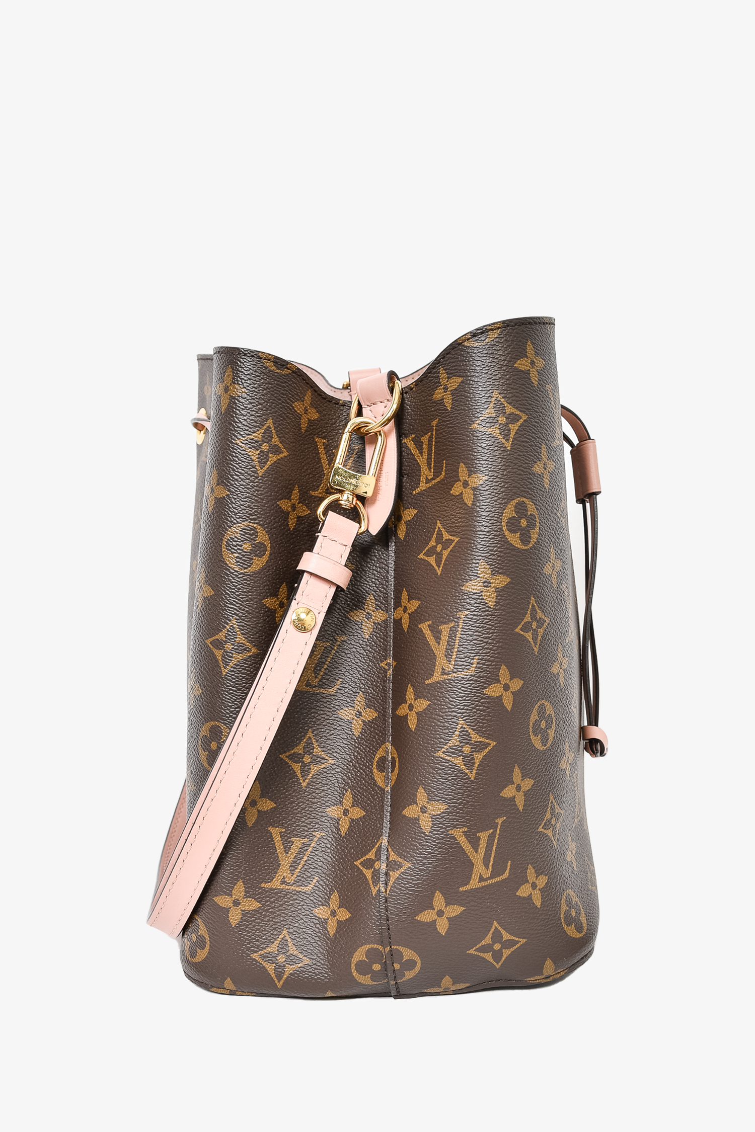 Refresh availabilityLouis Vuitton 2019 Monogram/Pink Neo Noe Bucket Shoulder Bag. Top drawstring closure. Detachable strap. Interior zip-closure pocket. 2 interior compartments. Gold-tone hardware. Tonal stitching.