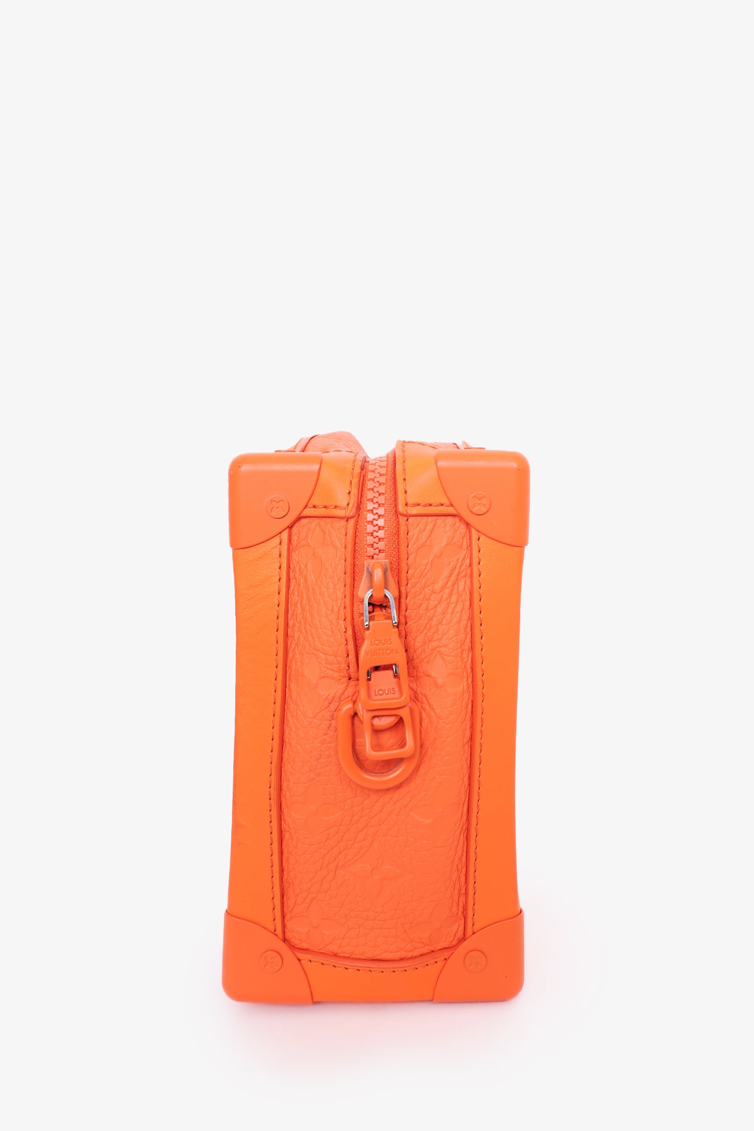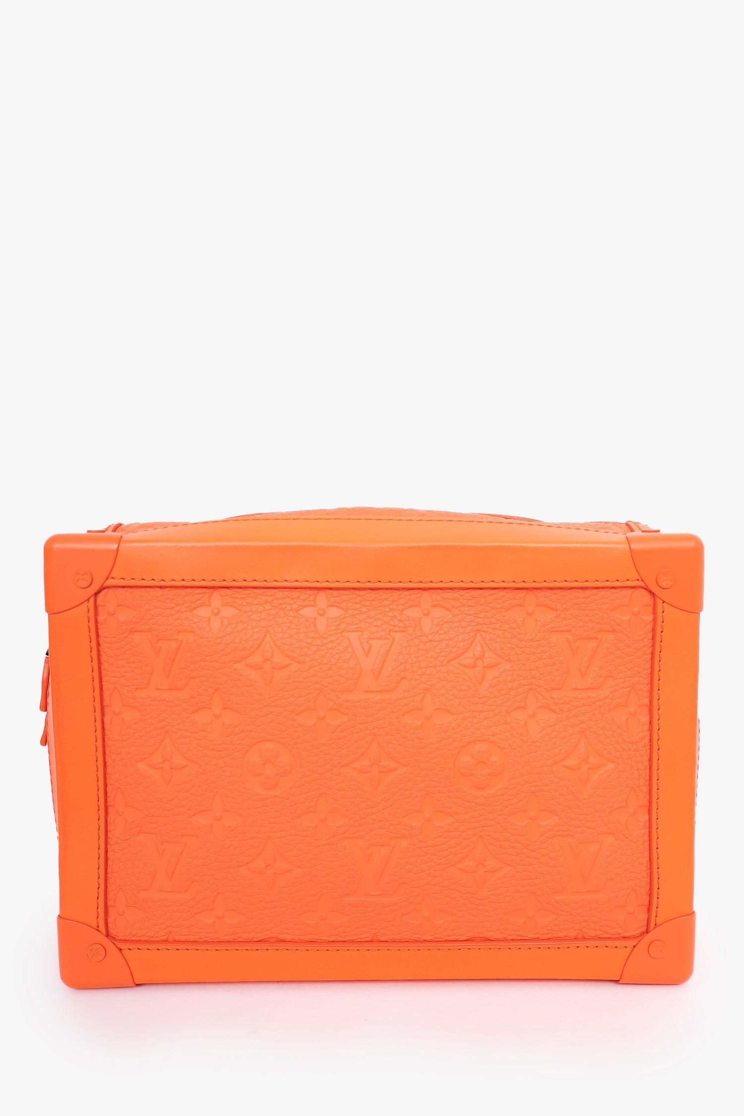 Refresh availabilityLouis Vuitton 2019 Orange Embossed Leather Soft Trunk Crossbody Bag. Top zip closure. Removable crossbody strap. Protective bottom studs. Internal slip pockets. Silver-tone hardware. Tonal stitching.