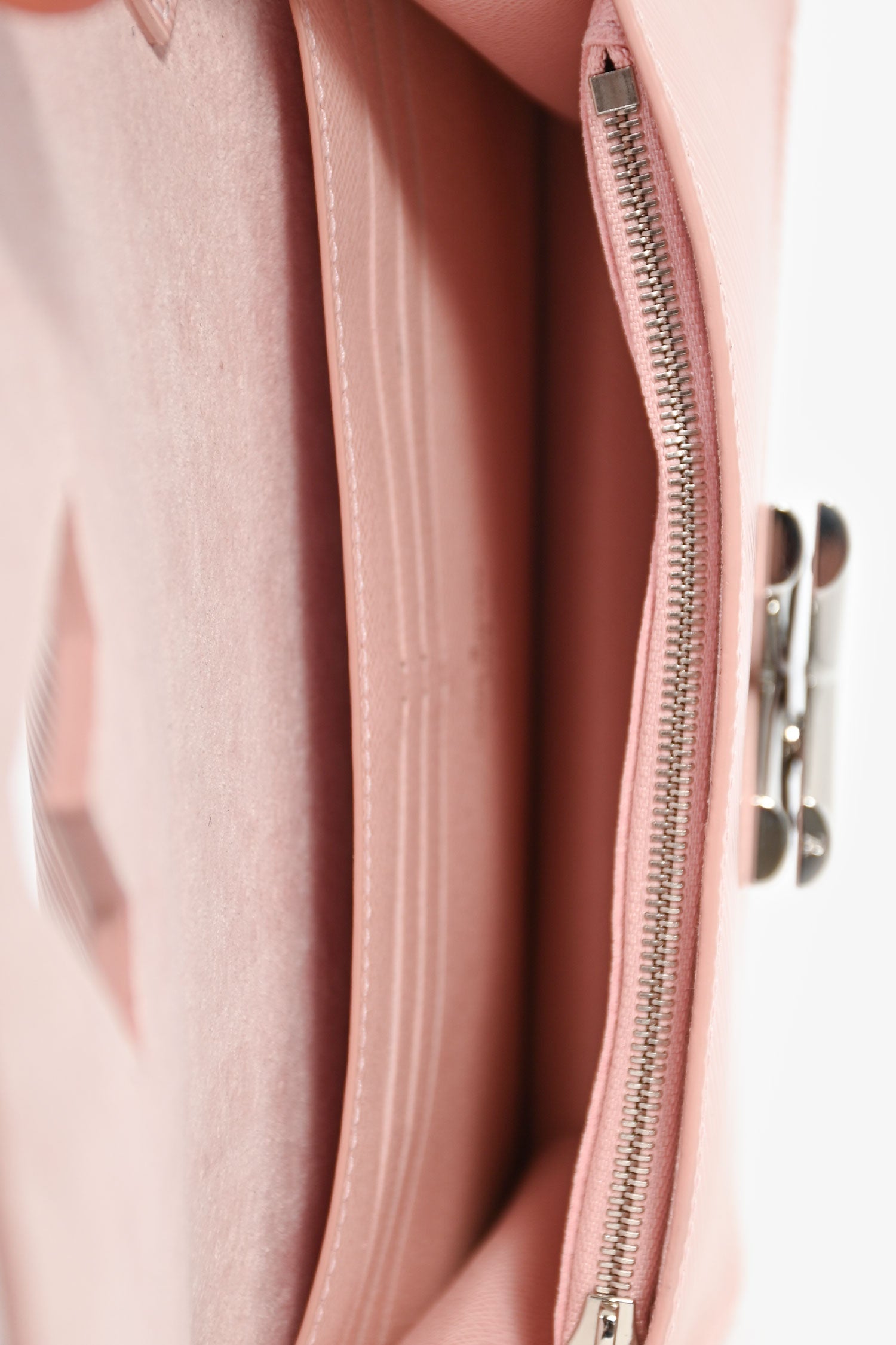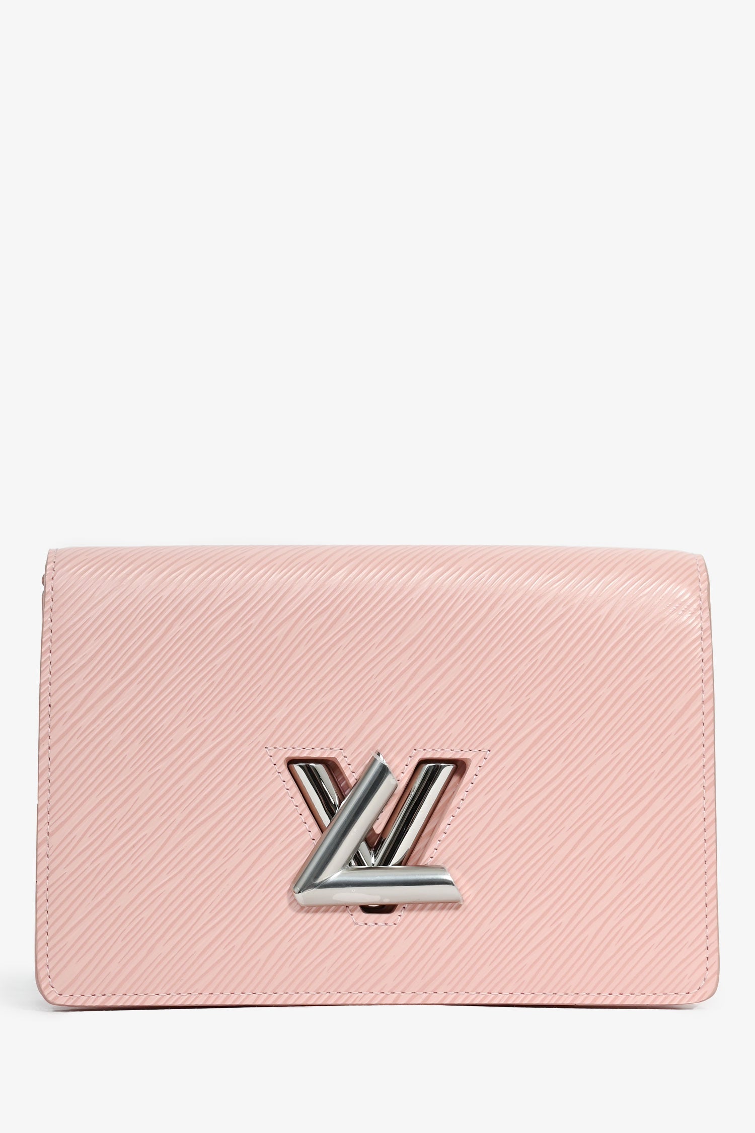 Refresh availabilityLouis Vuitton 2019 Pink Epi Twist Pochette Wallet On Chain. Front fold-over flap with turn-lock closure. Single compartment with a wall zip pocket. 6 card slot and a wall slip pocket. Detachable chain strap. Suede lining. Gold-tone hardware. Tonal stitching.